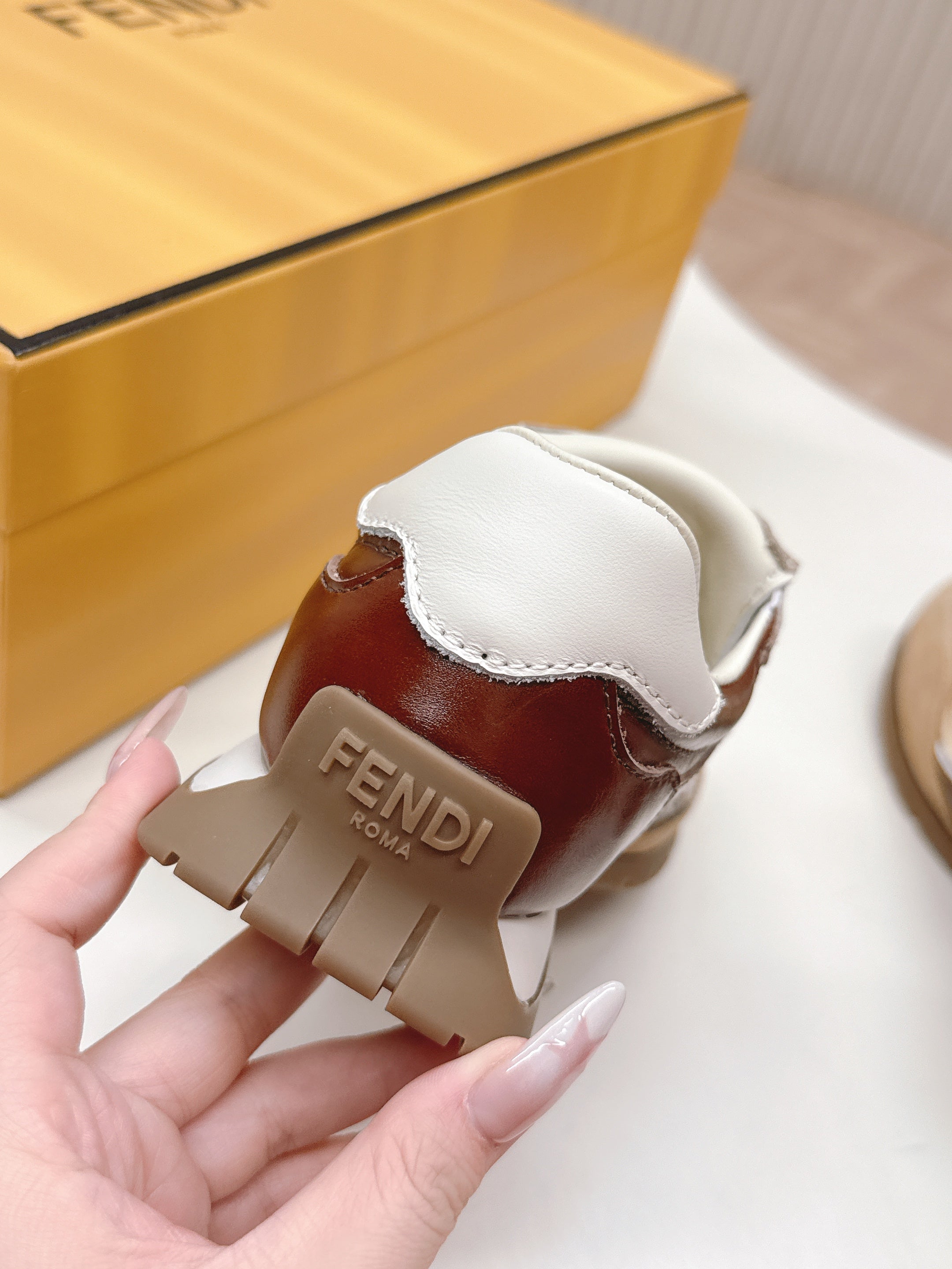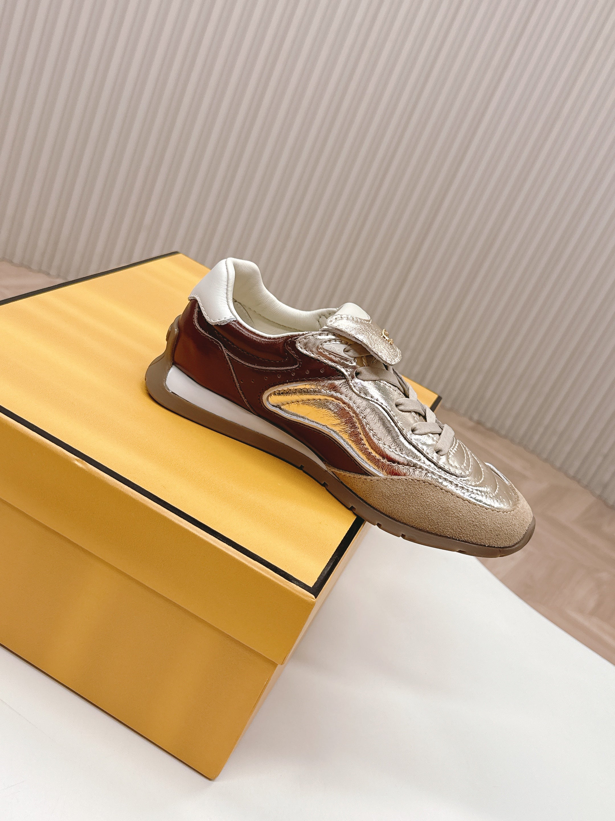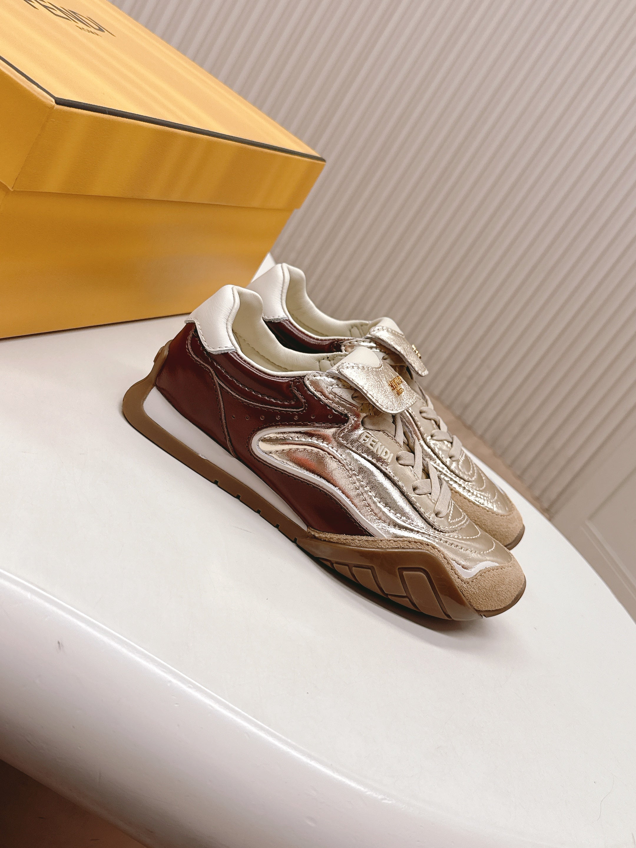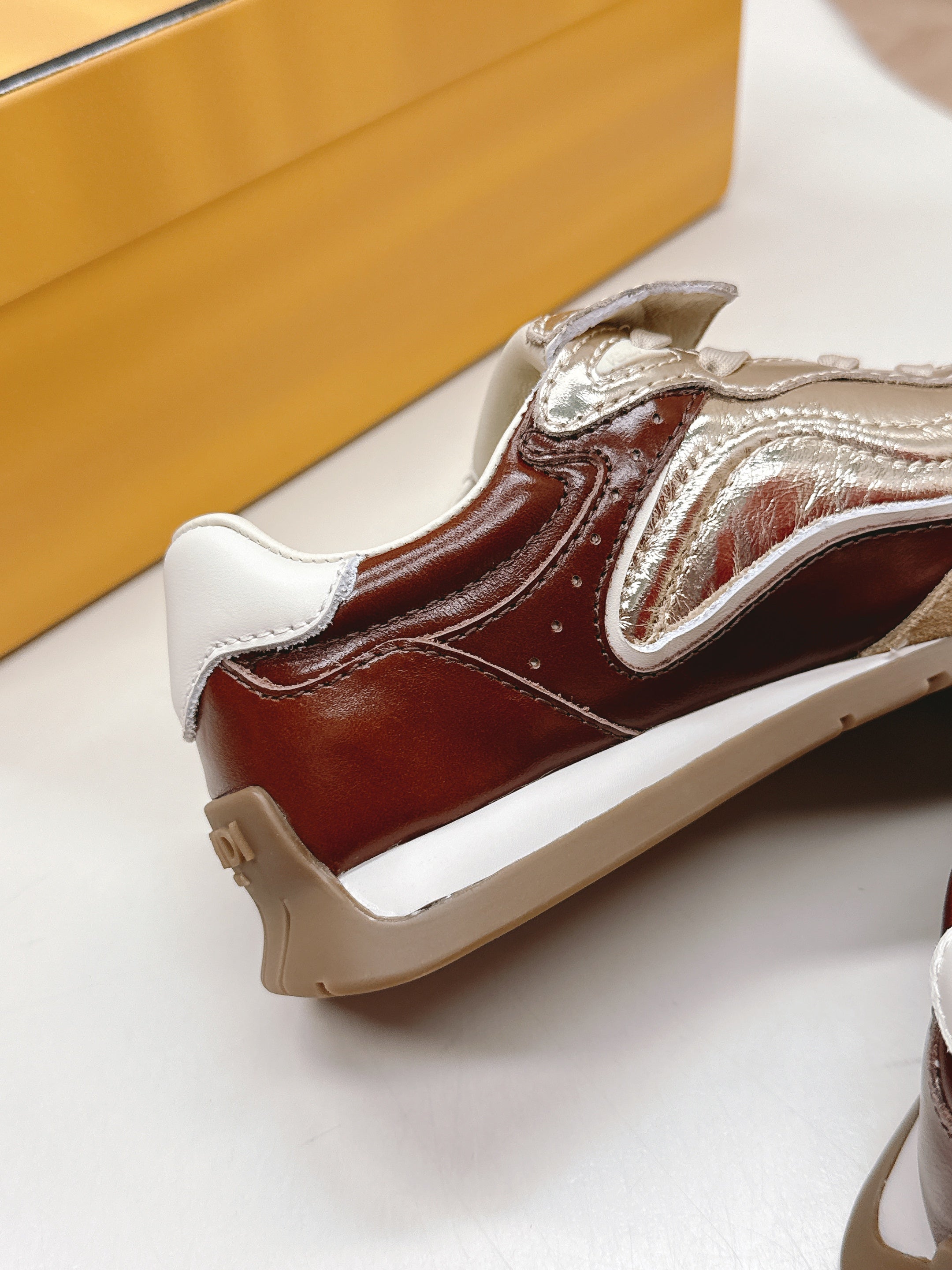 FENDI 25S CORTEZ RETRO SNEAKERS IN SOFT GOLD MIX BROWN LAMBSKIN