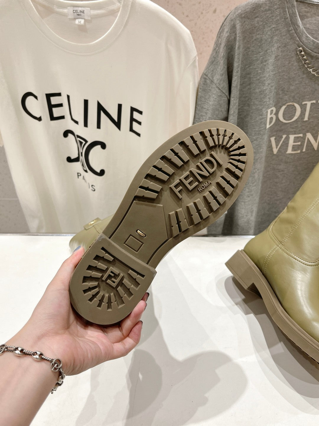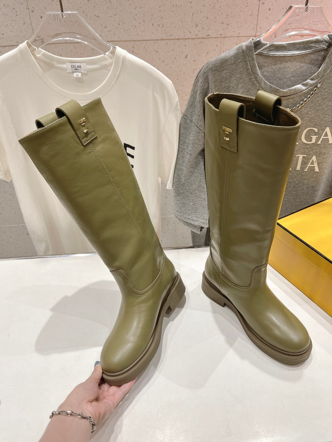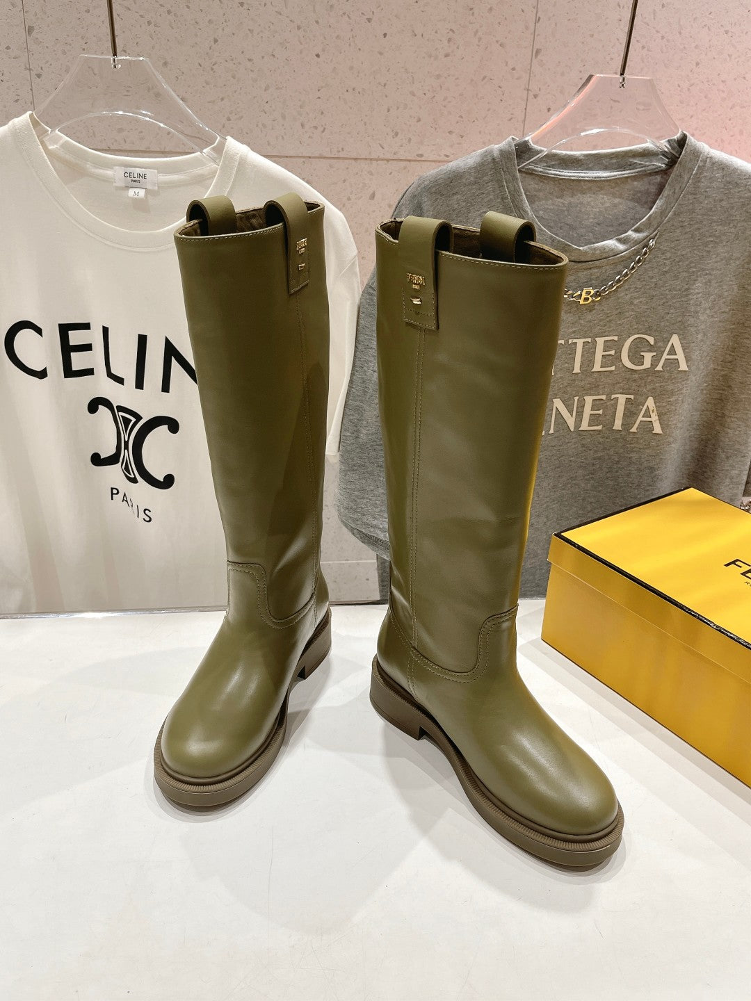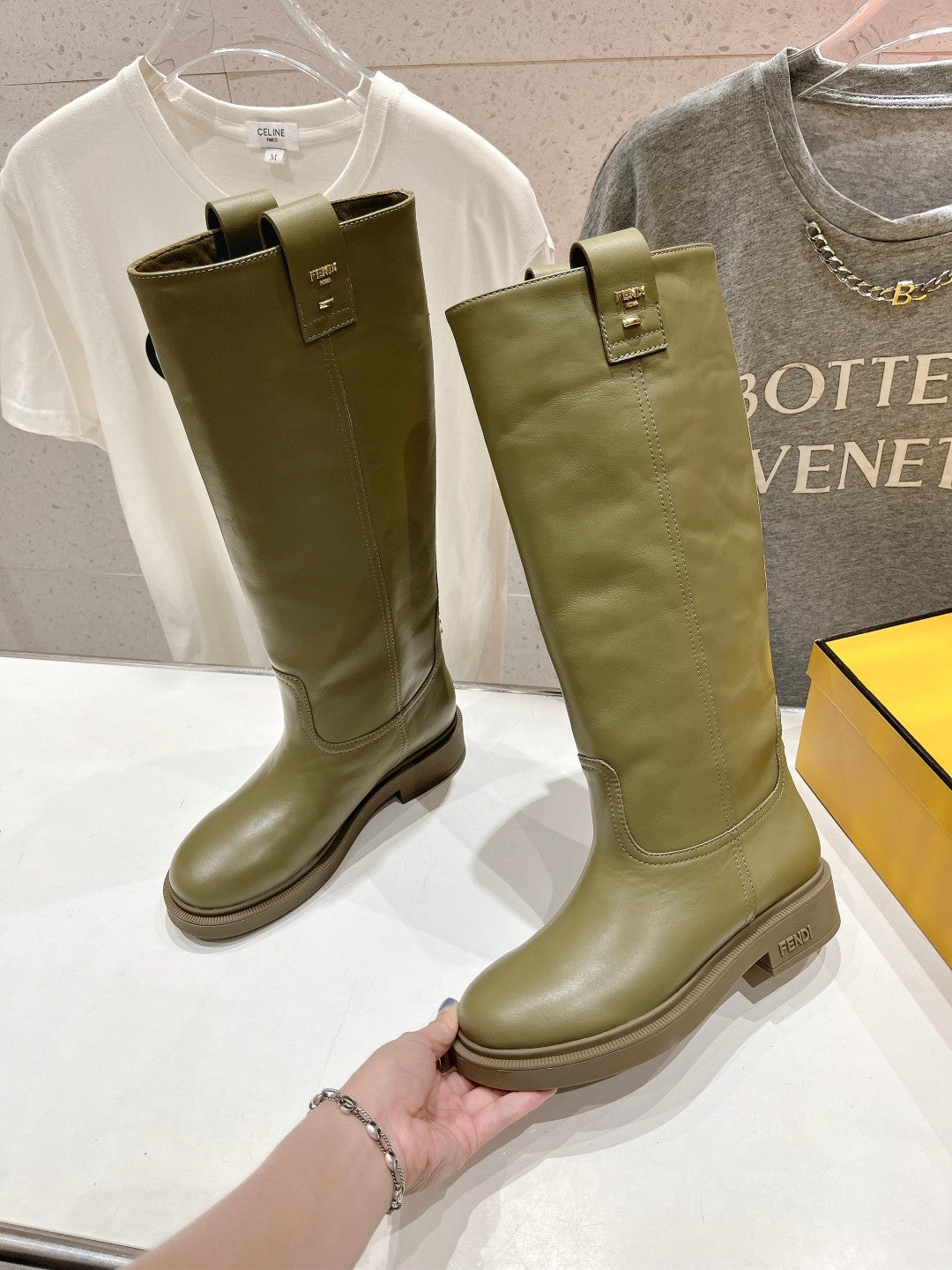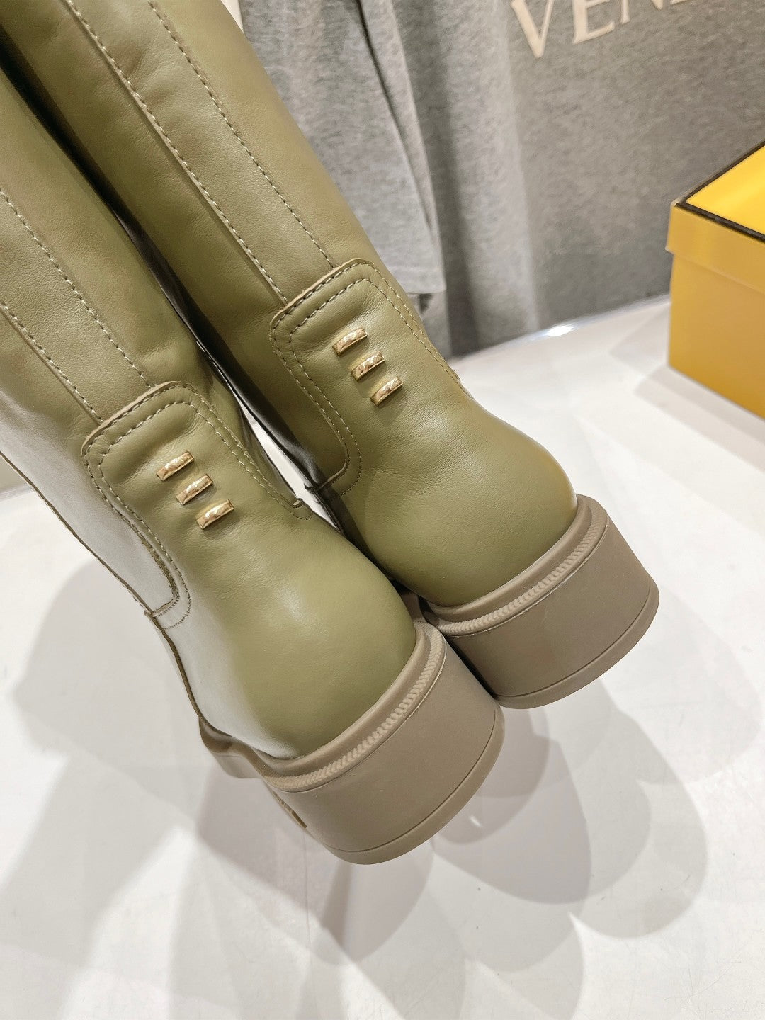 FENDI 25S HIGH BOOTS IN MOSS GREEN COWHIDE