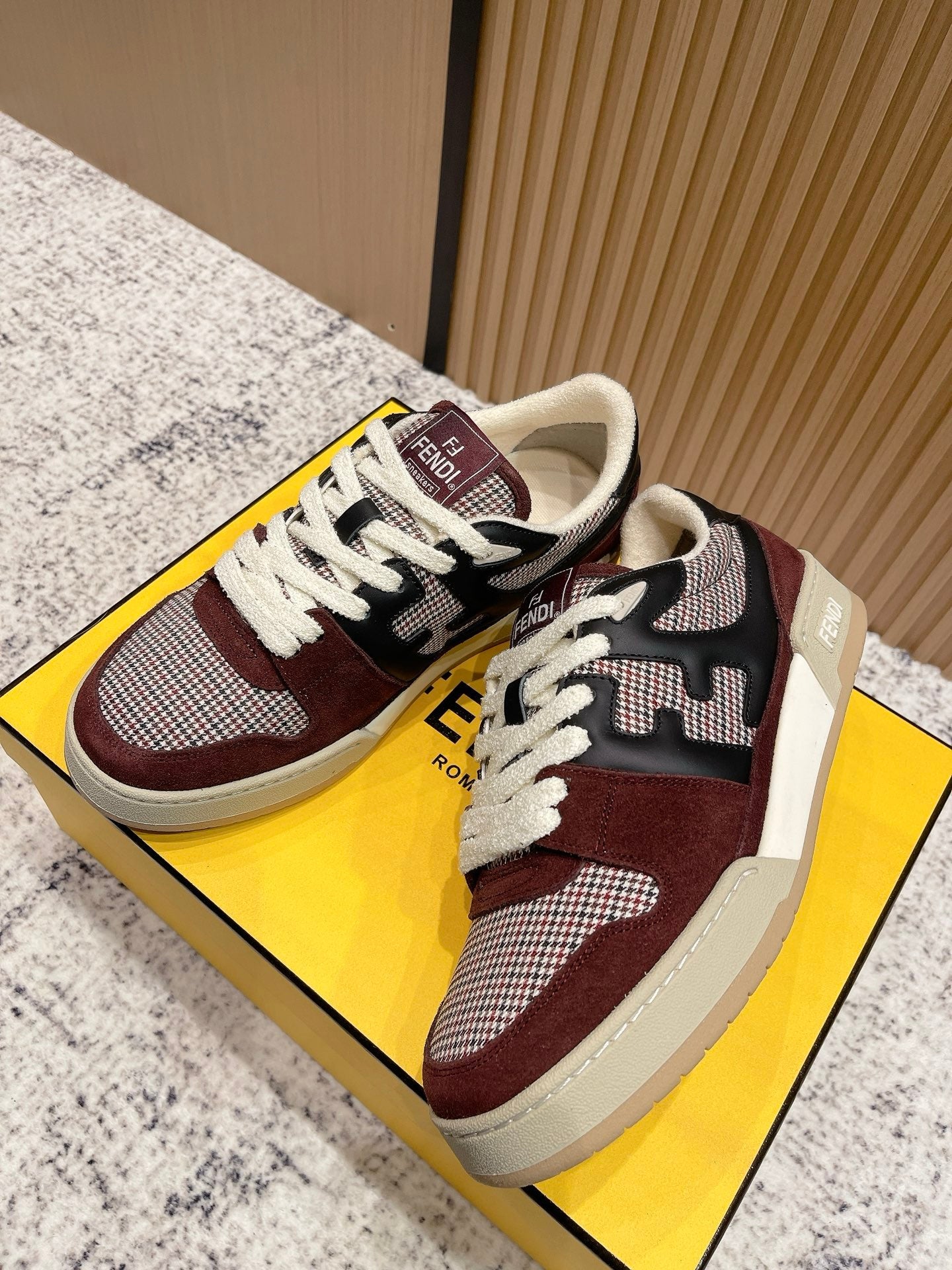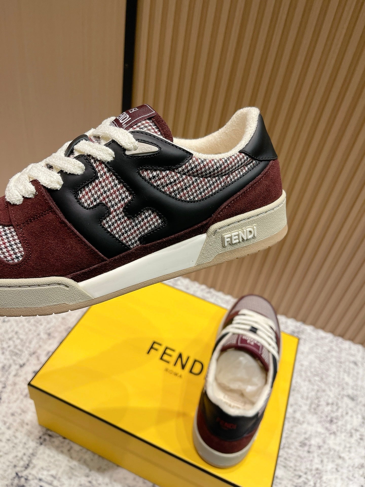 FENDI 25S MATCH SNEAKERS IN RED SUEDE MIX BLACK CALFSKIN STYLE 3