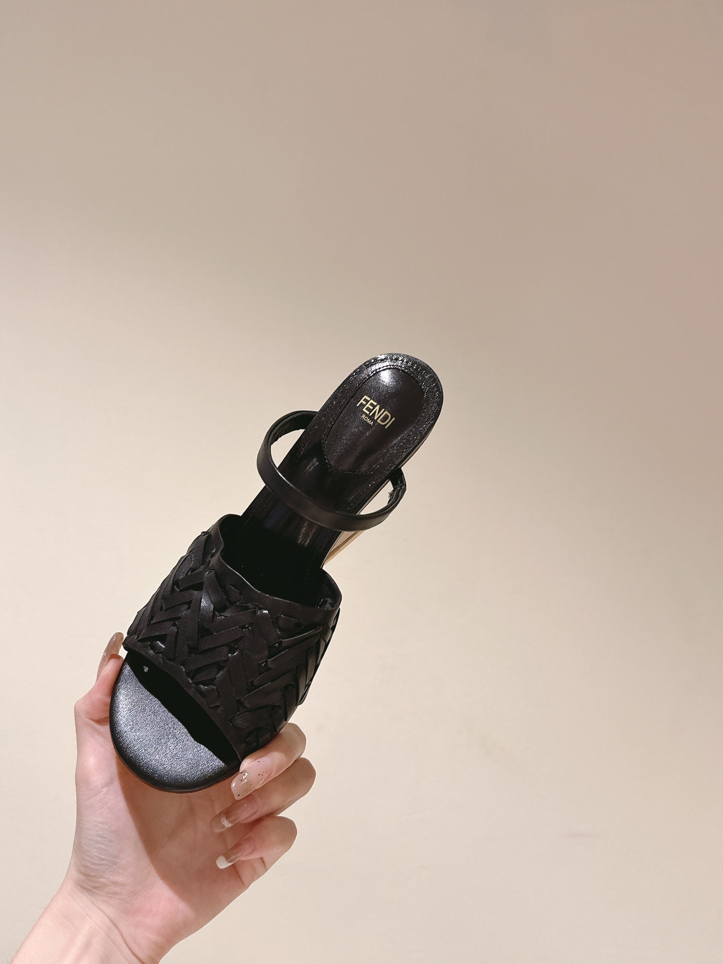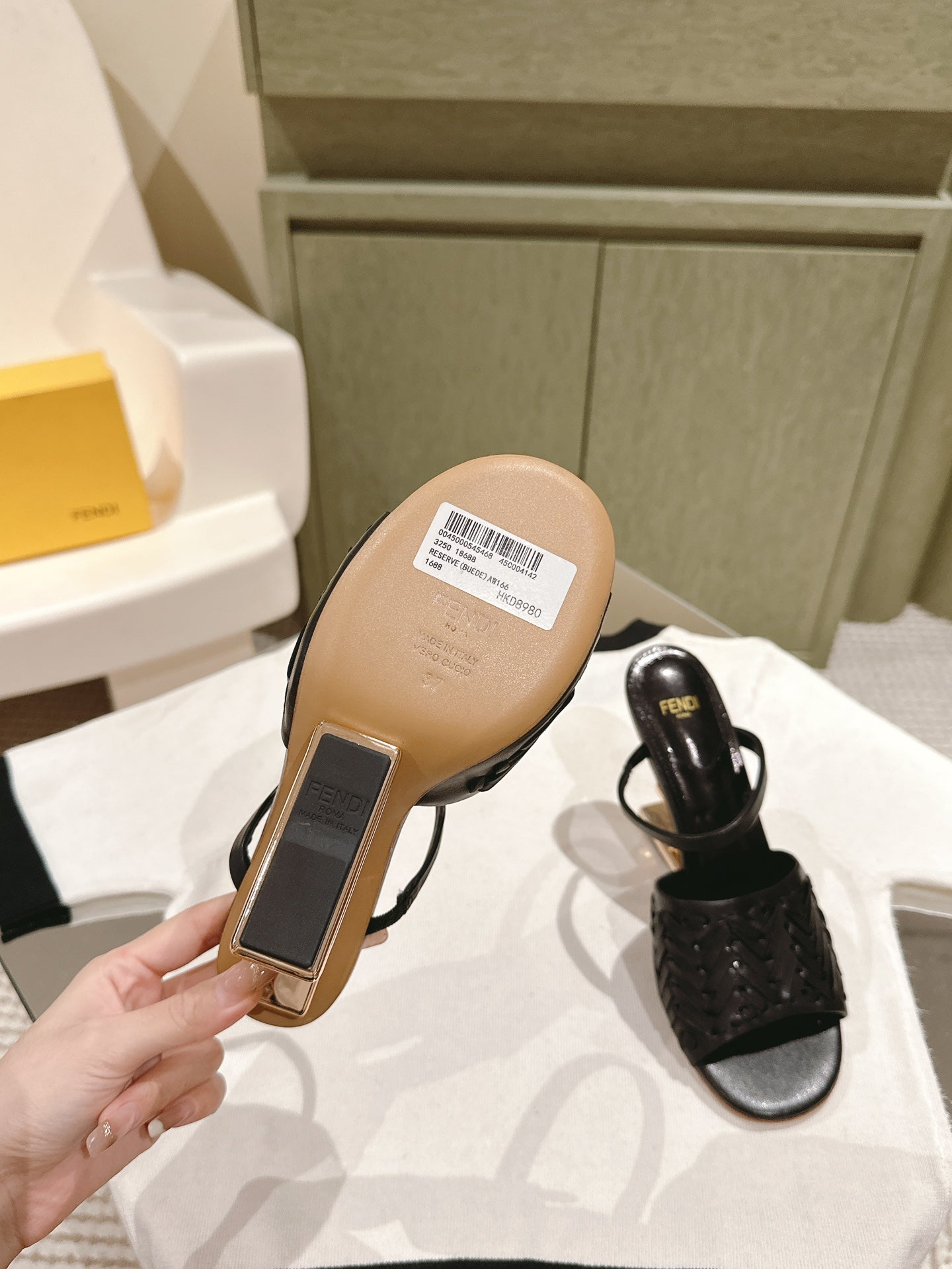 FENDI FIRST HIGH-HEELED SANDALS 85 MM IN BLACK LAMBSKIN GOLD HARDWARE