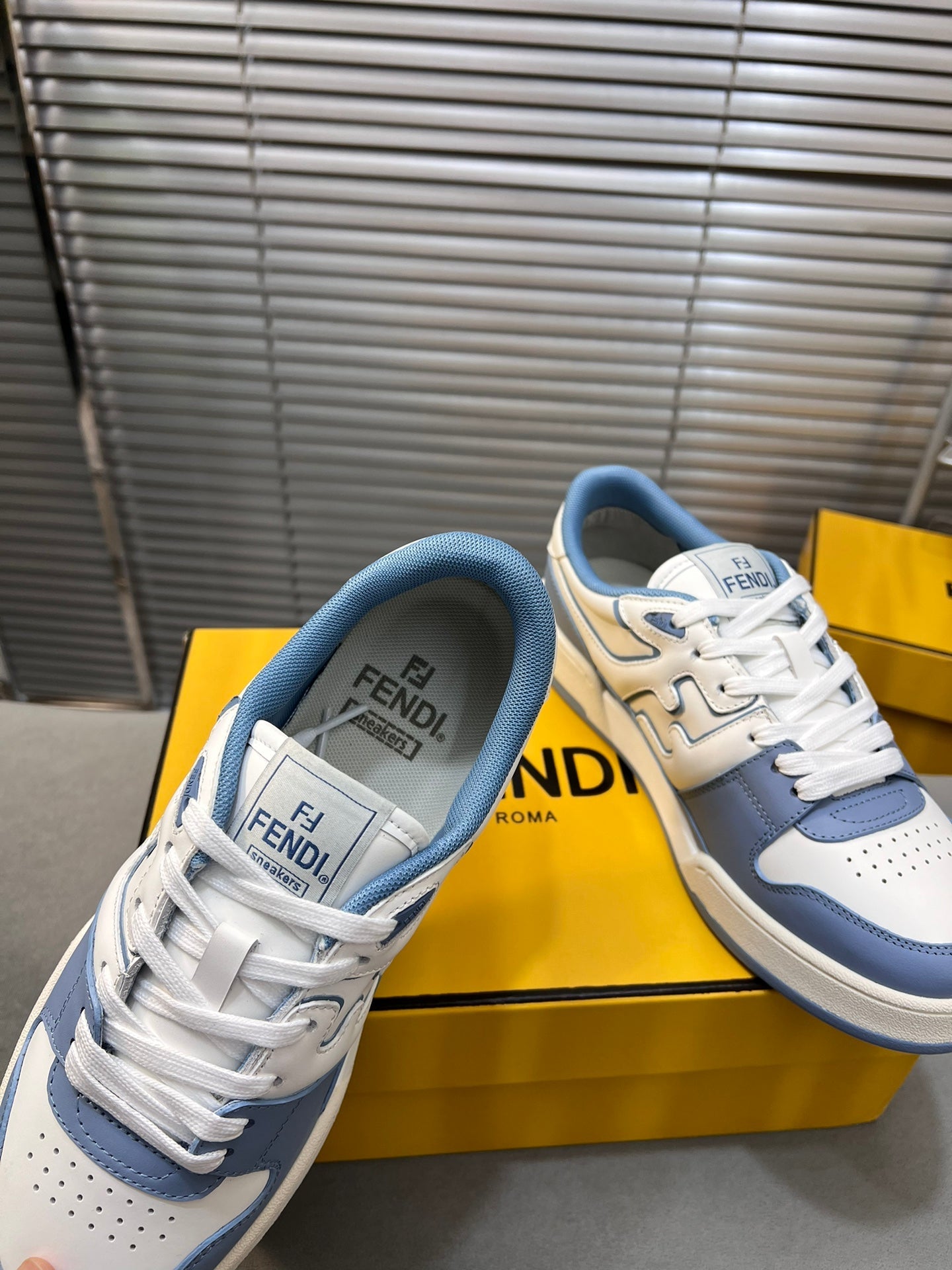 FENDI MATCH LOW TOPS IN CERULEAN BLUE MIX WHITE CALFSKIN AND MESH