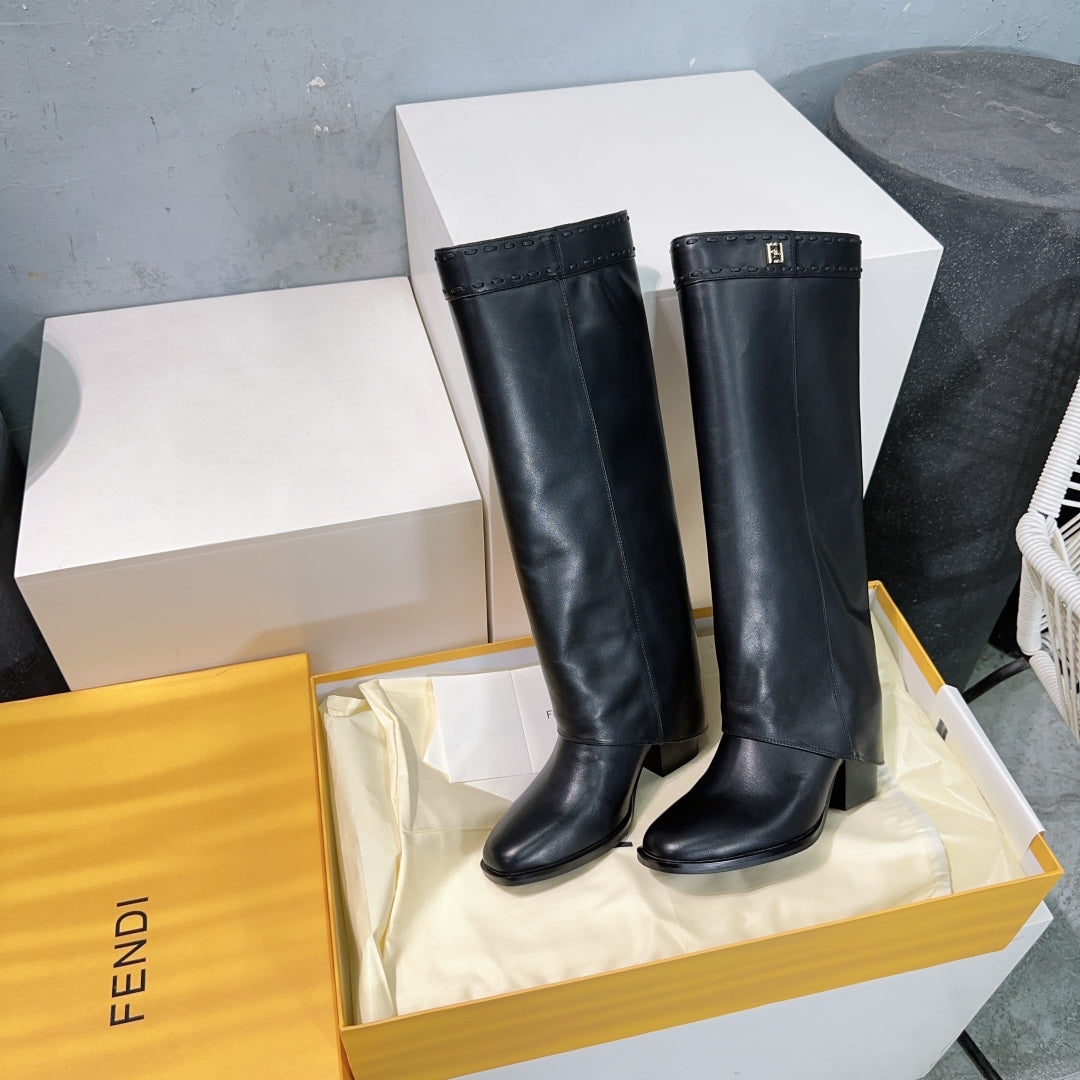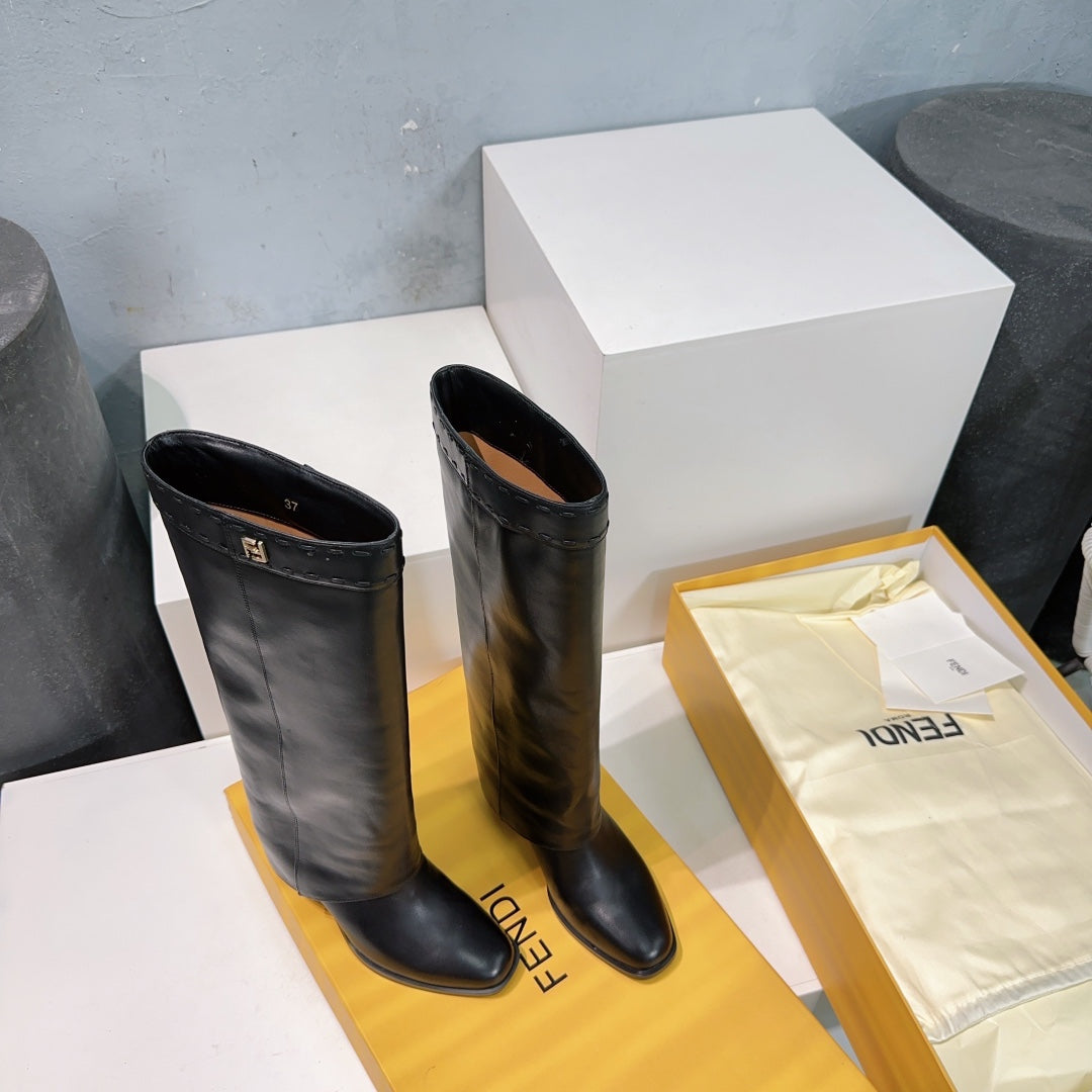 FENDI SHOW BLACK LEATHER HIGH-HEELED BOOTS
