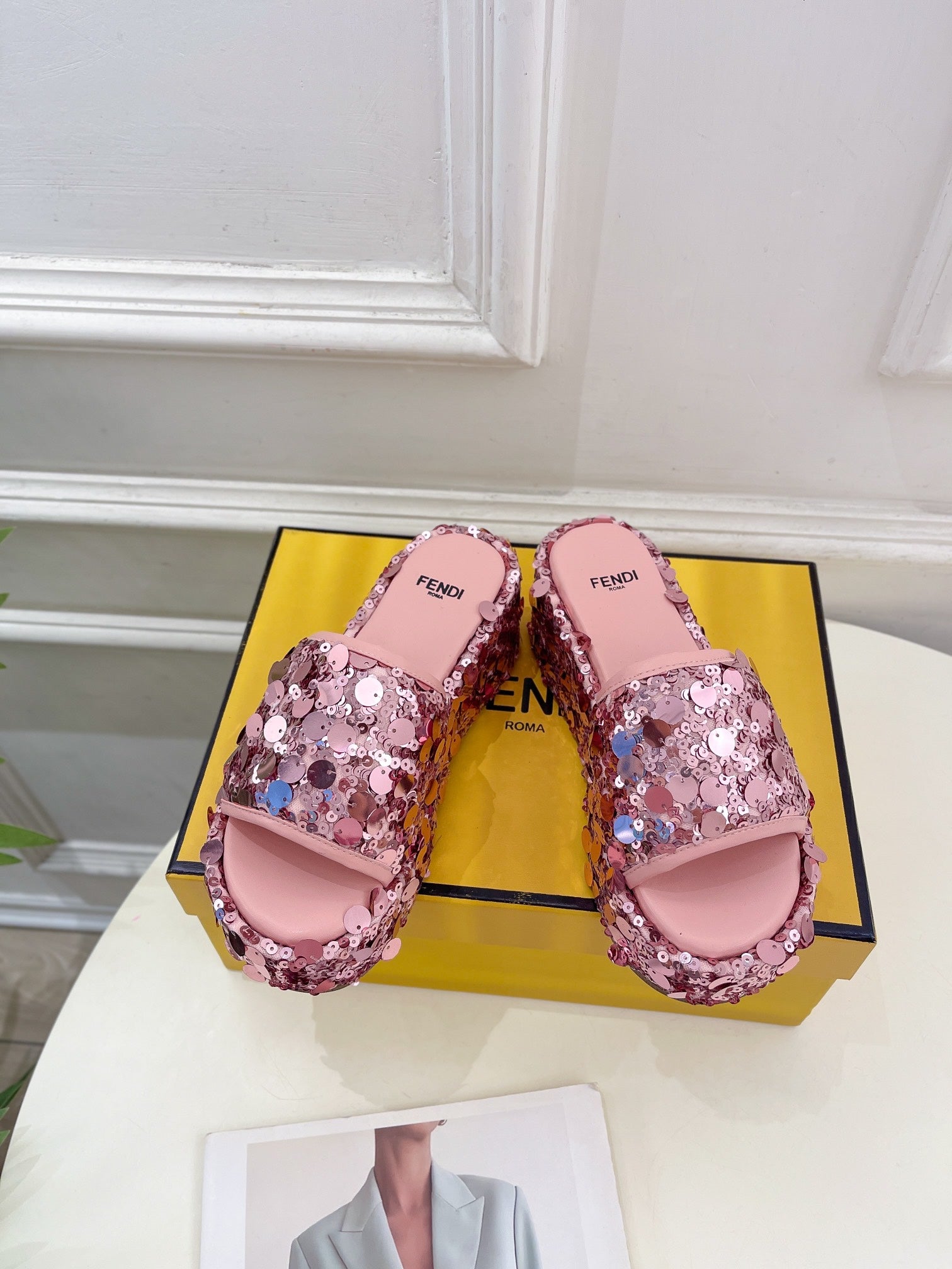 FENDI THICK SOLE 6 CM SEQUIN SLIPPER ROUGH PINK