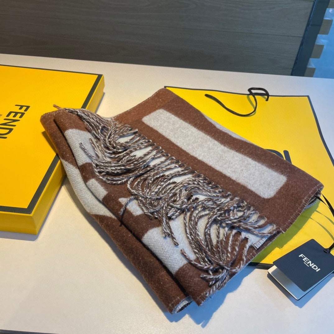 FF 185 CM SCARF IN CAMEL BROWN MIX GREY CASHMERE AND WOOL