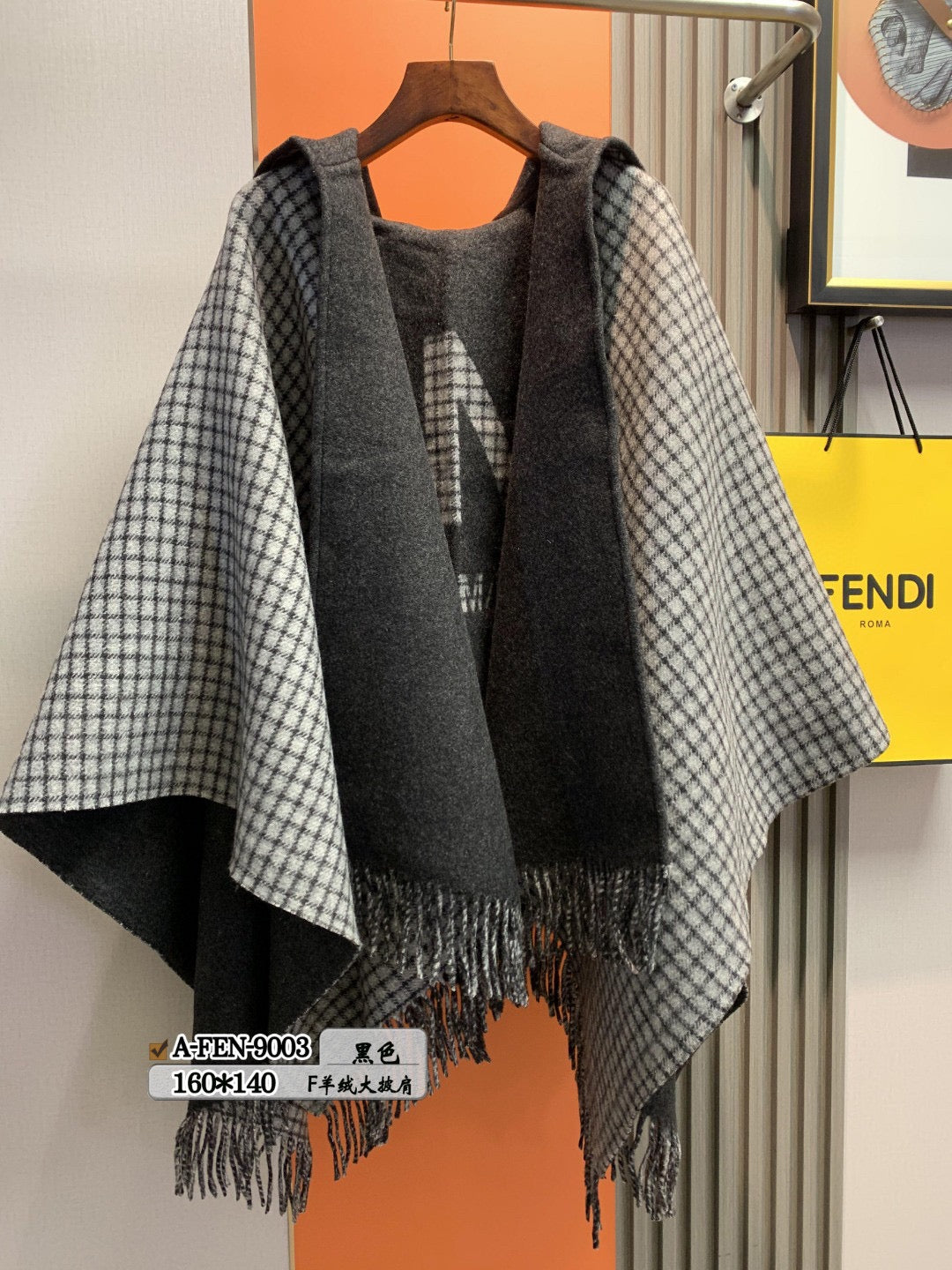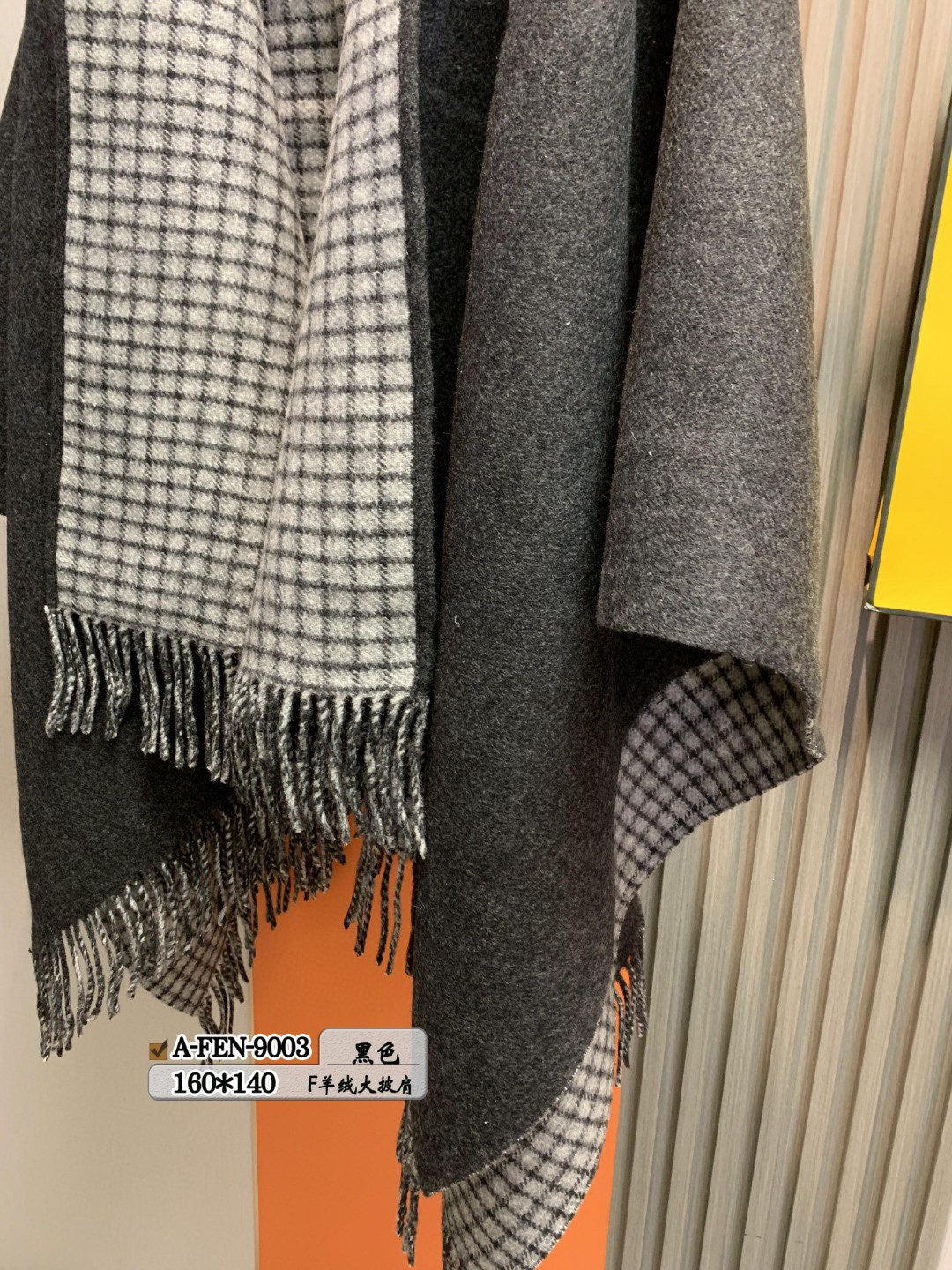 FFPONCHO 160 CM IN BLACK CASHMERE AND WOOL