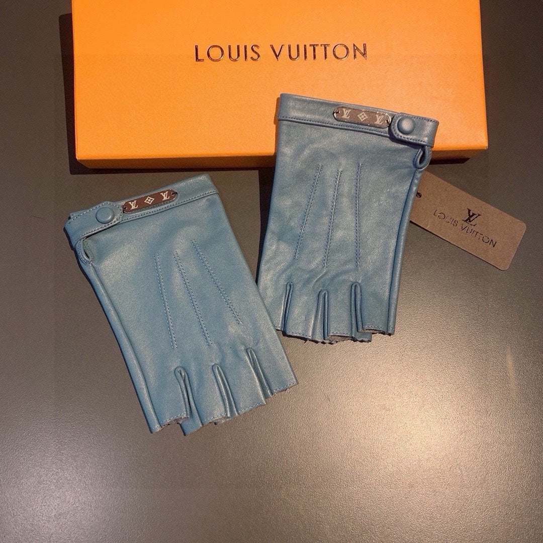 FINGERLESS GLOVES IN BLUE GREEN LAMBSKIN 453647