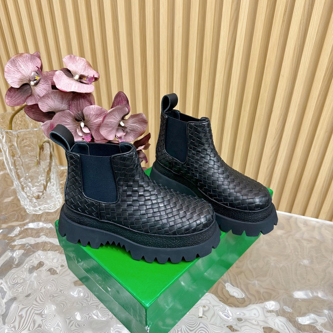 FIREMAN ANKLE BOOT IN BLACK CALFSKIN WITH WOVEN DESIGN