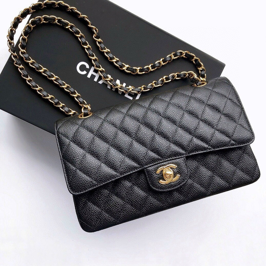 FLAP BAG 25 IN BLACK CAVIAR LEATHER GOLD HARDWARE