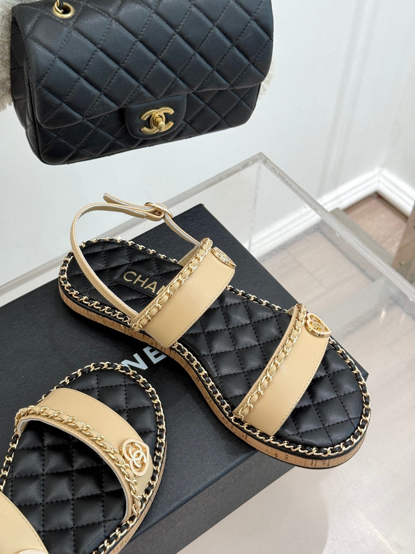 FLAT CHAIN HEART SANDAL IN BISQUE BEIGE LAMBSKIN