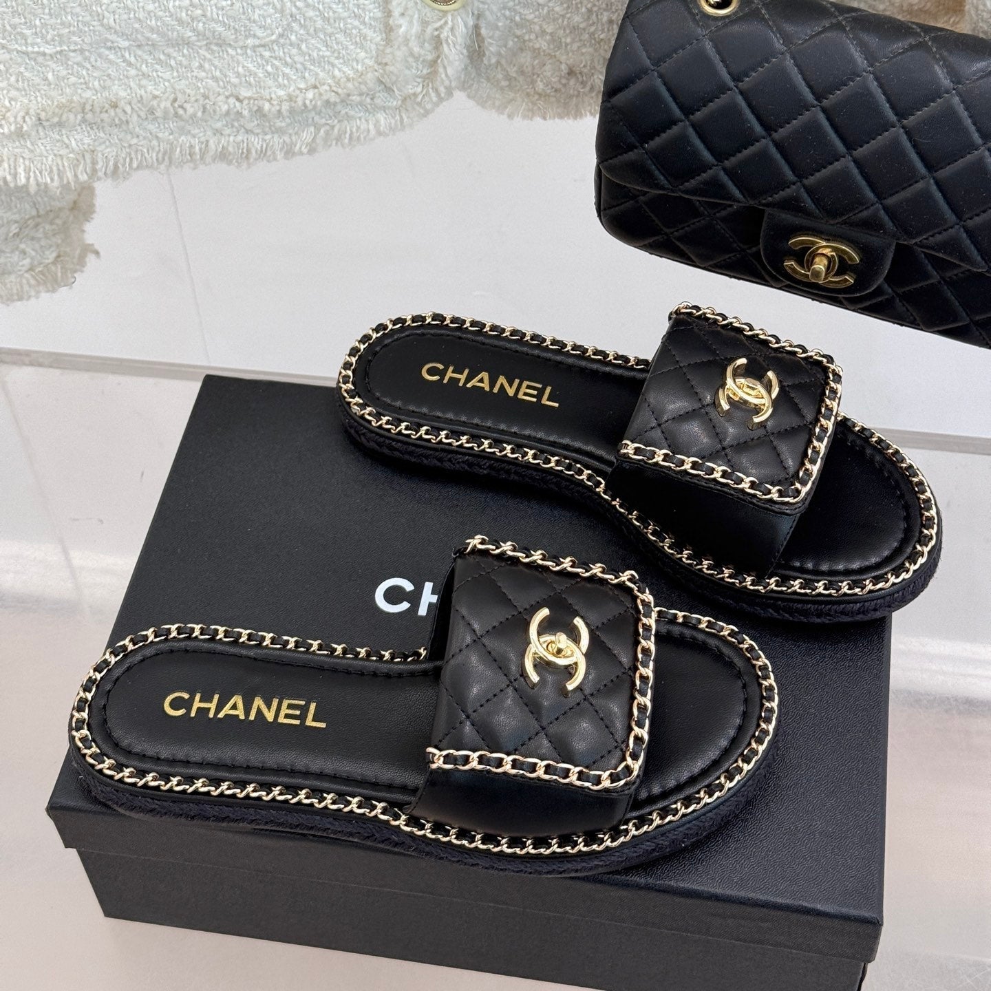 FLAT CHAIN HEART SLIPPER IN BLACK LAMBSKIN