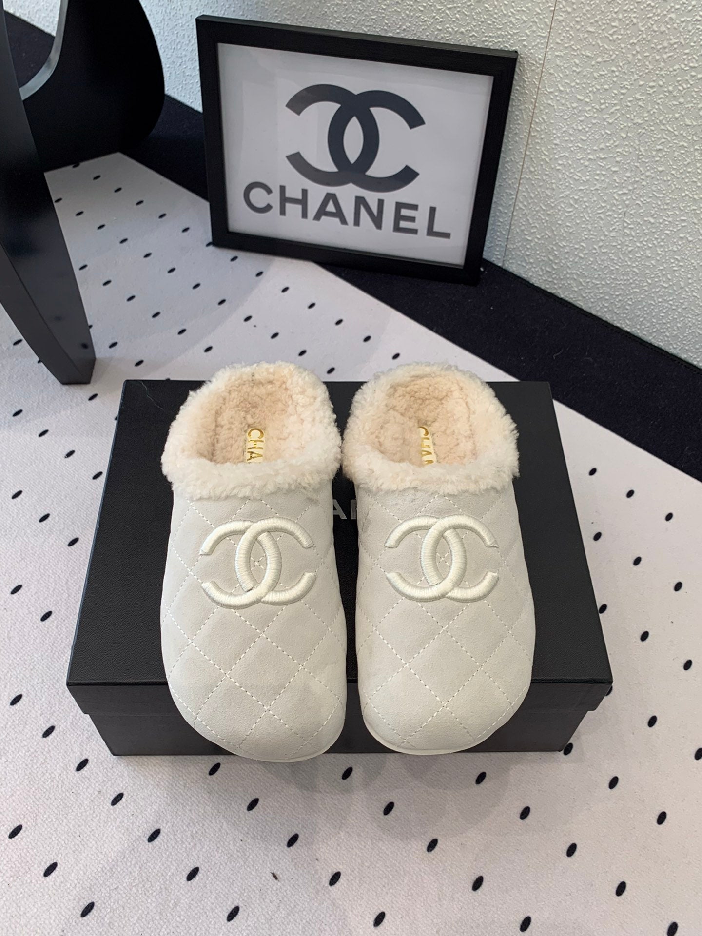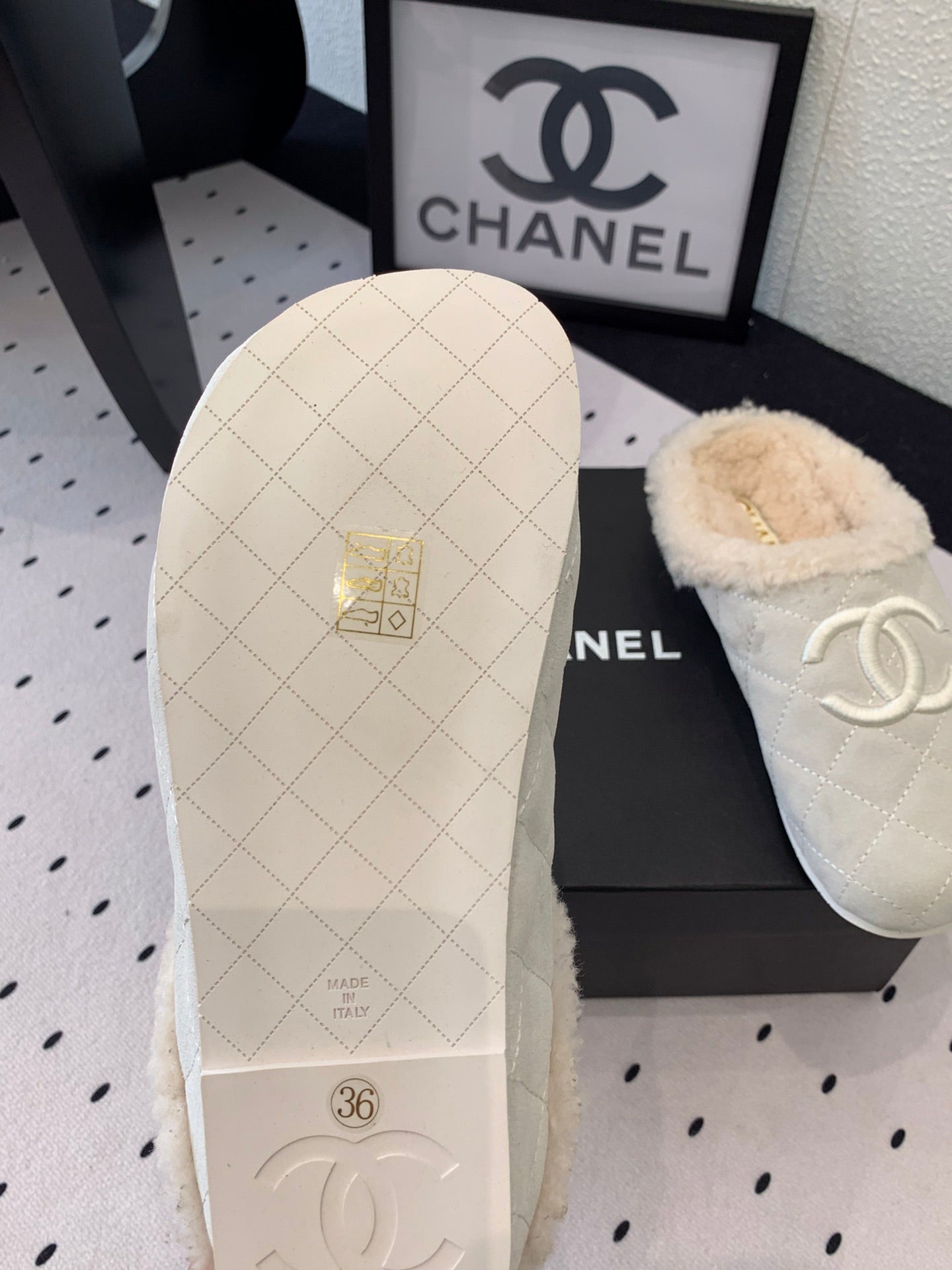 FLAT MULE IN BEIGE SUEDE AND LAMB FUR LINING
