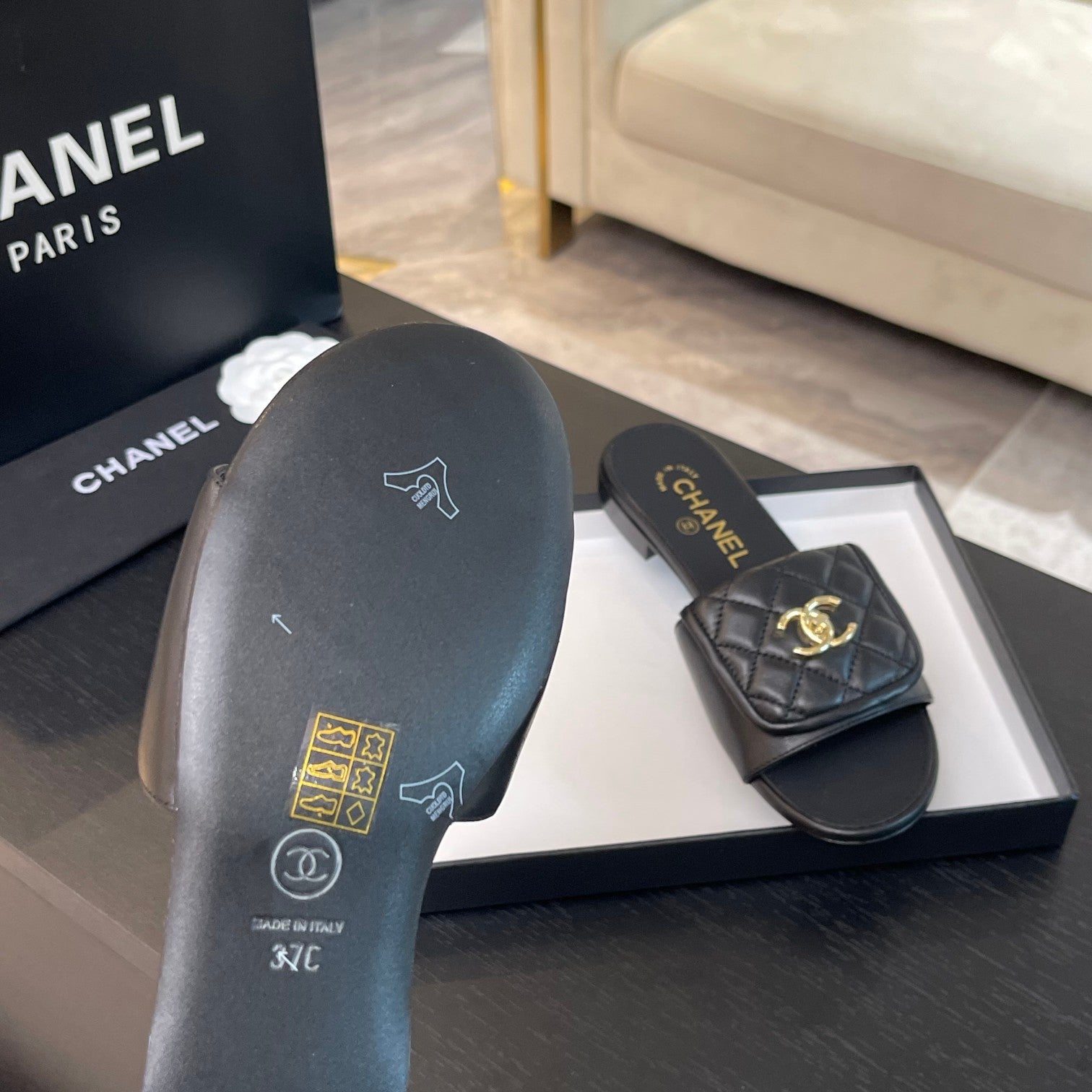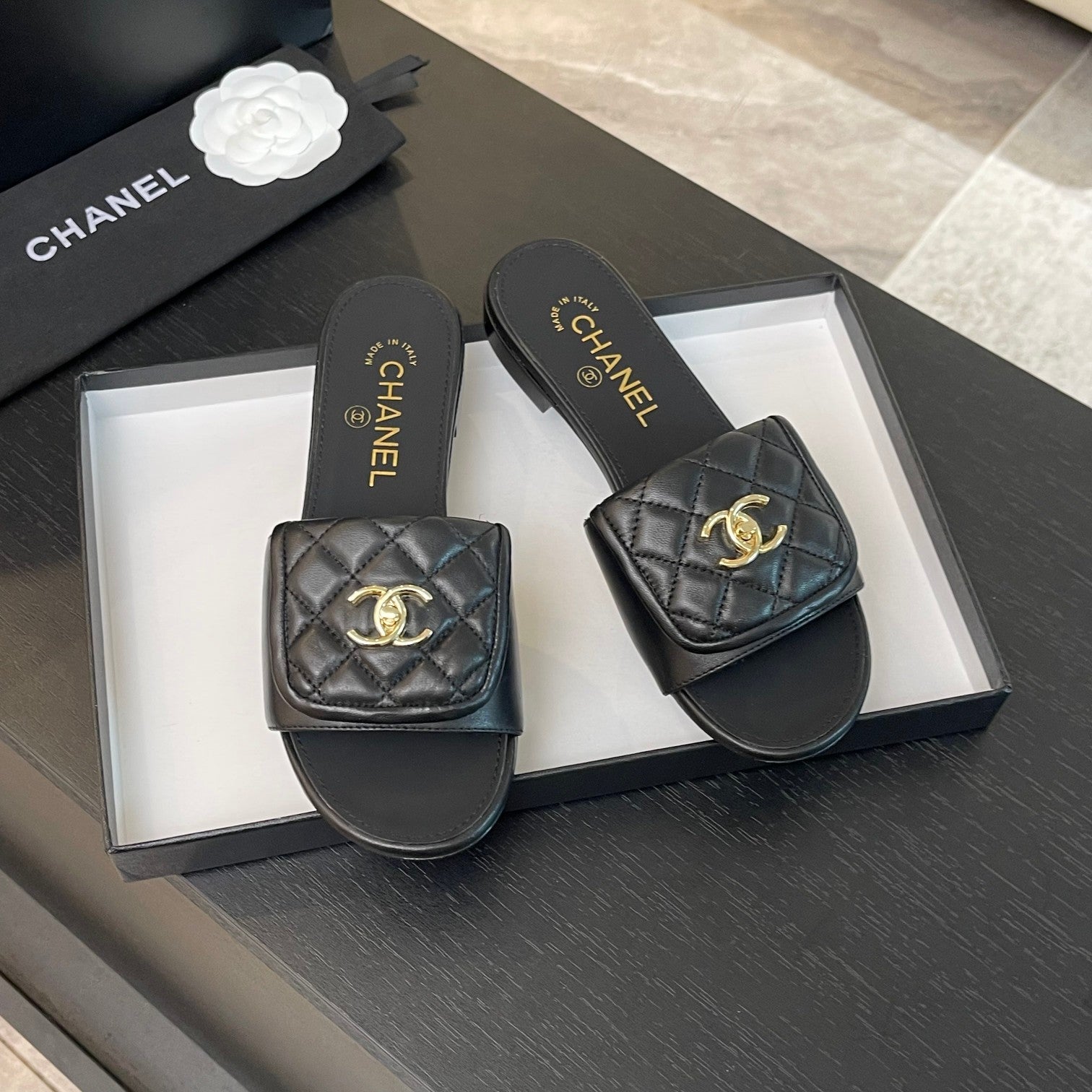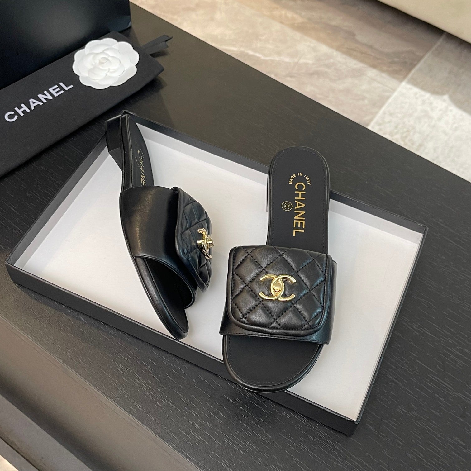 FLAT MULE IN BLACK LAMBSKIN