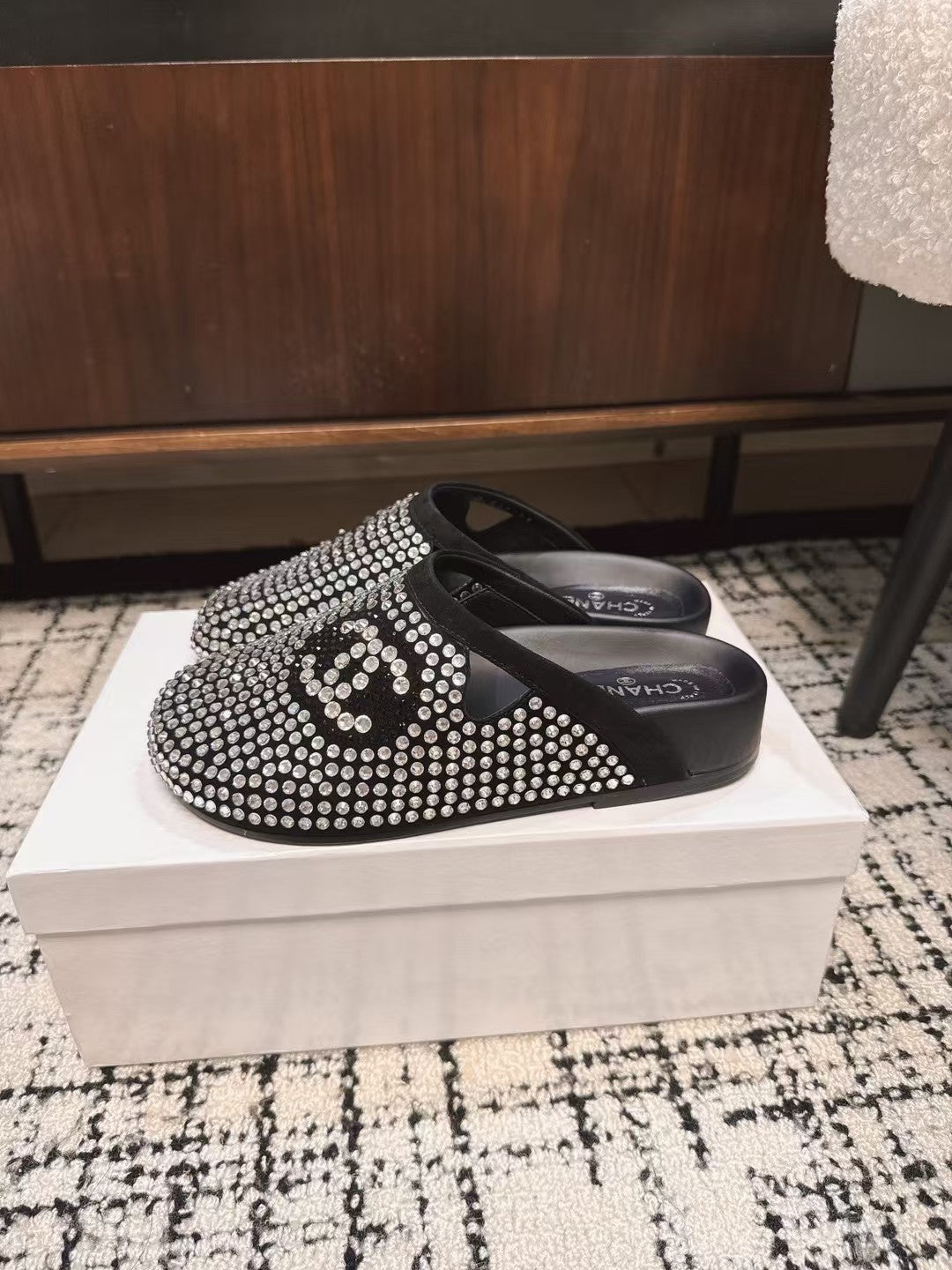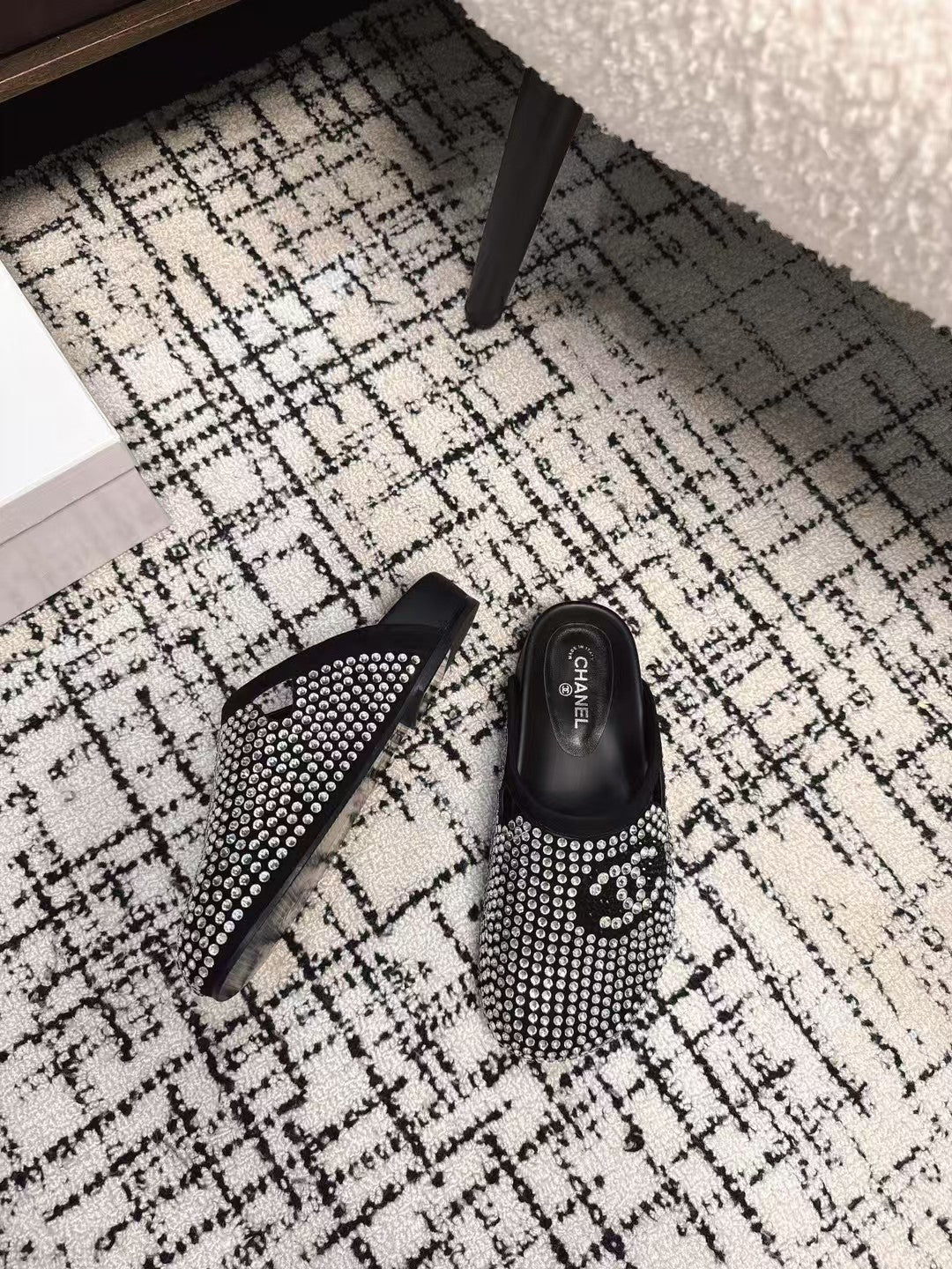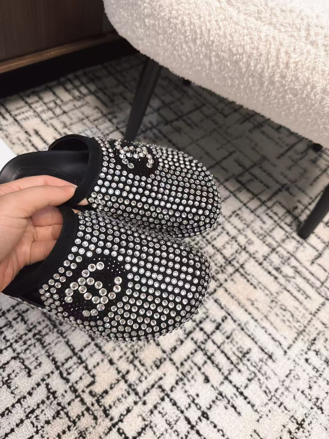 FLAT MULE IN BLACK SUEDE WITH CRYSTALS