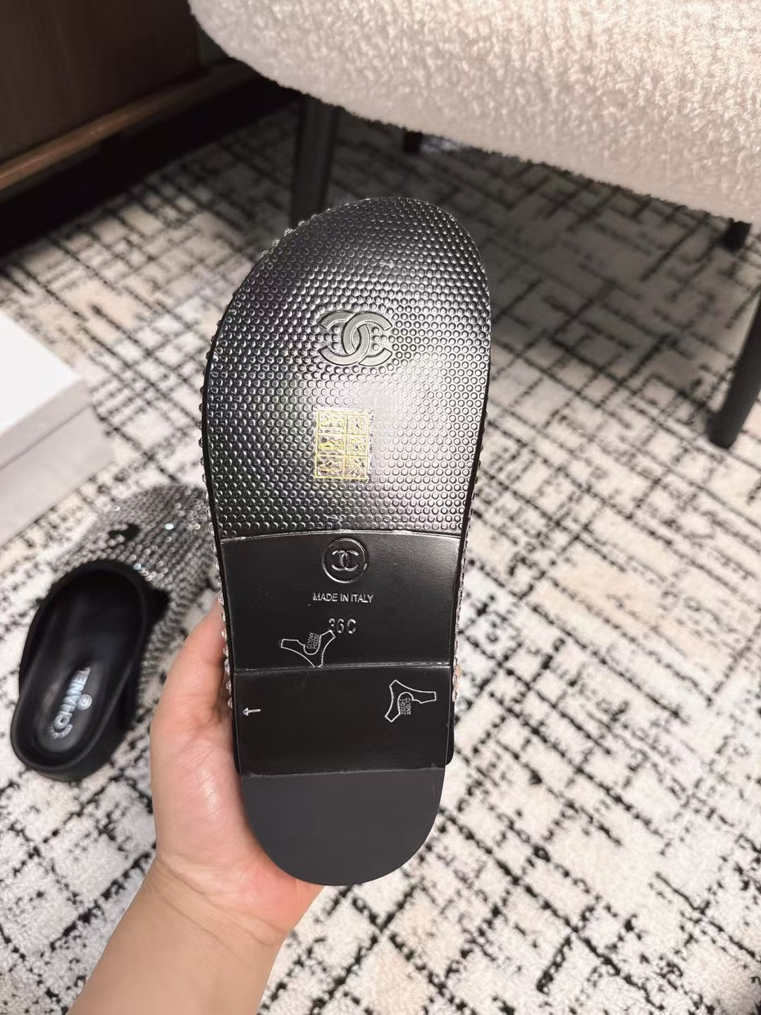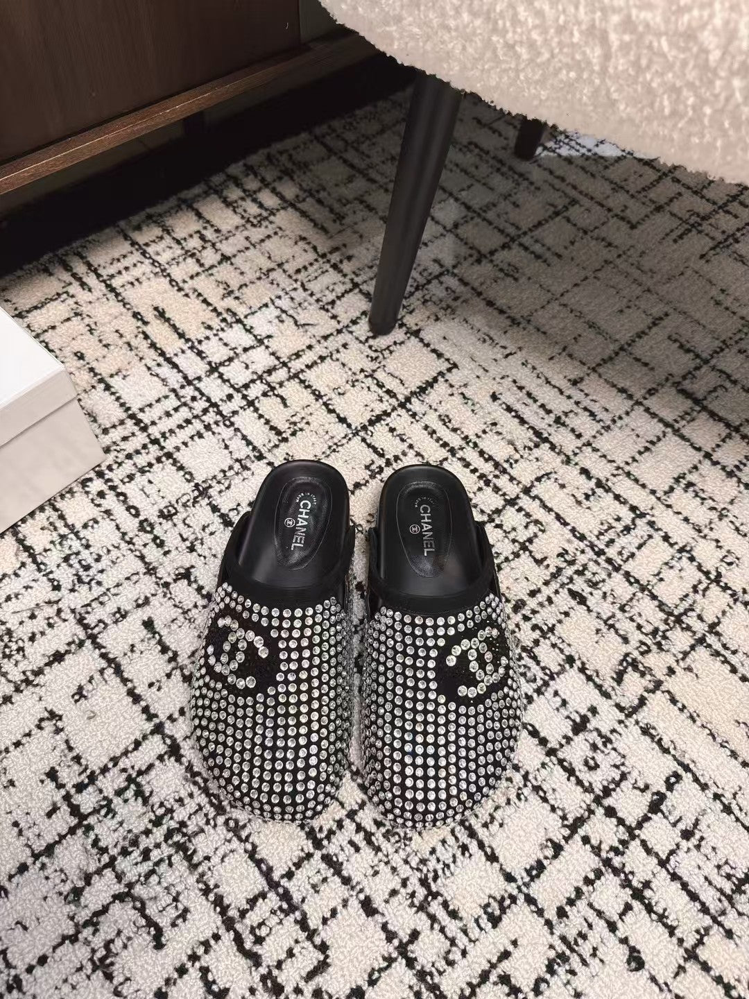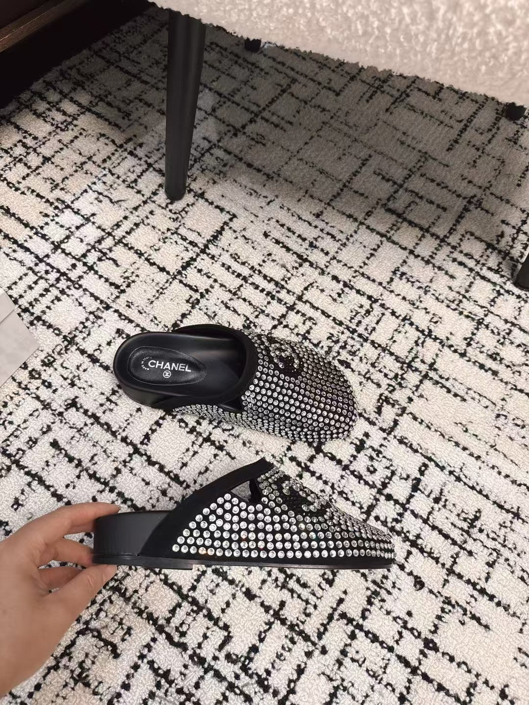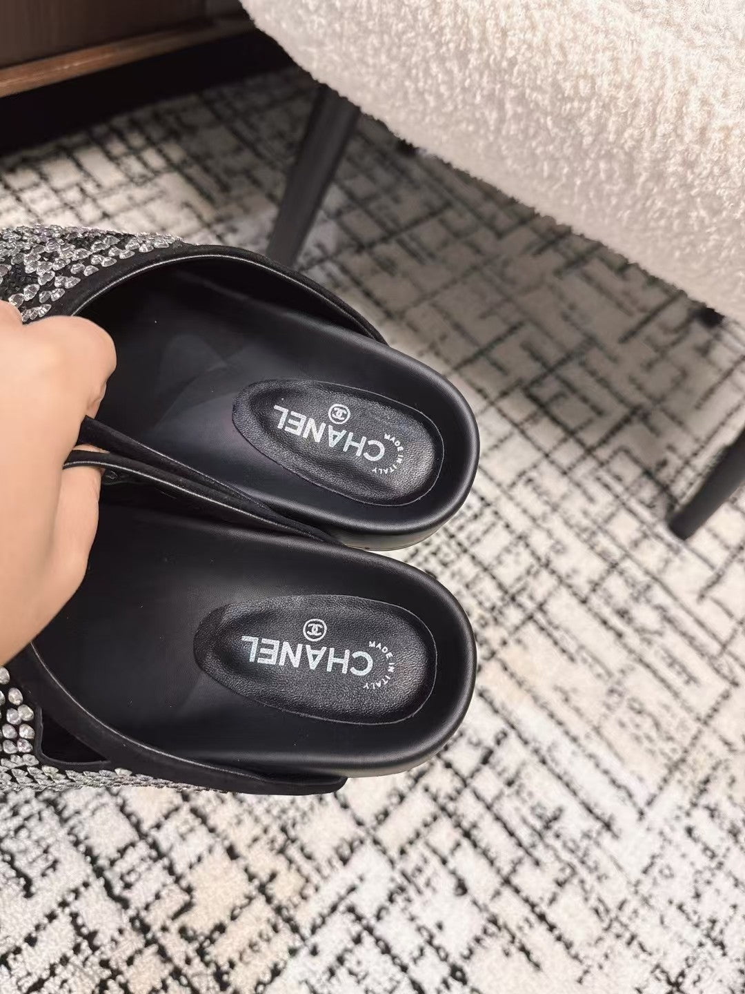 FLAT MULE IN BLACK SUEDE WITH CRYSTALS