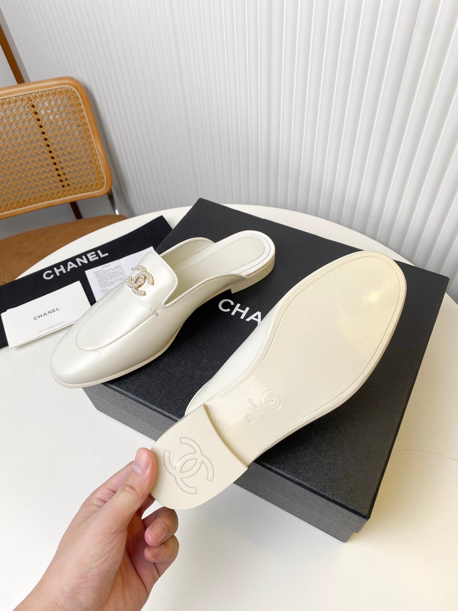 FLAT MULE IN WHITE LAMBSKIN 983819