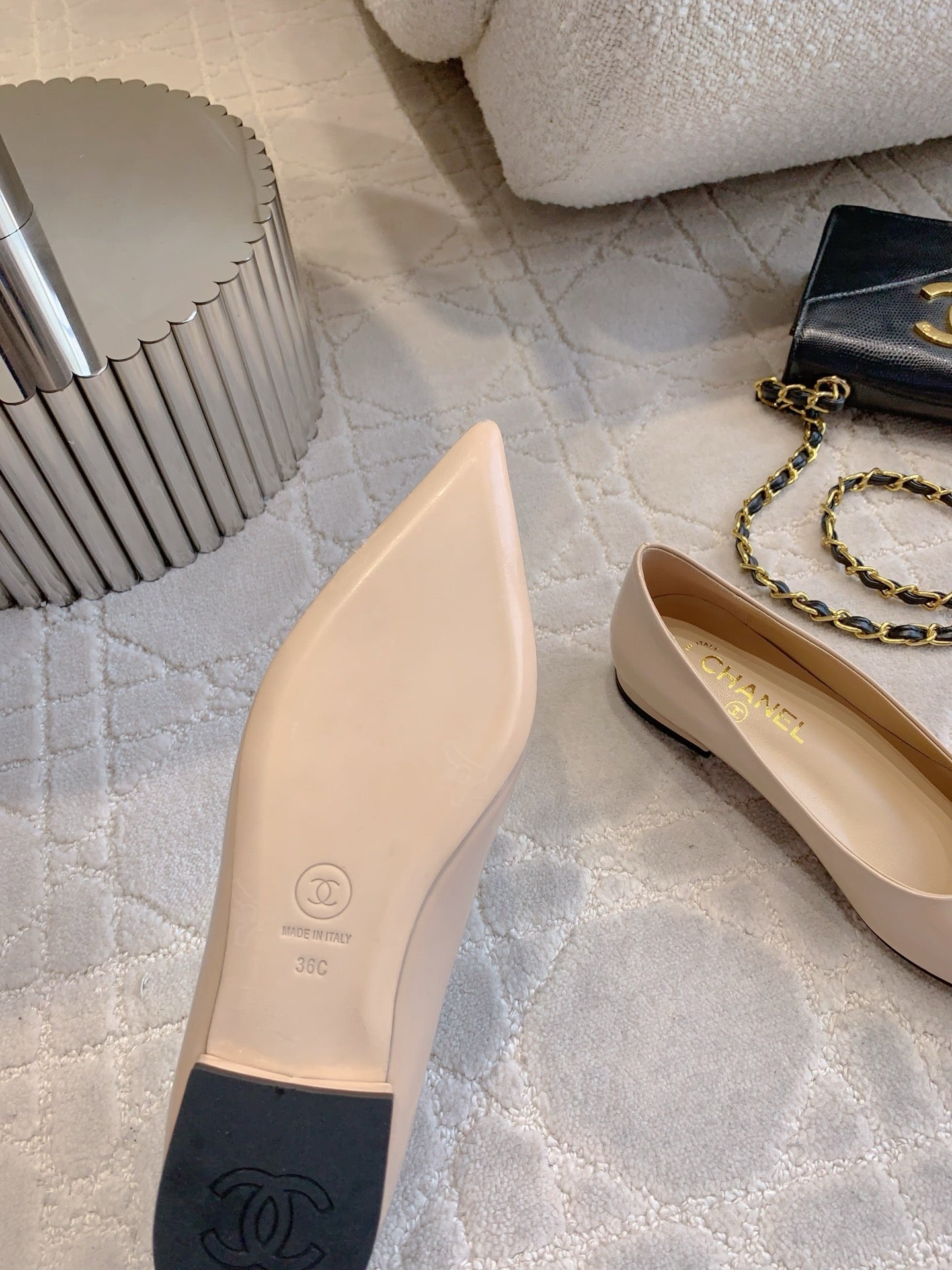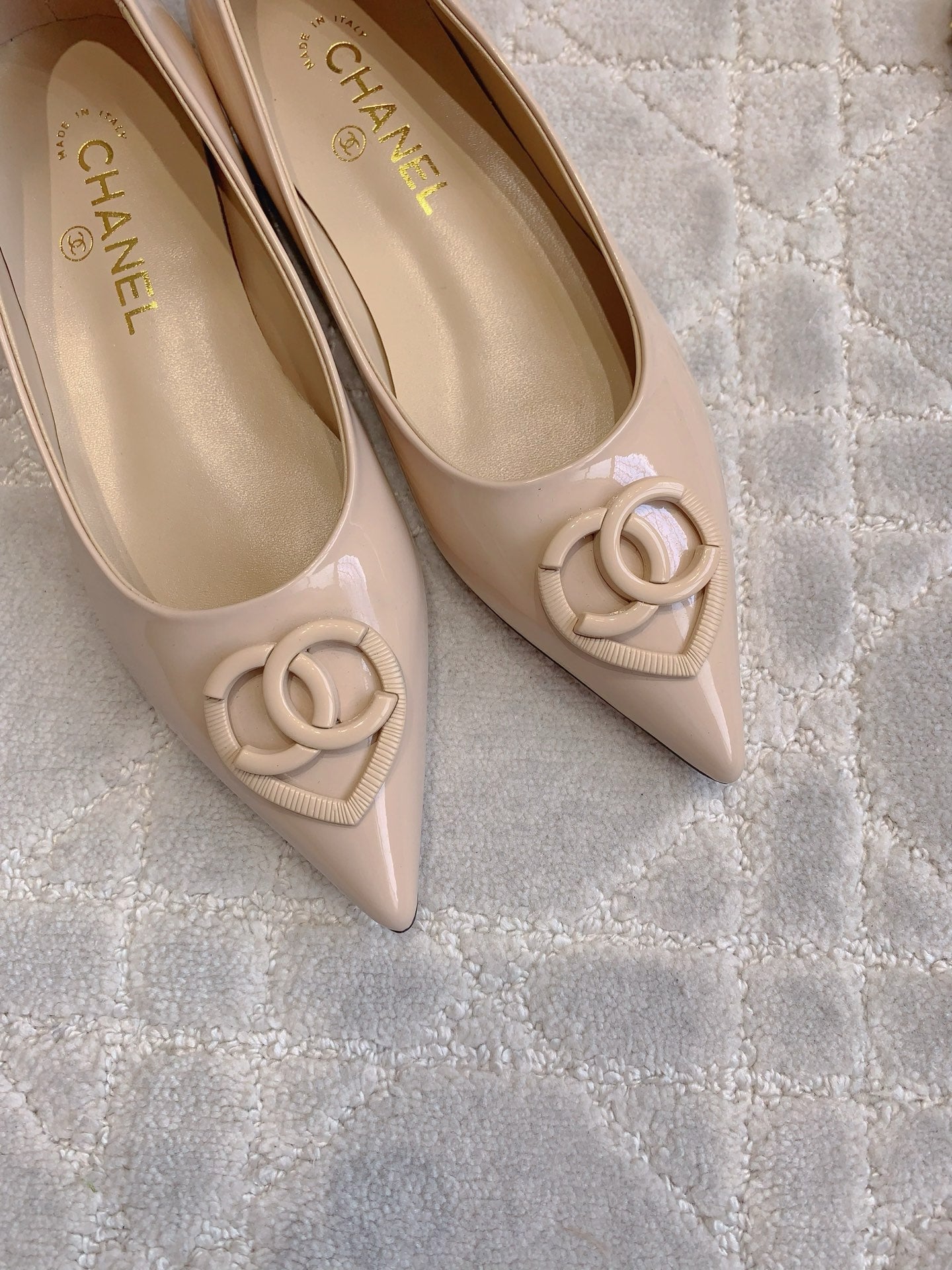FLAT PUMP 2 CM IN BEIGE CREAM PATENT CALFSKIN