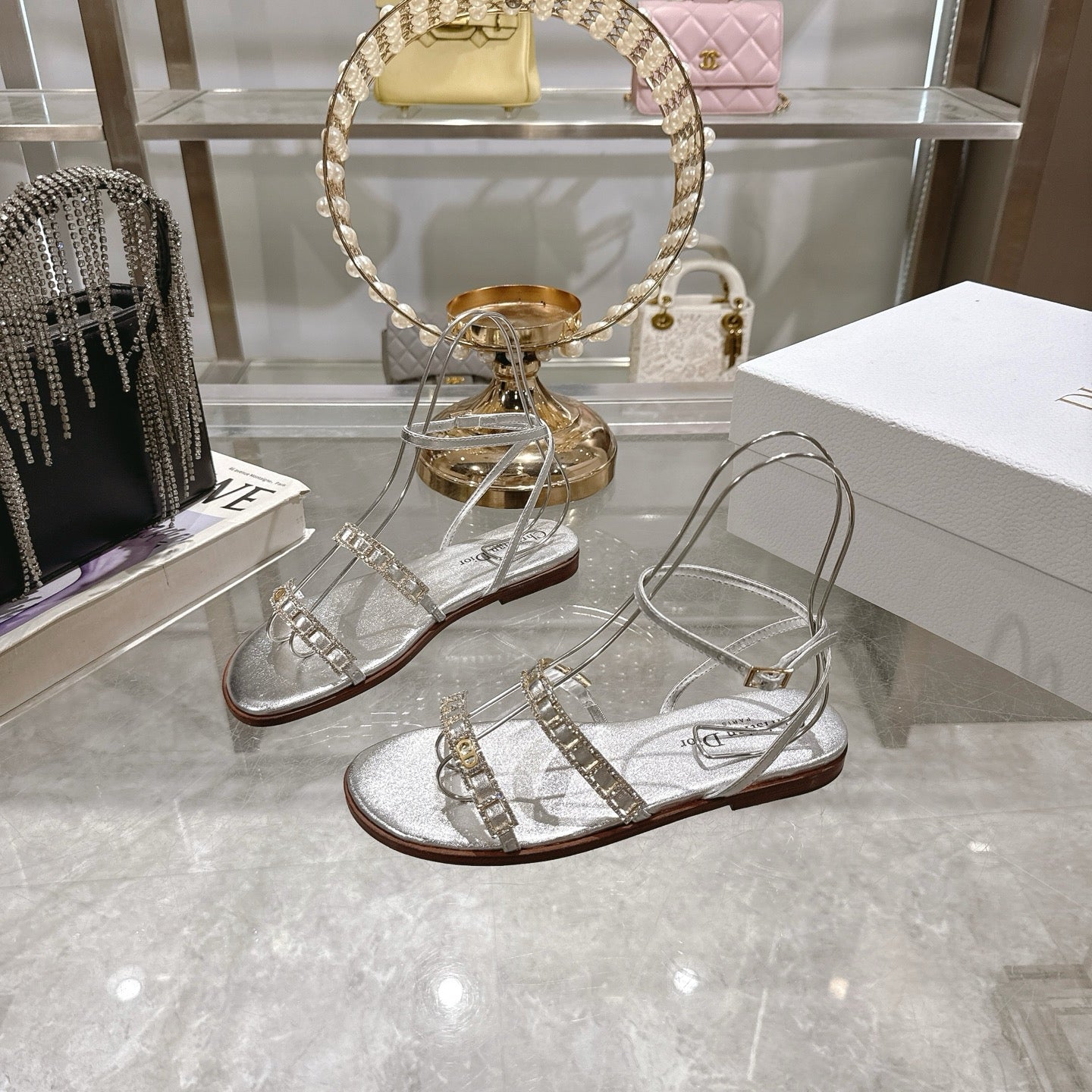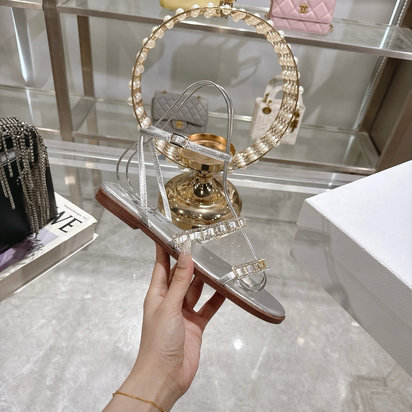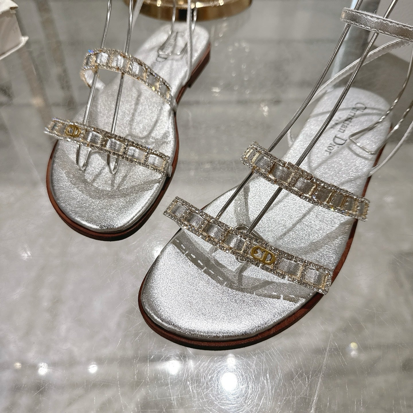 FLAT SANDALS 25S IN SILVER CALFSKIN RHINESTONES STRAP