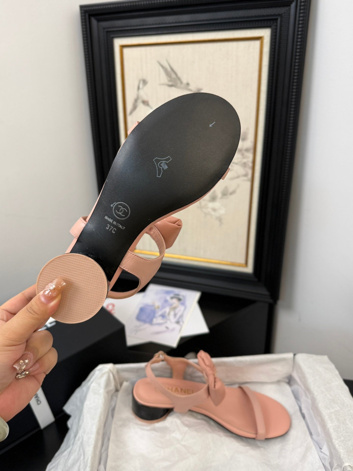 FLAT SANDALS IN PEACHY PINK CALFSKIN WITH BOW