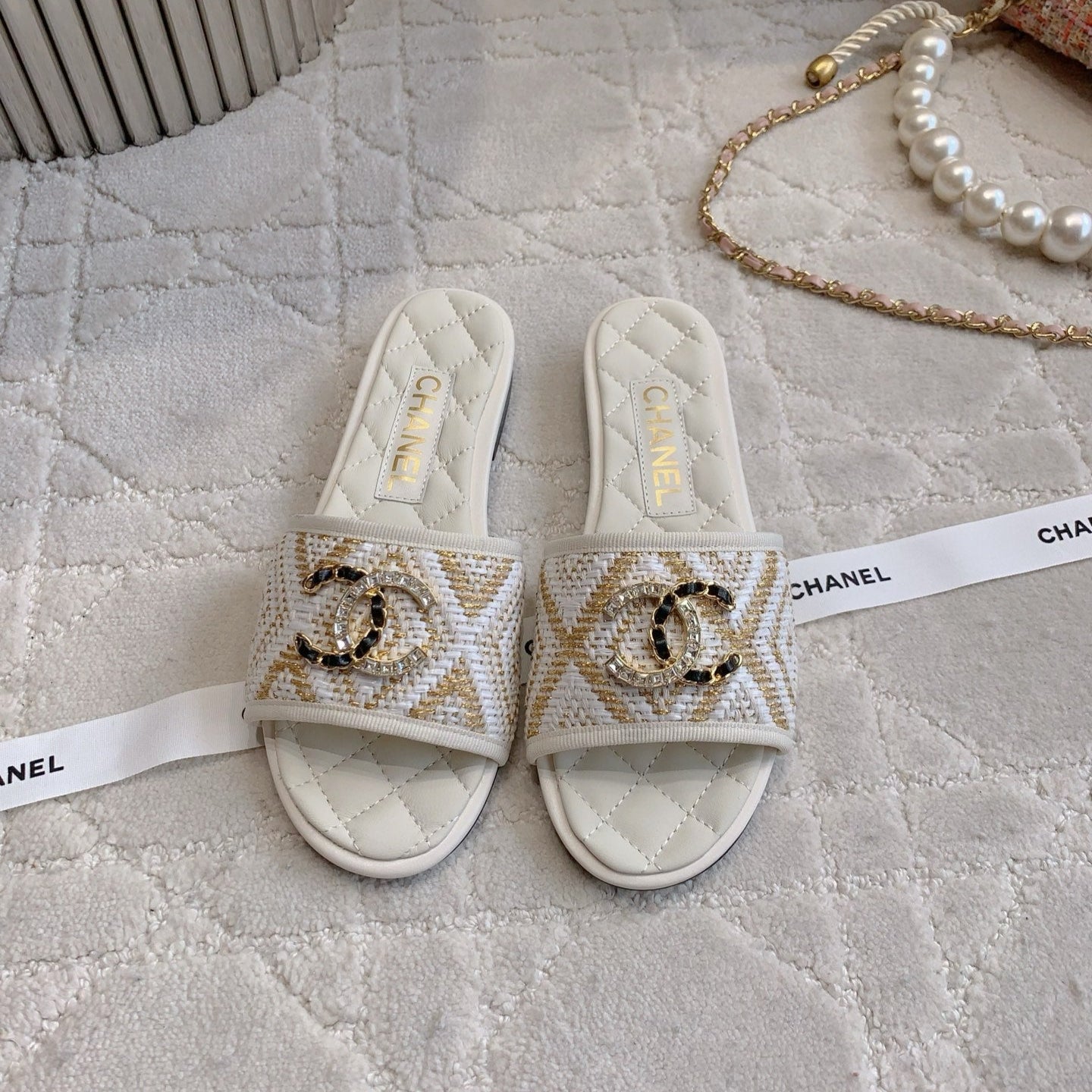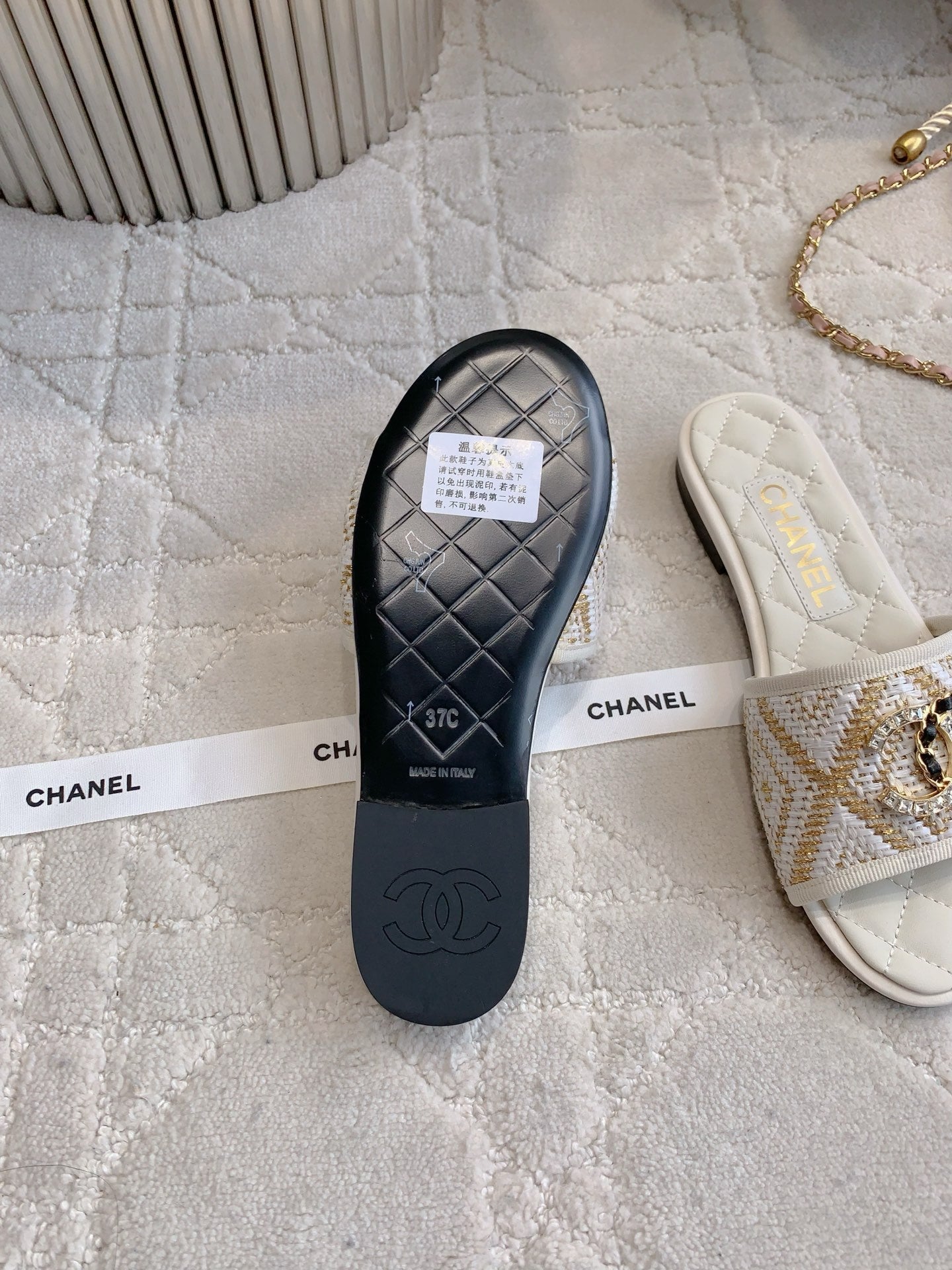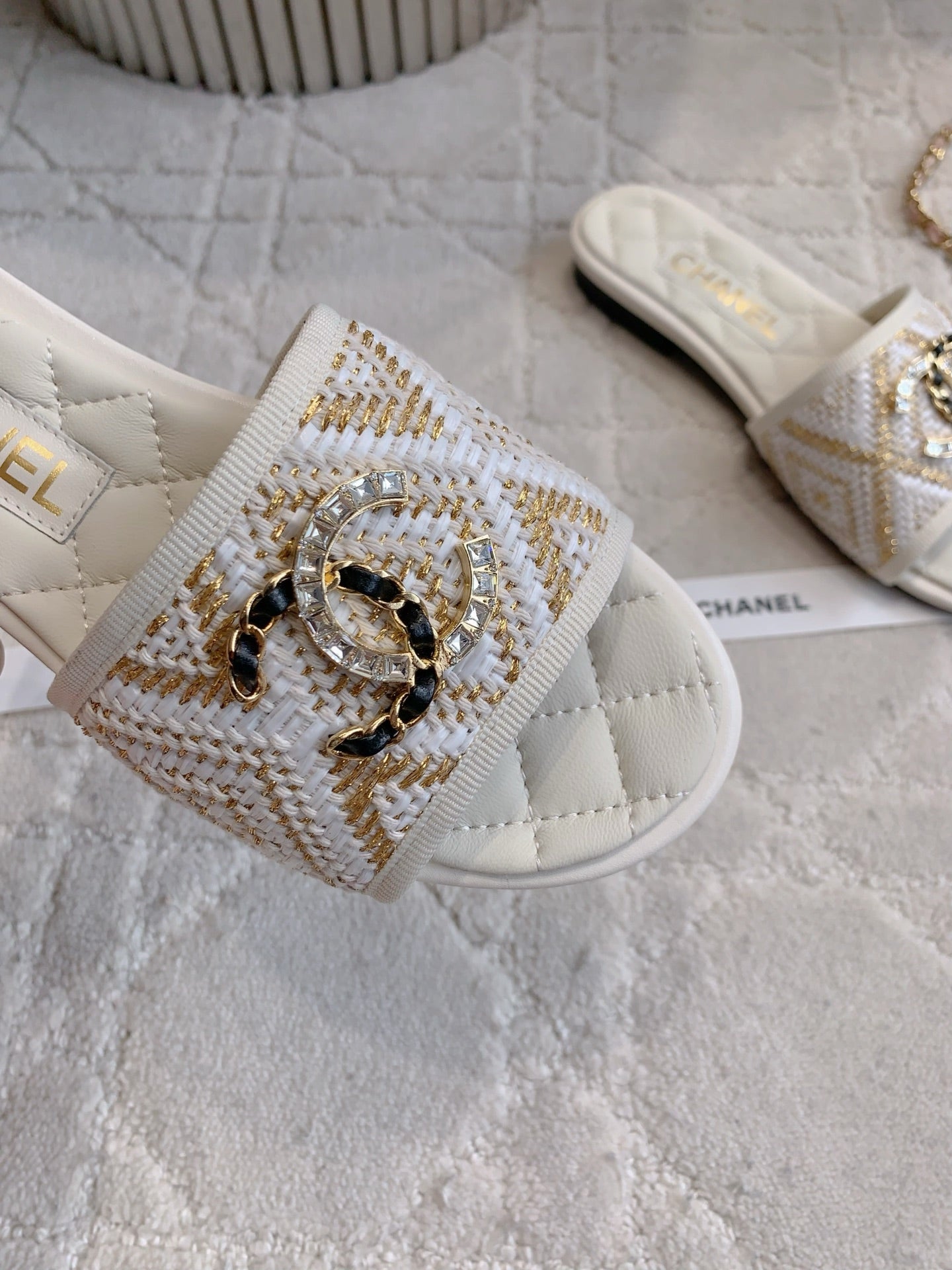 FLAT SANDALS LOGO STONE AND CHAIN IN WHITE LAMBSKIN WITH RAFFIA