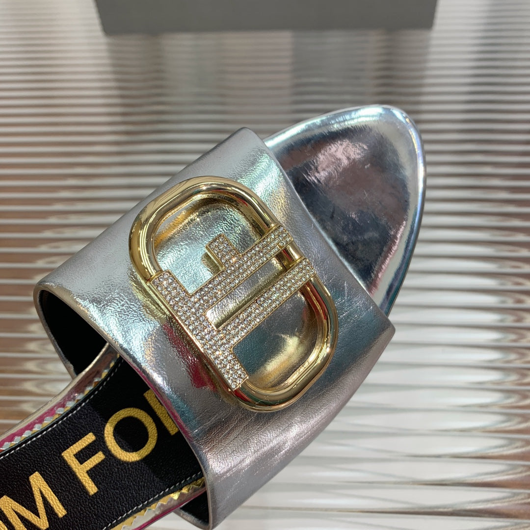FLAT SLIDE IN SILVER METALLIC CALFSKIN