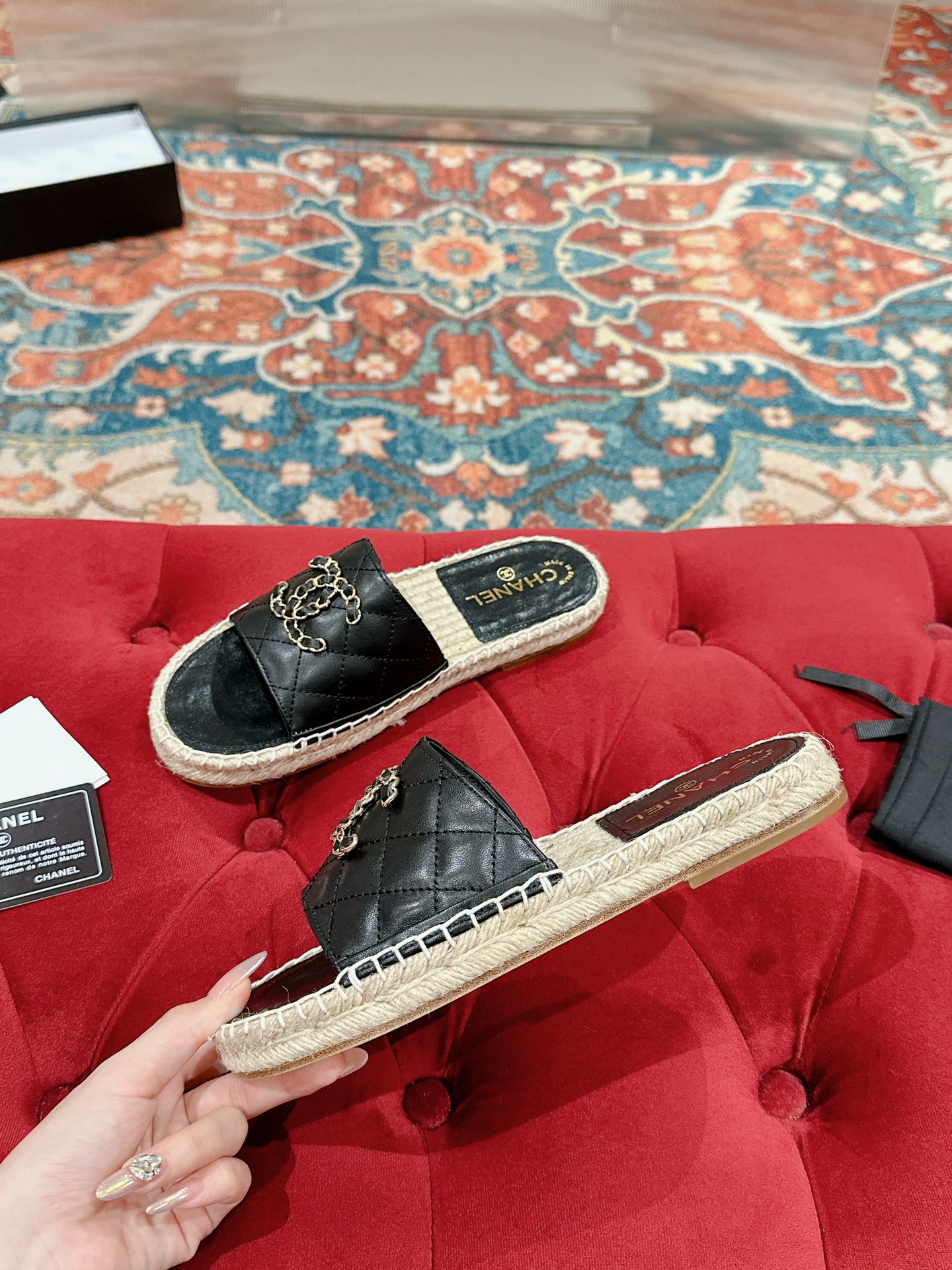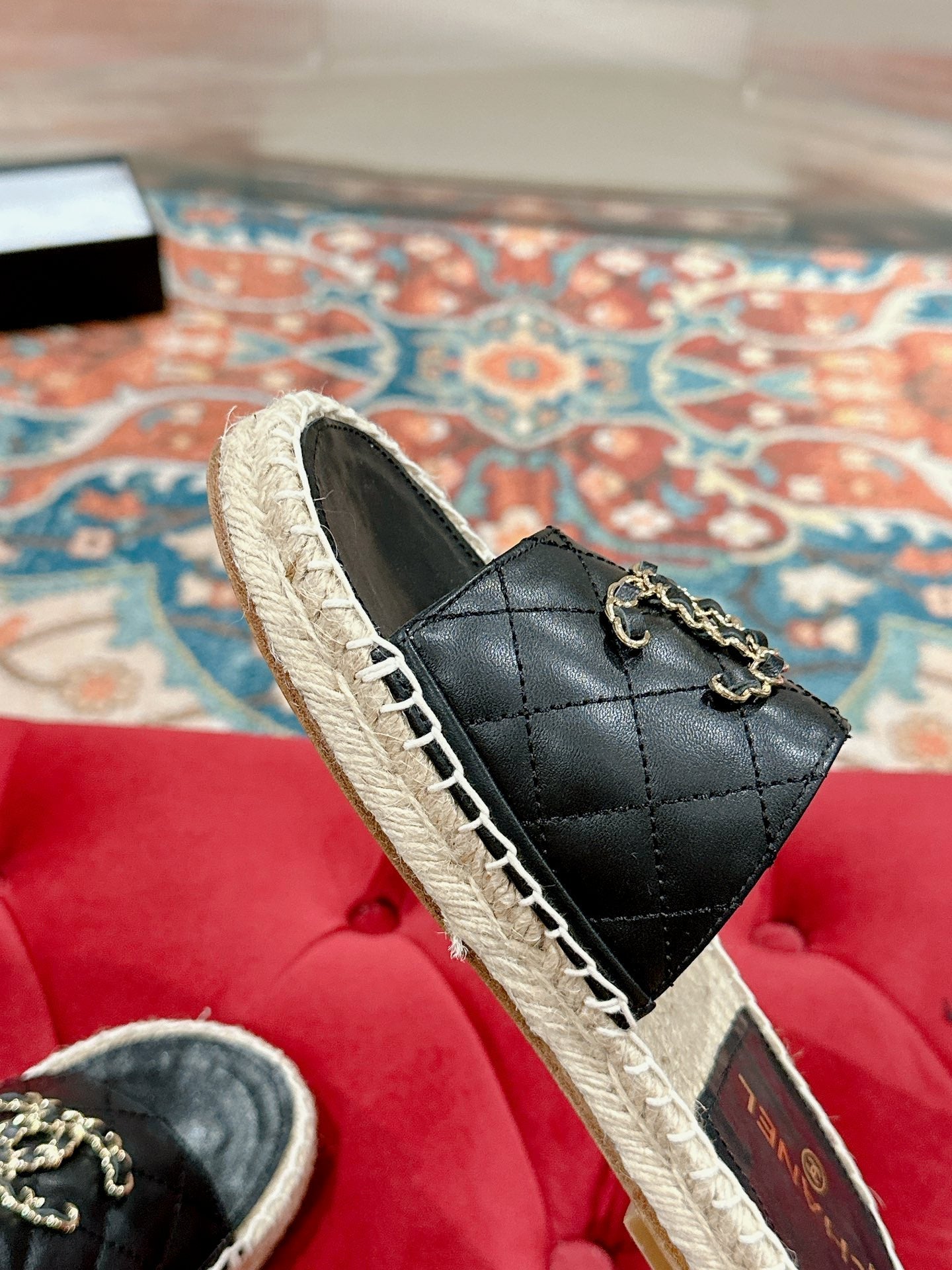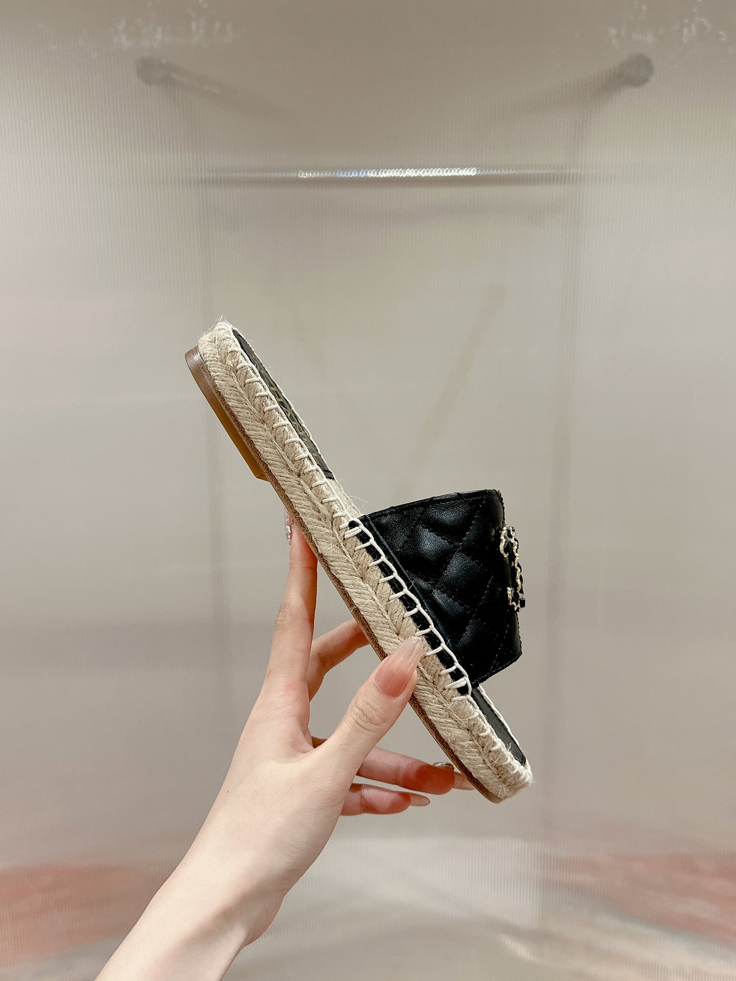 FLAT SLIPPERS IN BLACK LAMBSKIN AND WOVEN WITH LOGO