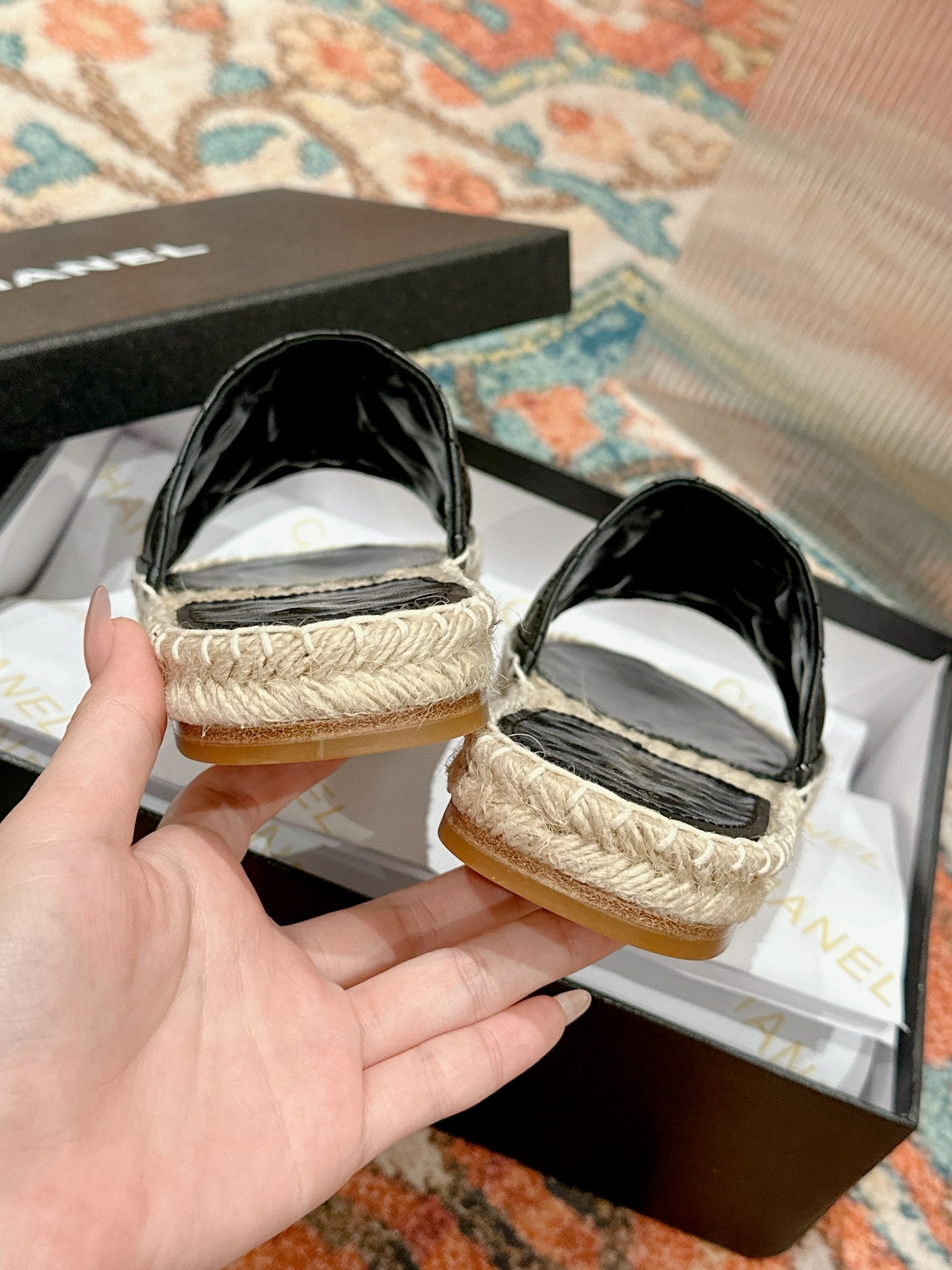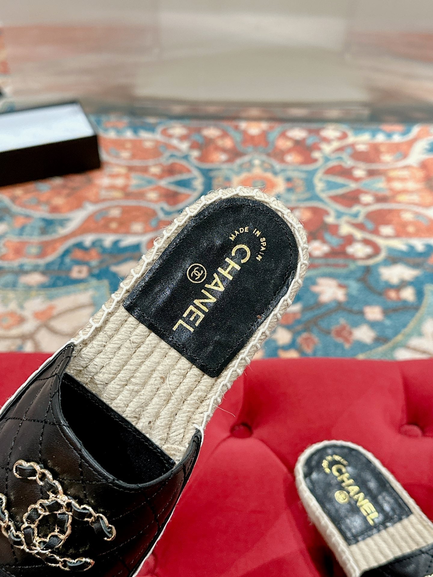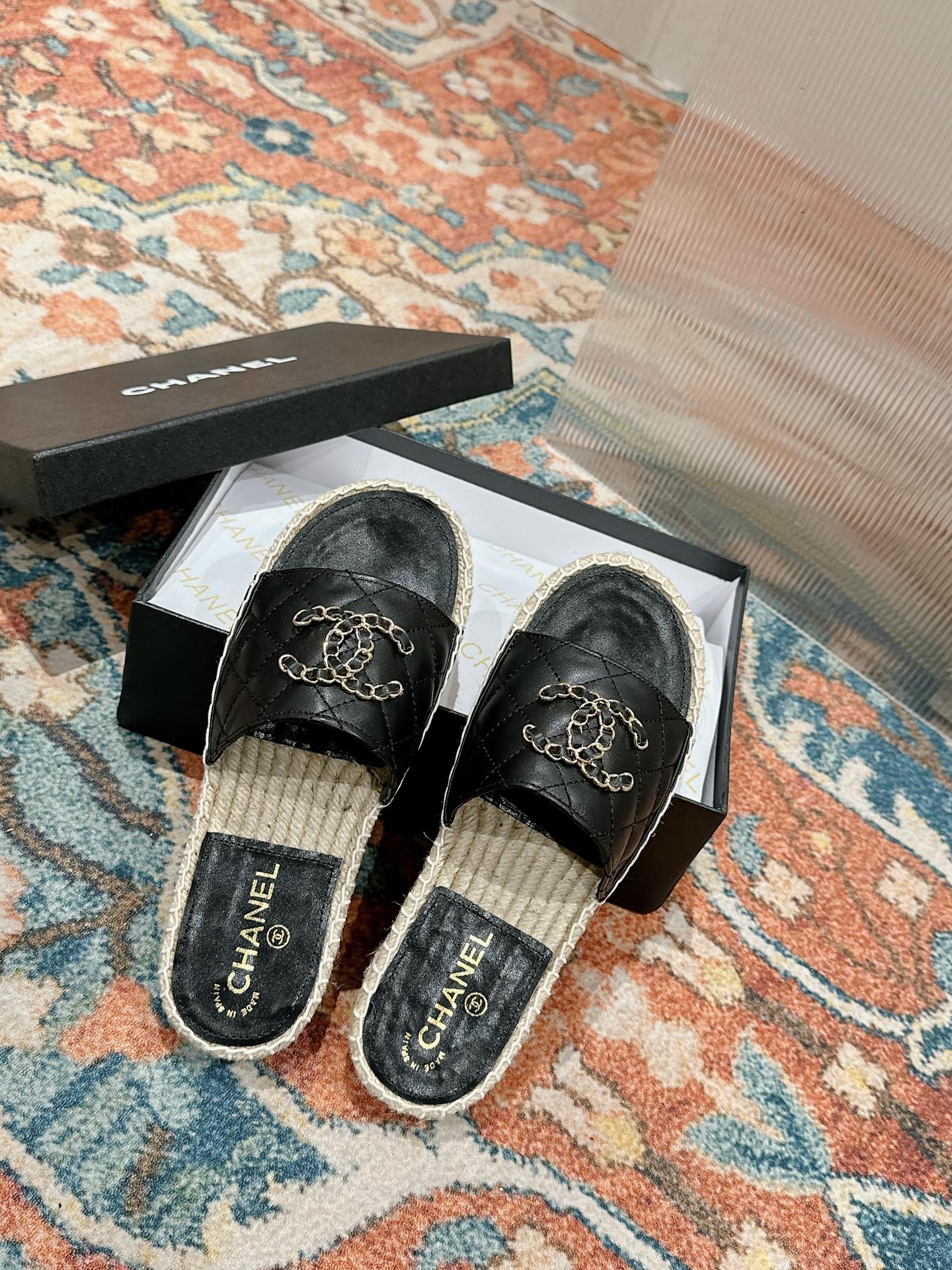 FLAT SLIPPERS IN BLACK LAMBSKIN AND WOVEN WITH LOGO
