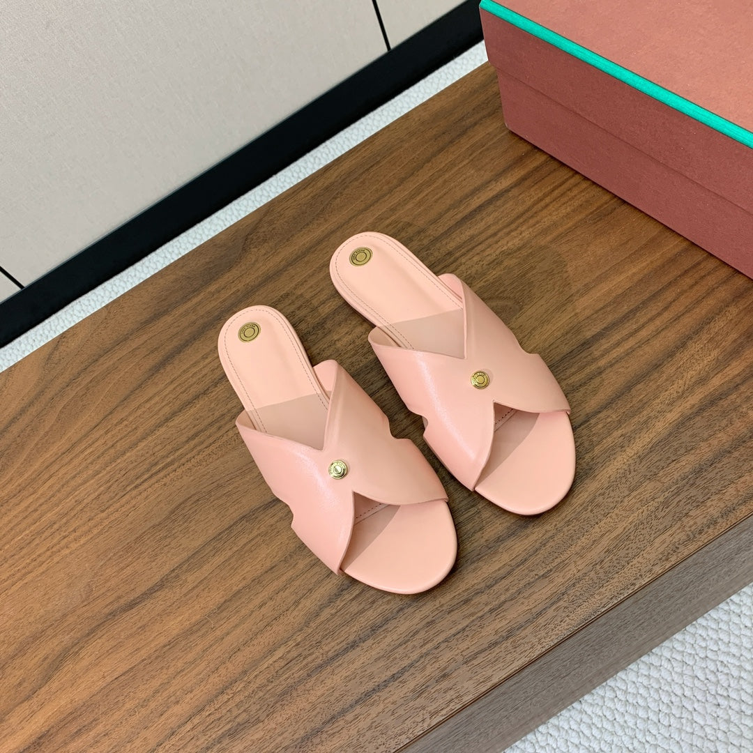 FLAT SLIPPERS IN LIGHT PINK CALFSKIN