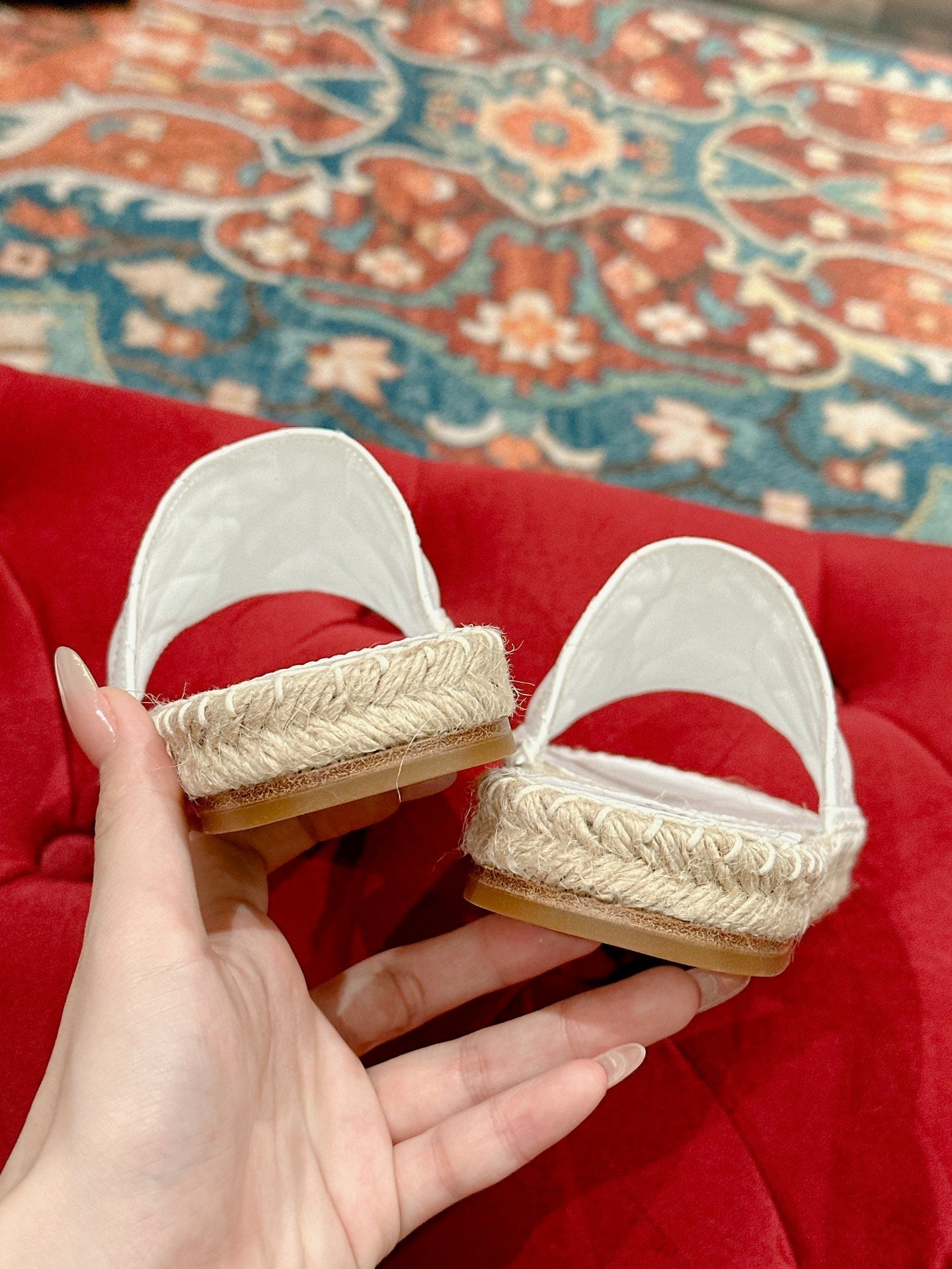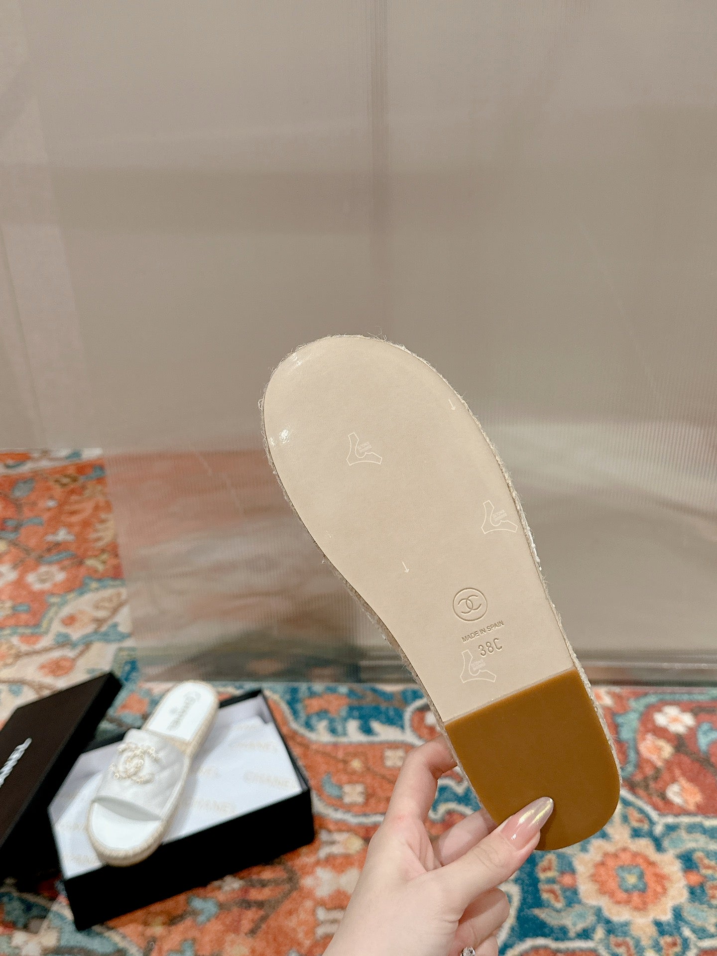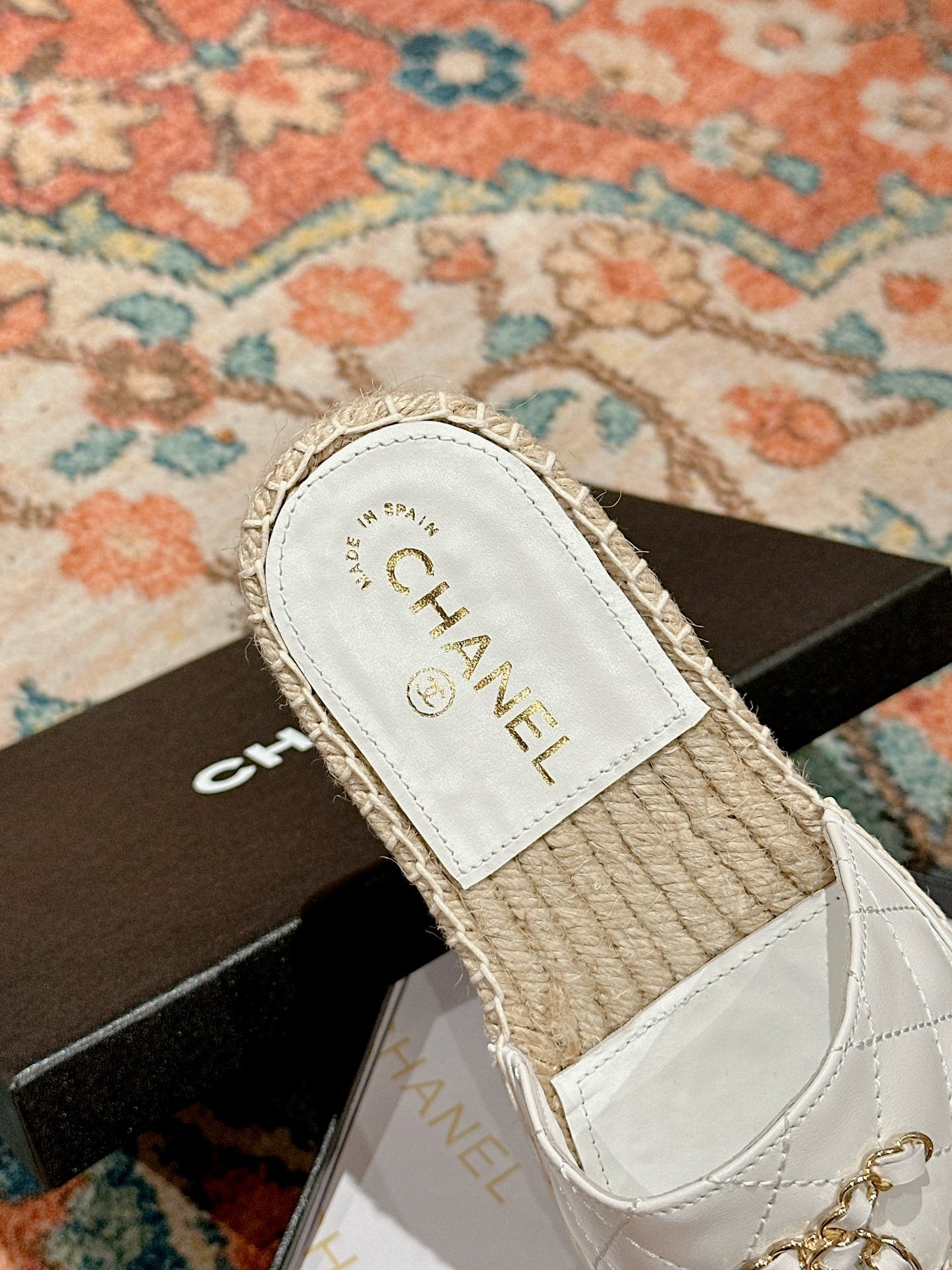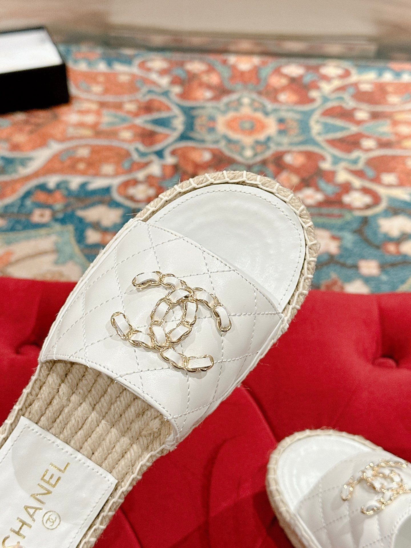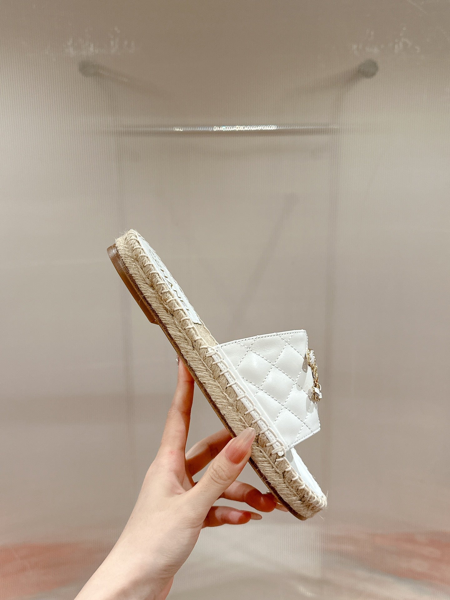 FLAT SLIPPERS IN WHITE LAMBSKIN AND WOVEN WITH LOGO
