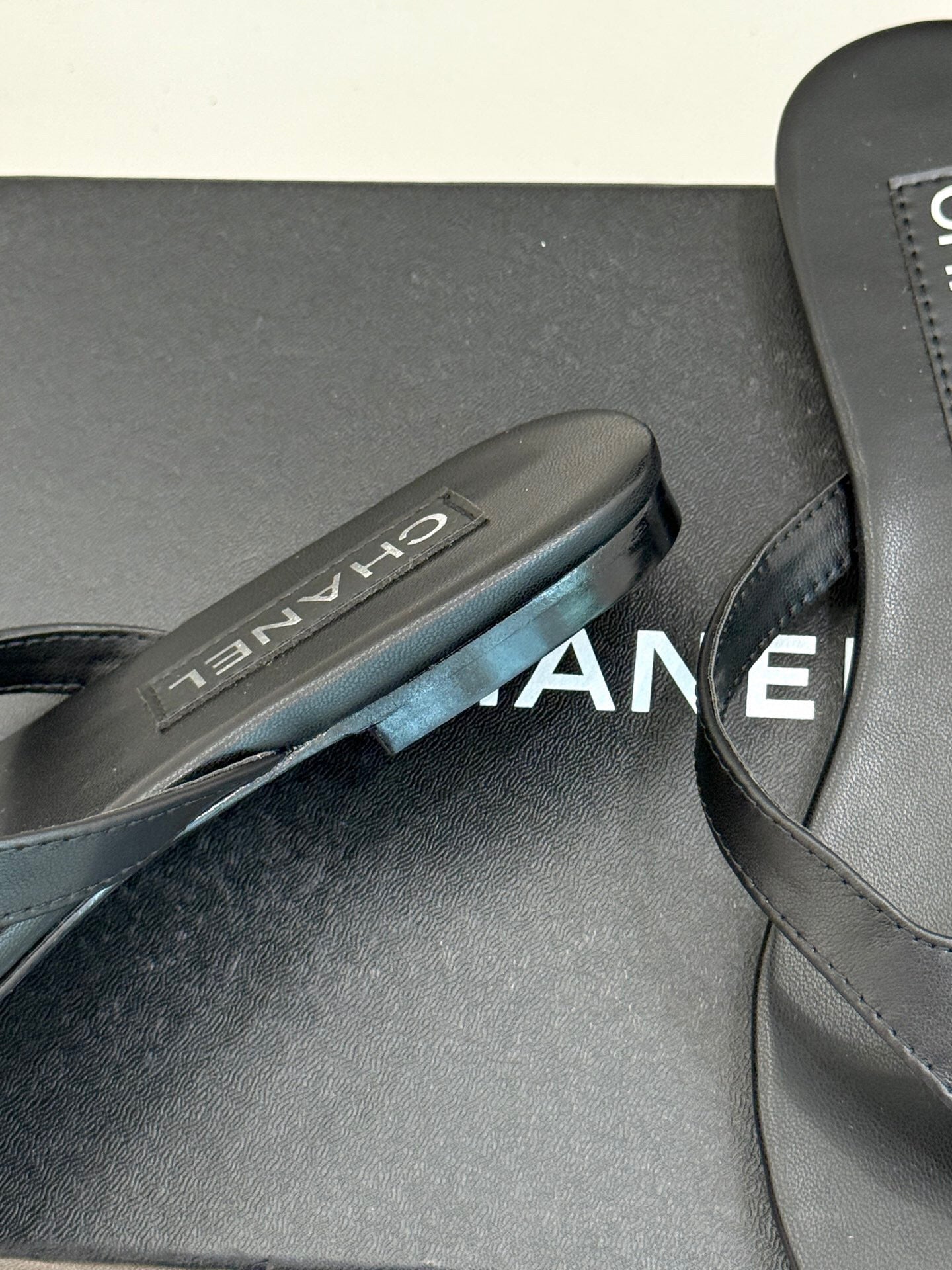 FLAT THONG SANDALS IN BLACK CALFKSIN EMBOSSED CRYSTAL