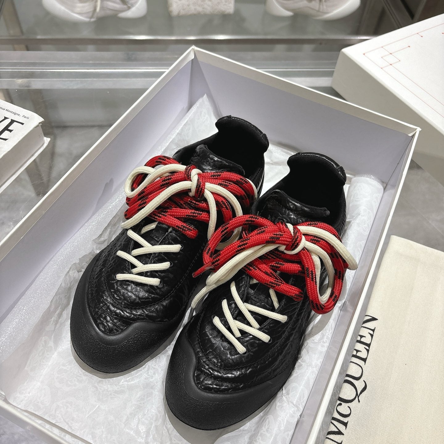 FLEXION SNEAKER IN BLACK CALFSKIN WITH RED AND WHITE LACES