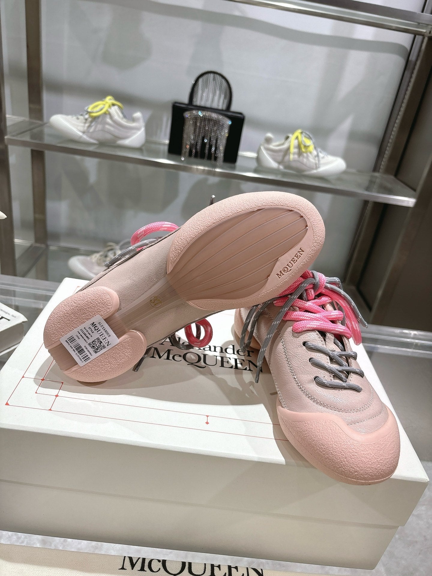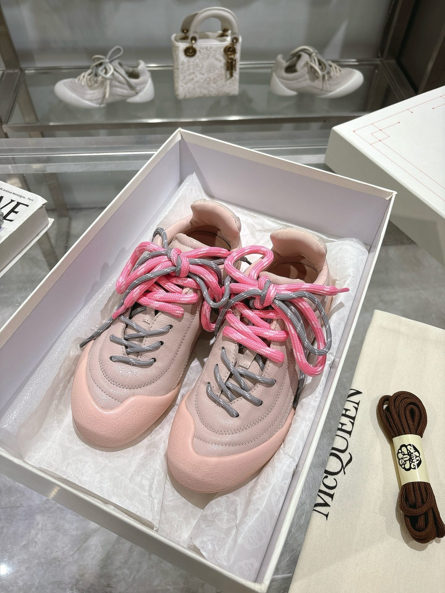 FLEXION SNEAKER IN NUDE PINK CALFSKIN WITH LIGHT PINK AND GREY LACES
