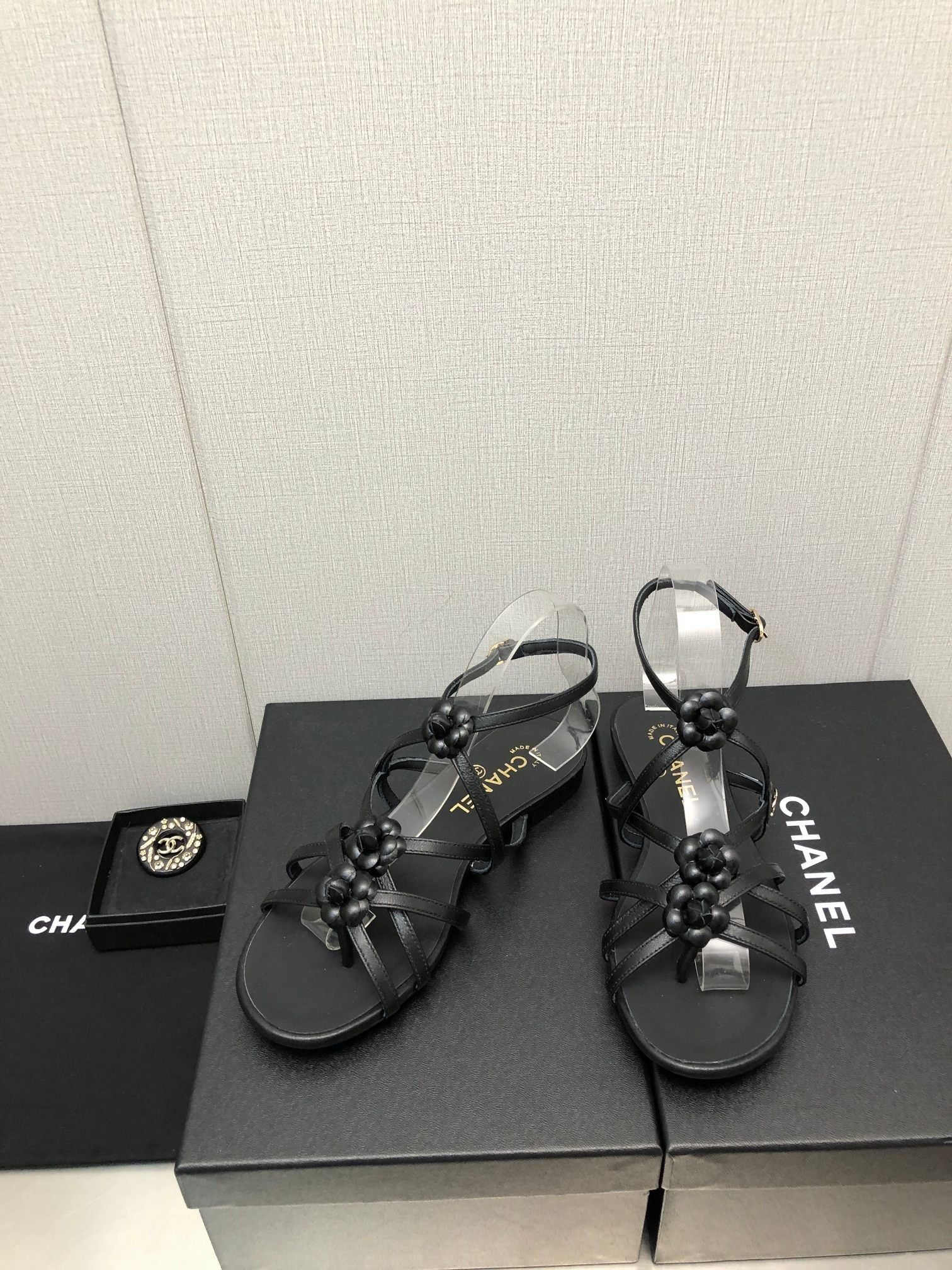 FLORAL FLAT SANDAL IN BLACK LAMBSKIN
