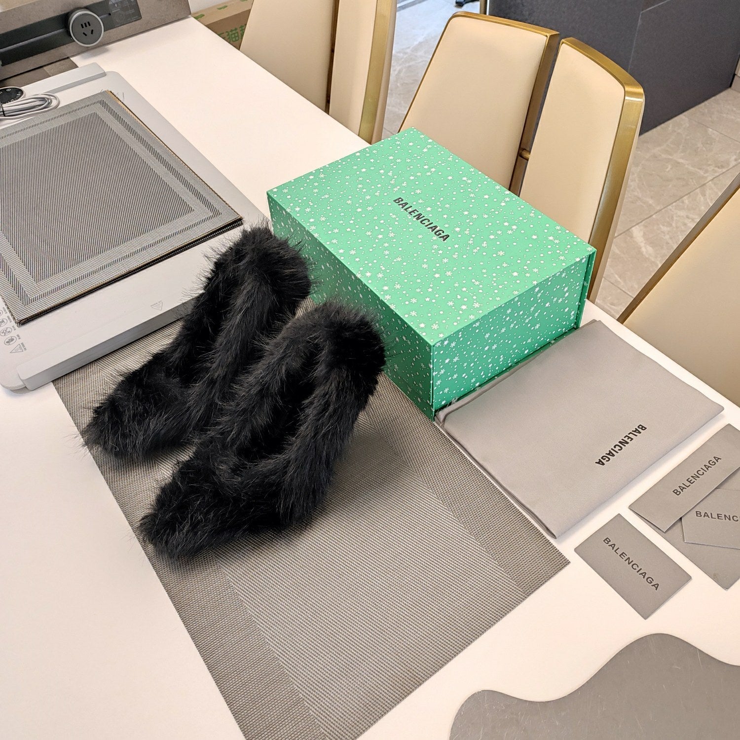 FURRY PUMPS 90MM IN BLACK FOX FUR