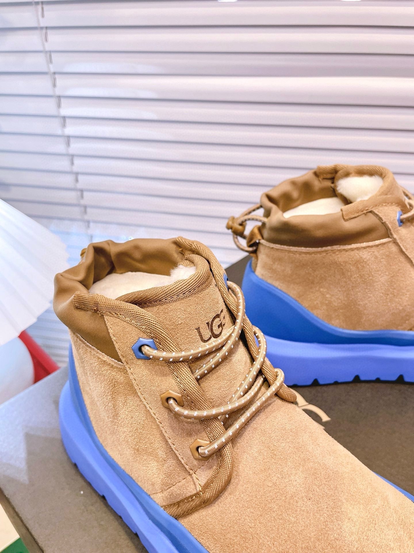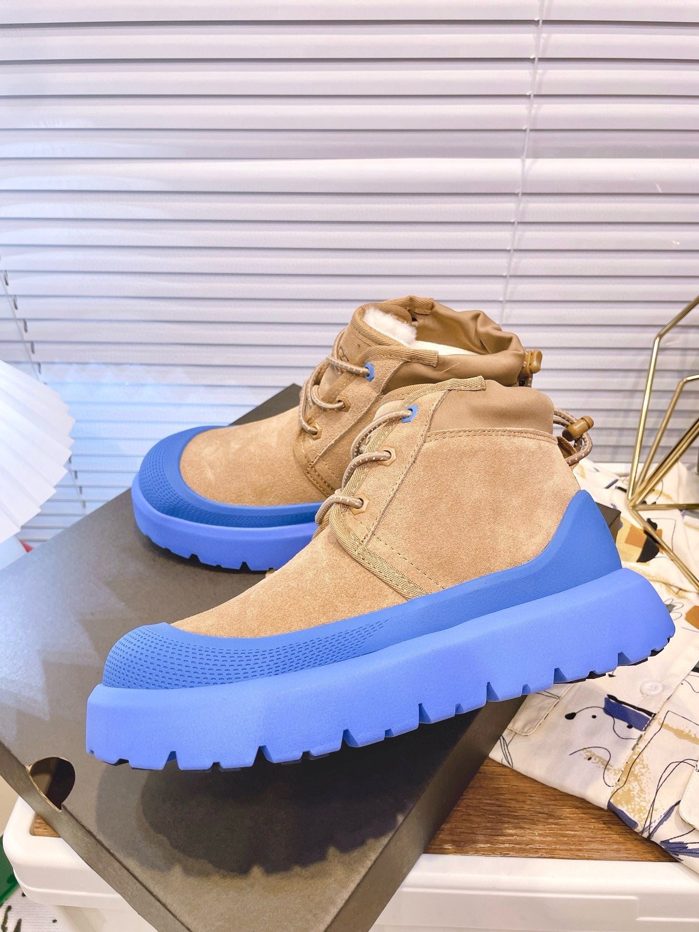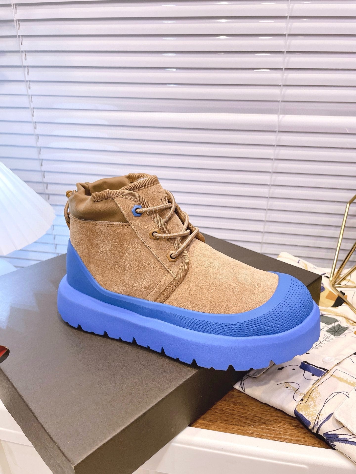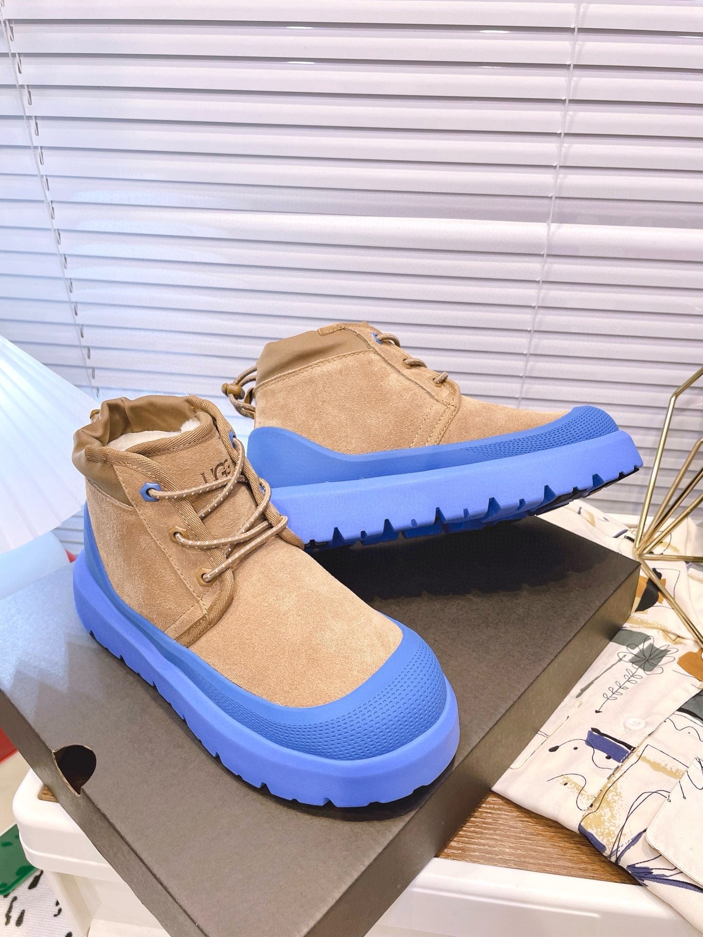 GENDER NEUMEL HIGH WEATHER HYBRID IN PEANUT BROWN SUEDE AND COBALT BLUE CALFSKIN