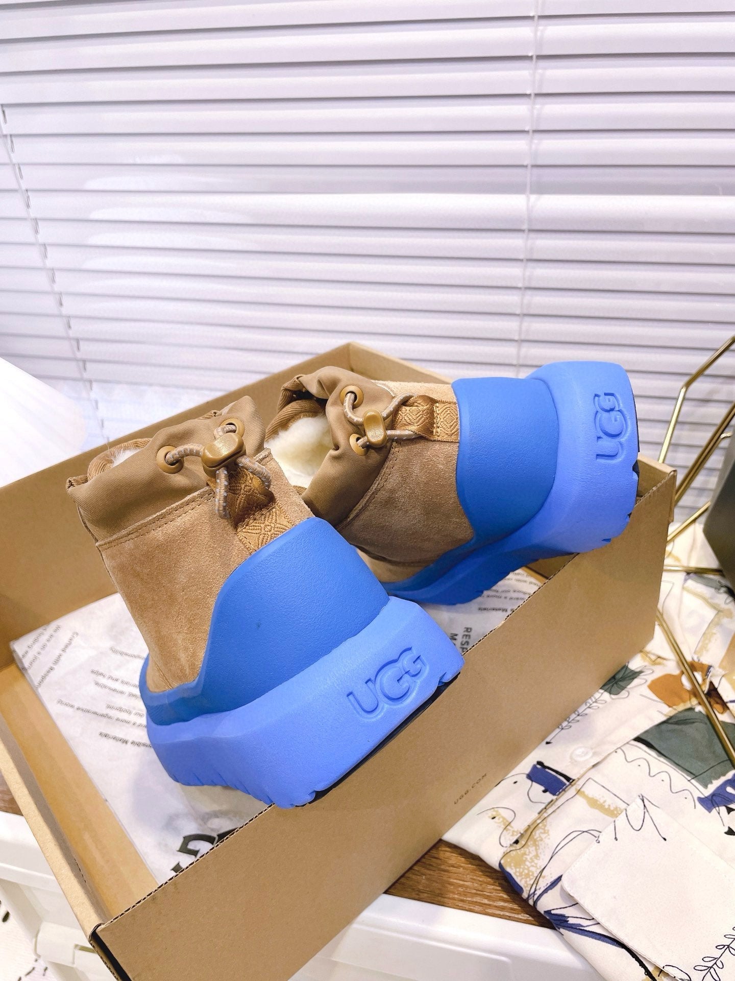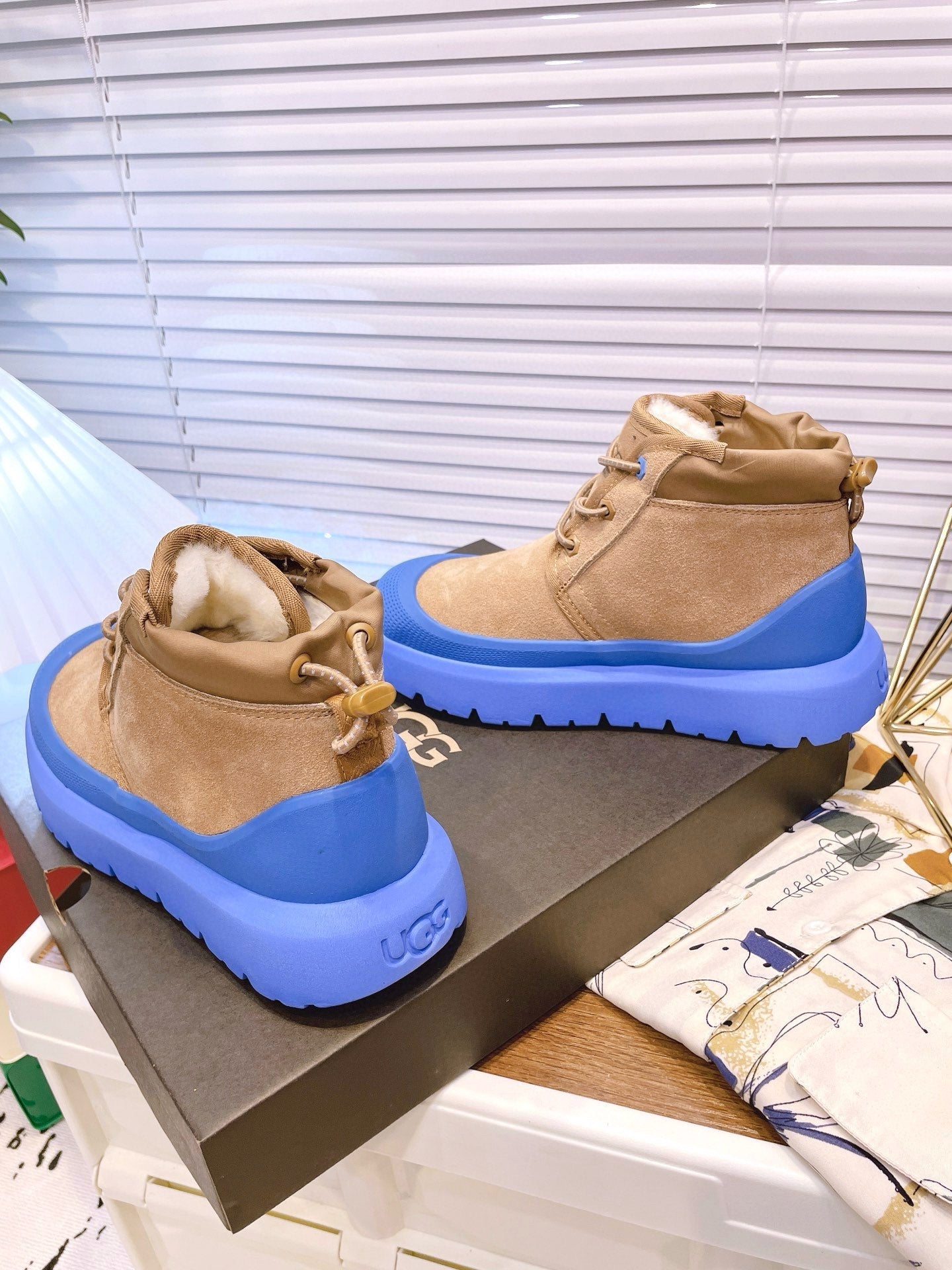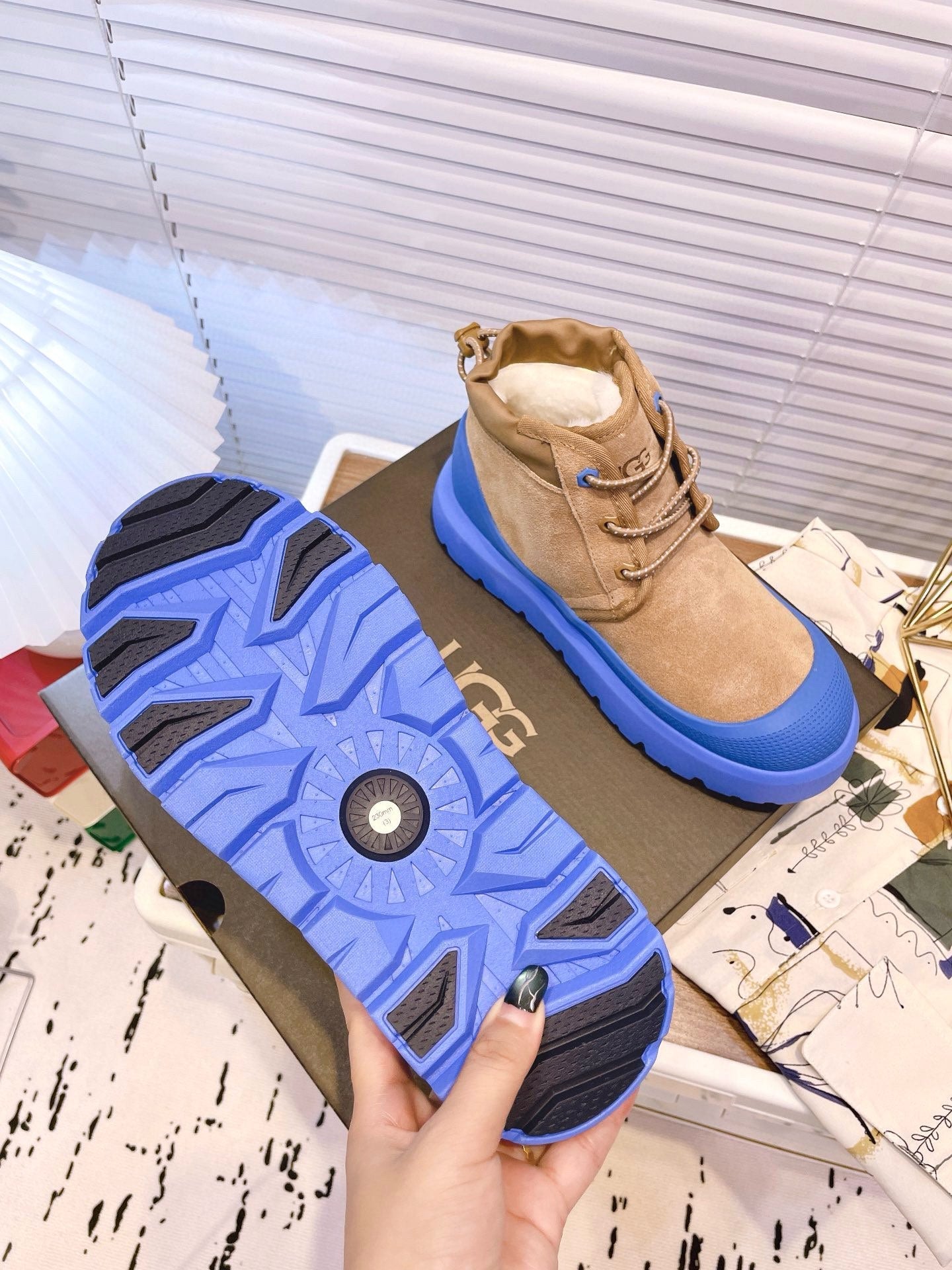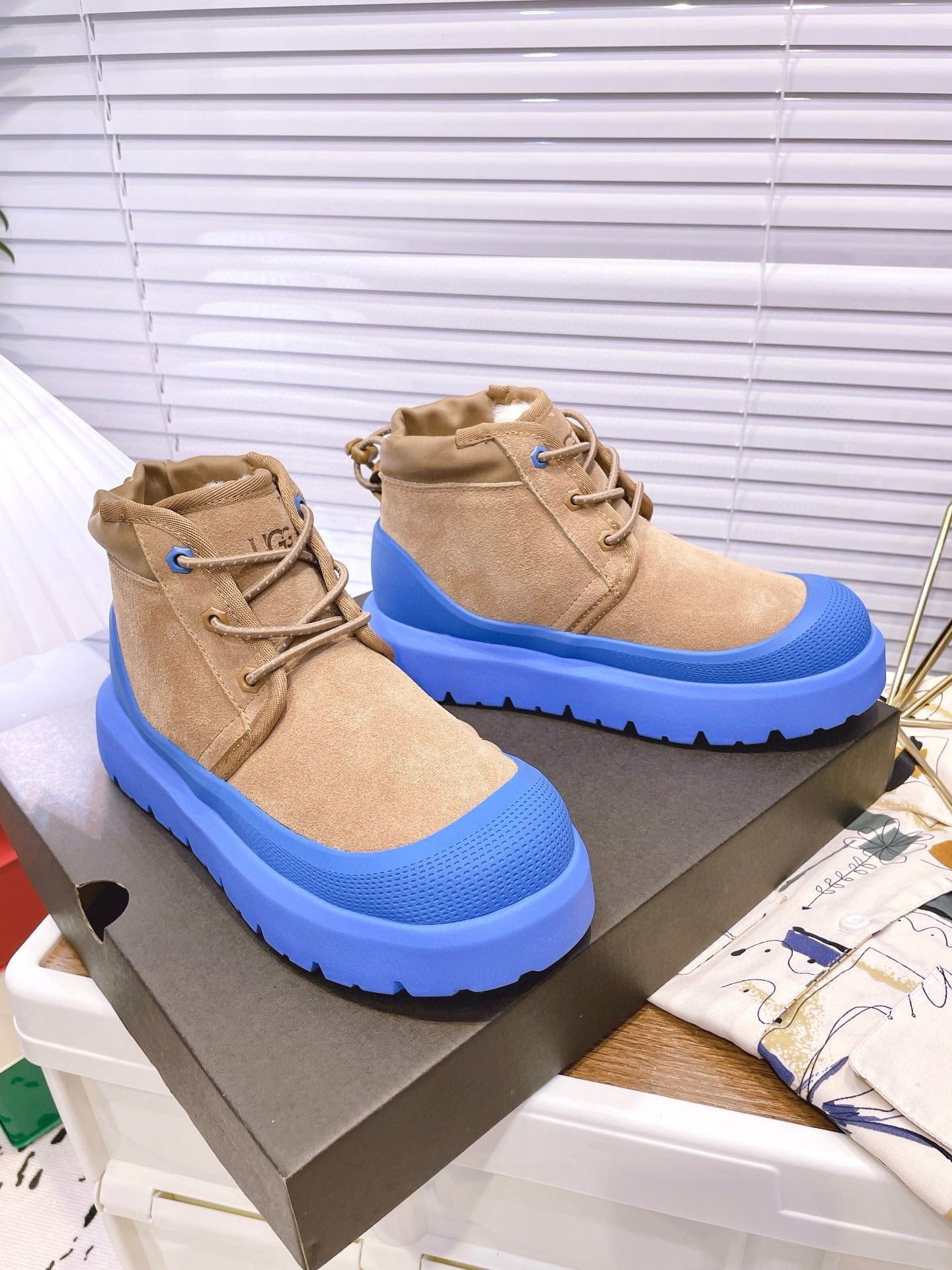 GENDER NEUMEL HIGH WEATHER HYBRID IN PEANUT BROWN SUEDE AND COBALT BLUE CALFSKIN