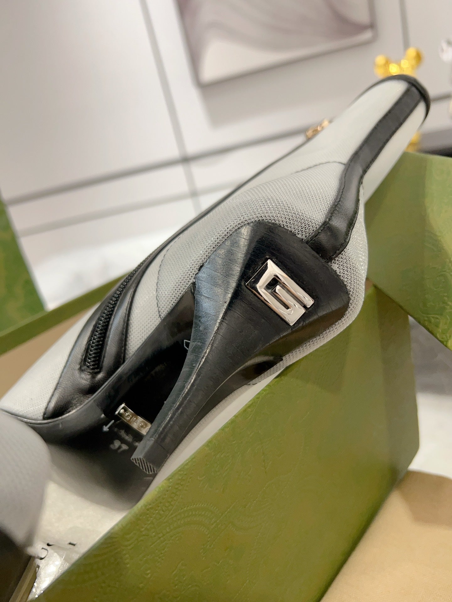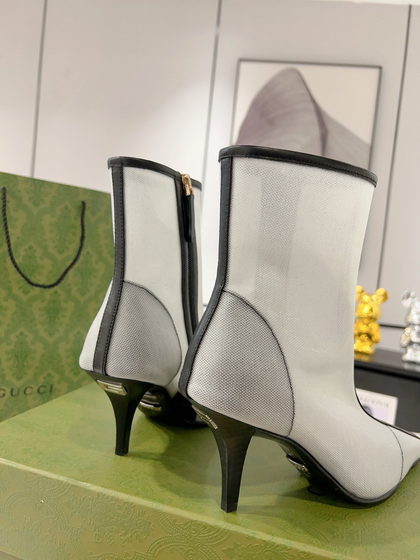 GG ANKLE BOOTS IN WHITE MIX BLACK MESH AND SHEEPSKIN