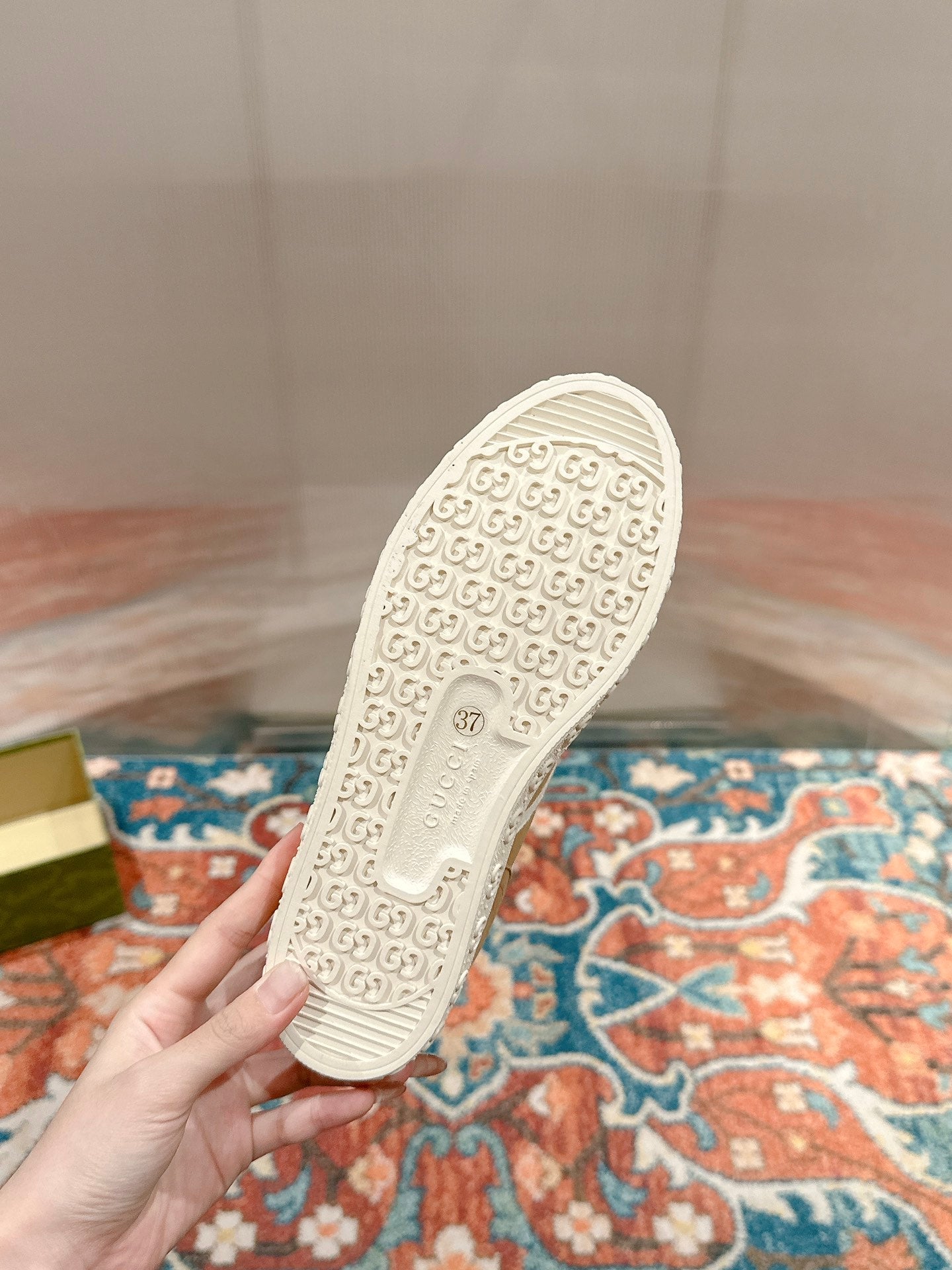 GG CANVAS SNEAKER IN CAMEL BROWN DENIM WITH BEIGE FLEECE LINING