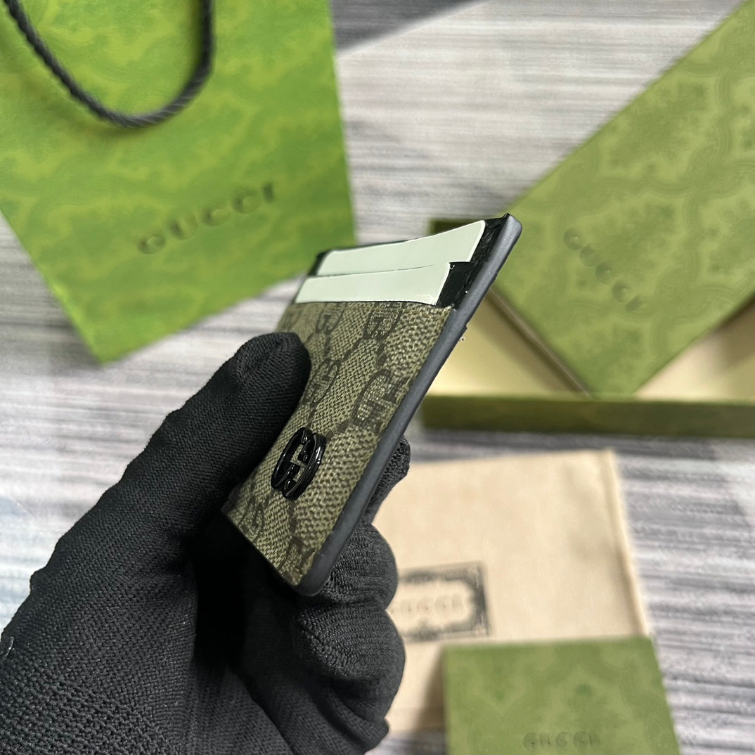 GG CARD CASE 11 WITH GG DETAIL IN BEIGE BROWN CALFSKIN