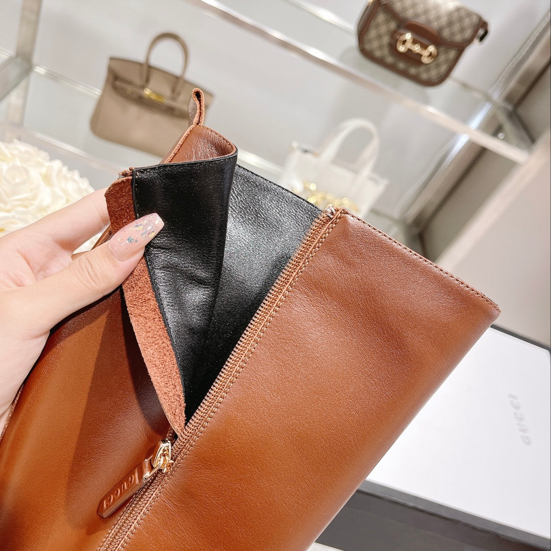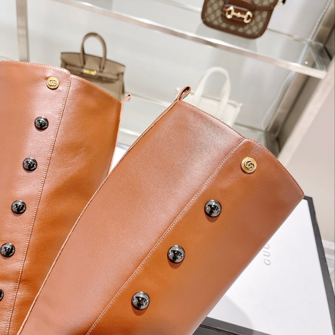 GG CLASSIC KNEE HIGH BOOTS IN BRONZE BROWN IMPORTED CALFSKIN