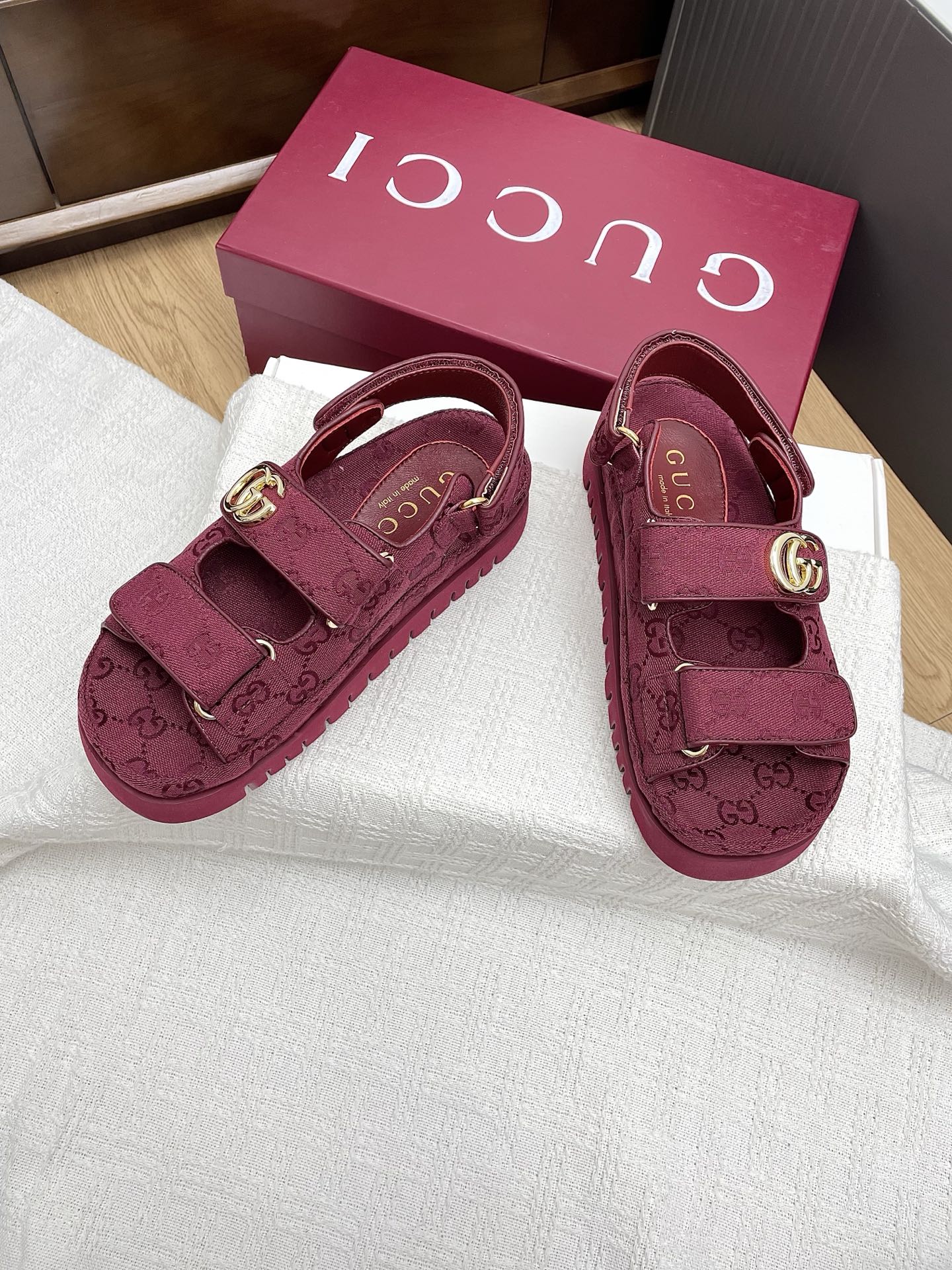 GG CLASSIC SANDALS 25S IN RED FABRIC WITH GOLD HARDWARE