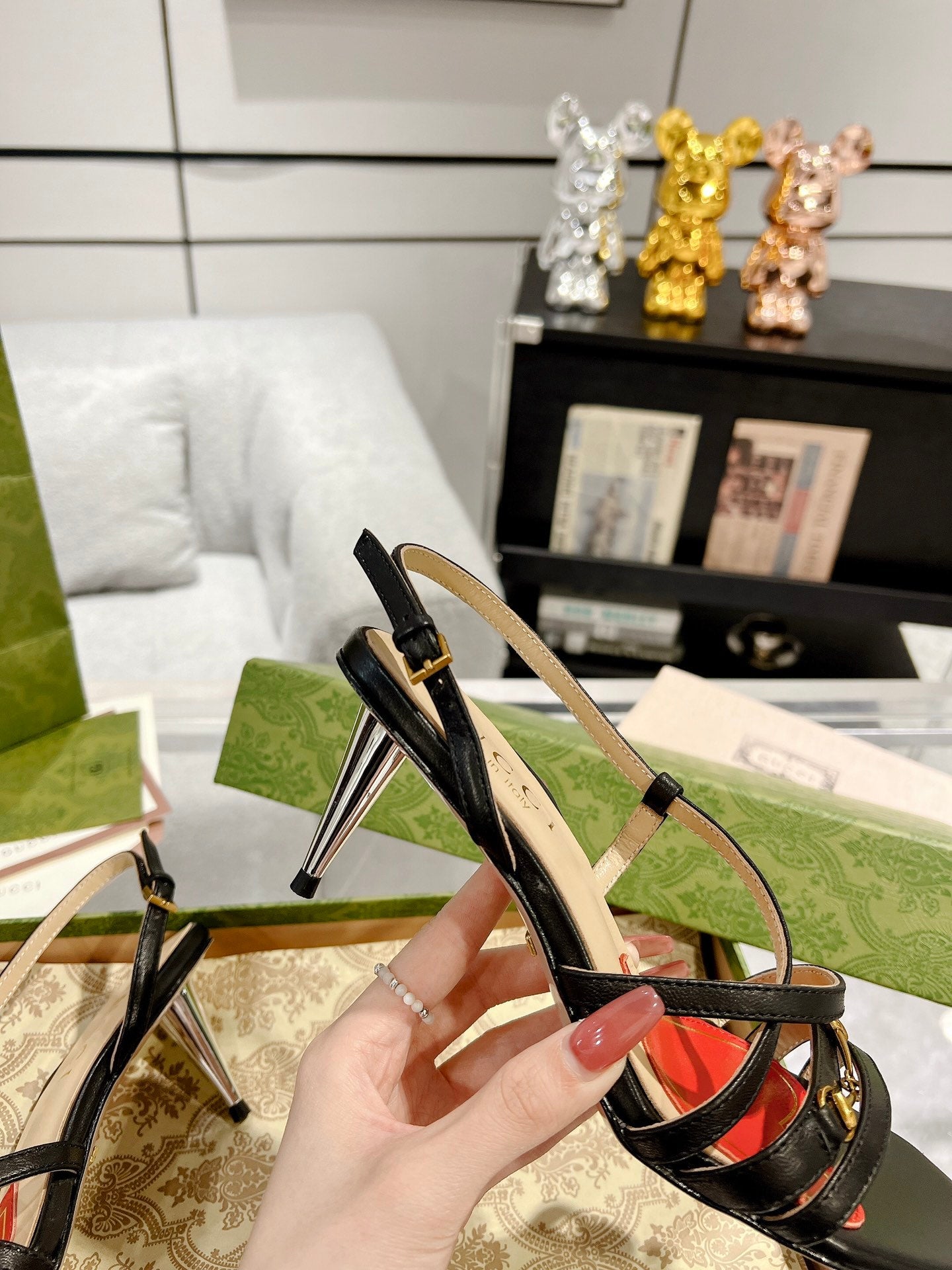 GG CLASSIC STRAPPY HEEL SANDAL BLACK CALFSKIN