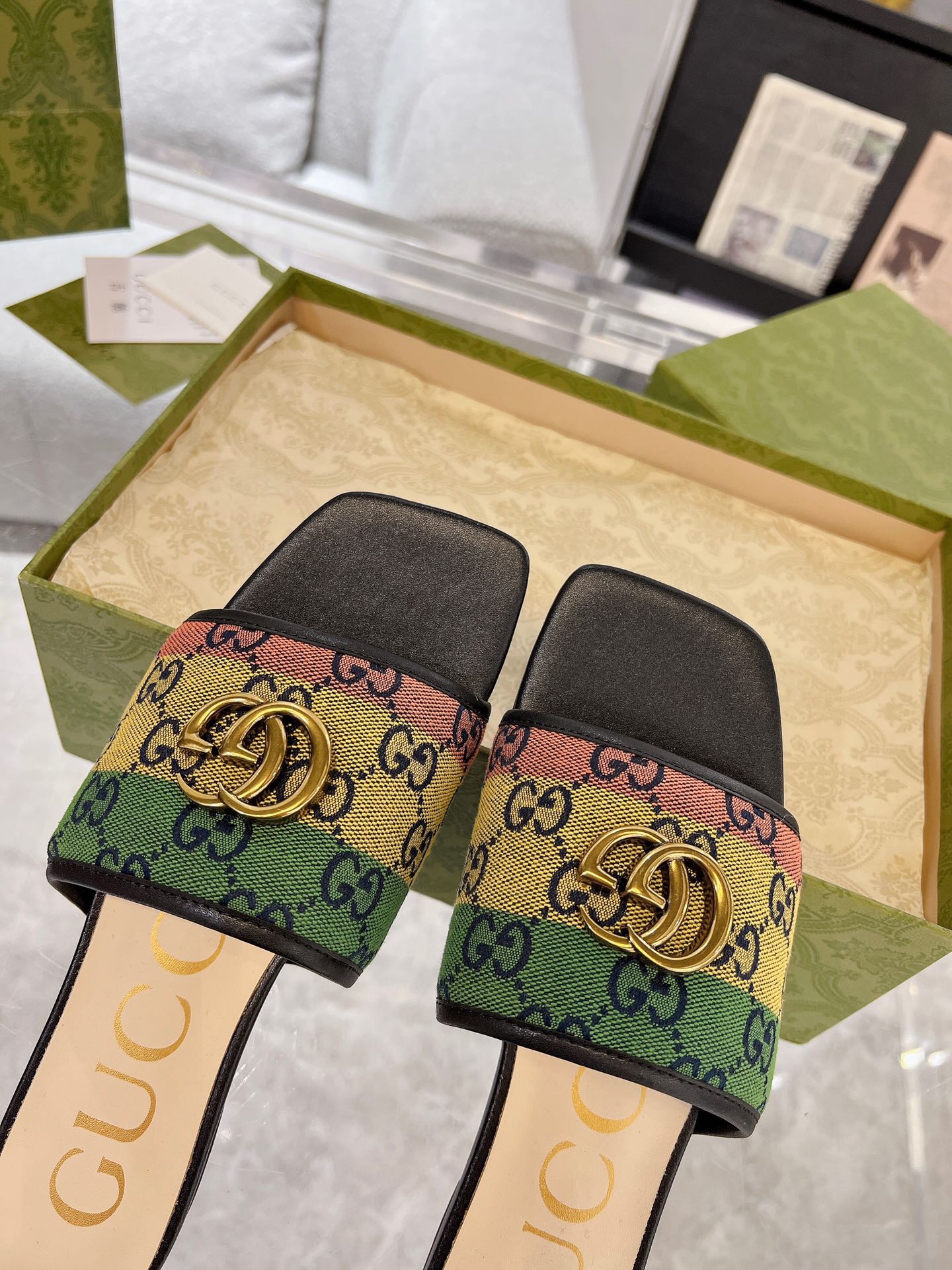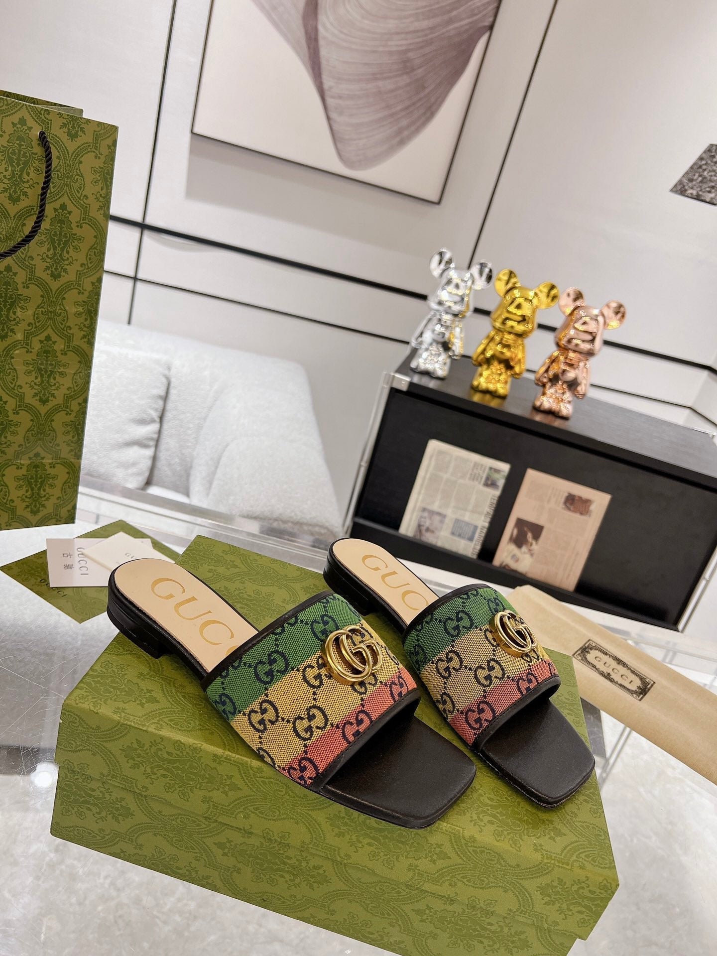 GG EXCLUSIVE SLIDE SANDAL BLACK AND CREAM FABRIC