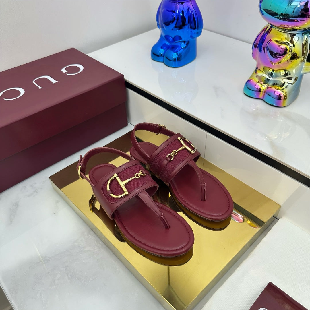GG FLAT THONG SANDALS WITH ANKLE STRAP IN RED LAMBSKIN AND FABRIC