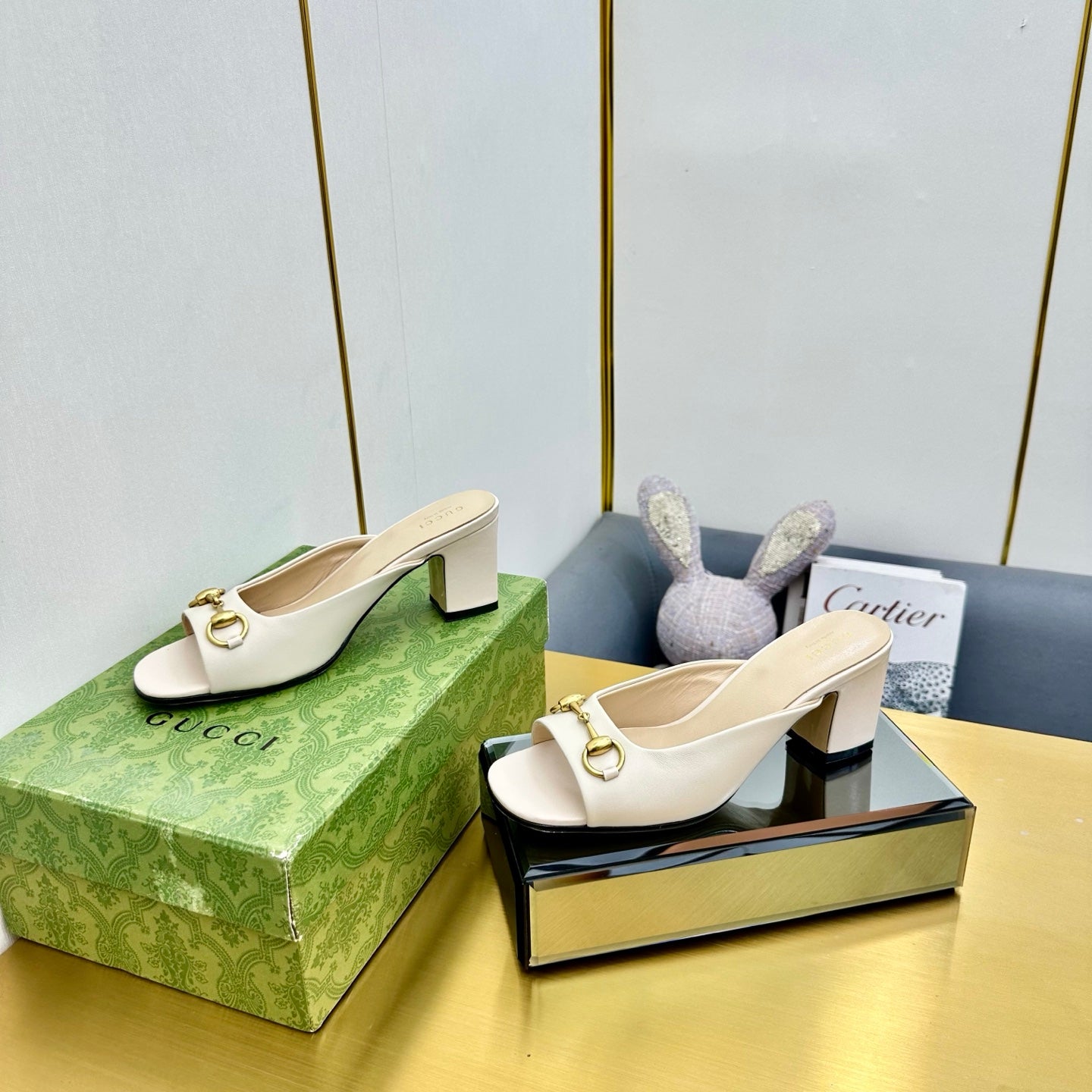 GG HIGH HEELS 55 IN CREAM WHITE CALFSKIN WITH GOLD HARDWARE