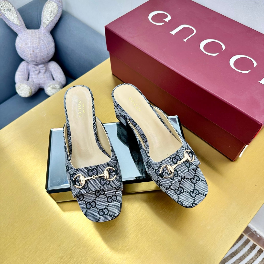 GG HIGH HEELS 65 IN GREY FABRIC WITH GOLD HARDWARE