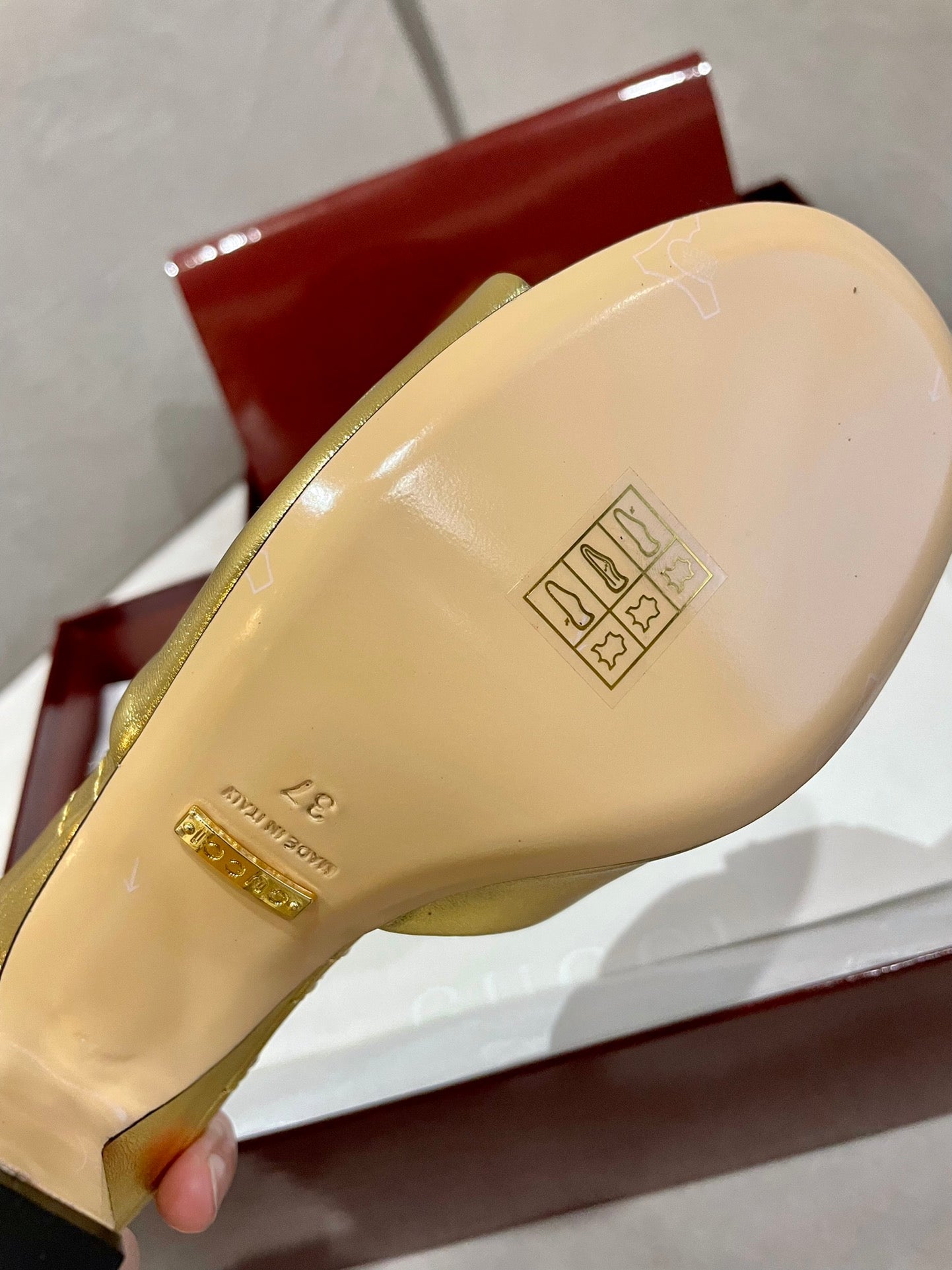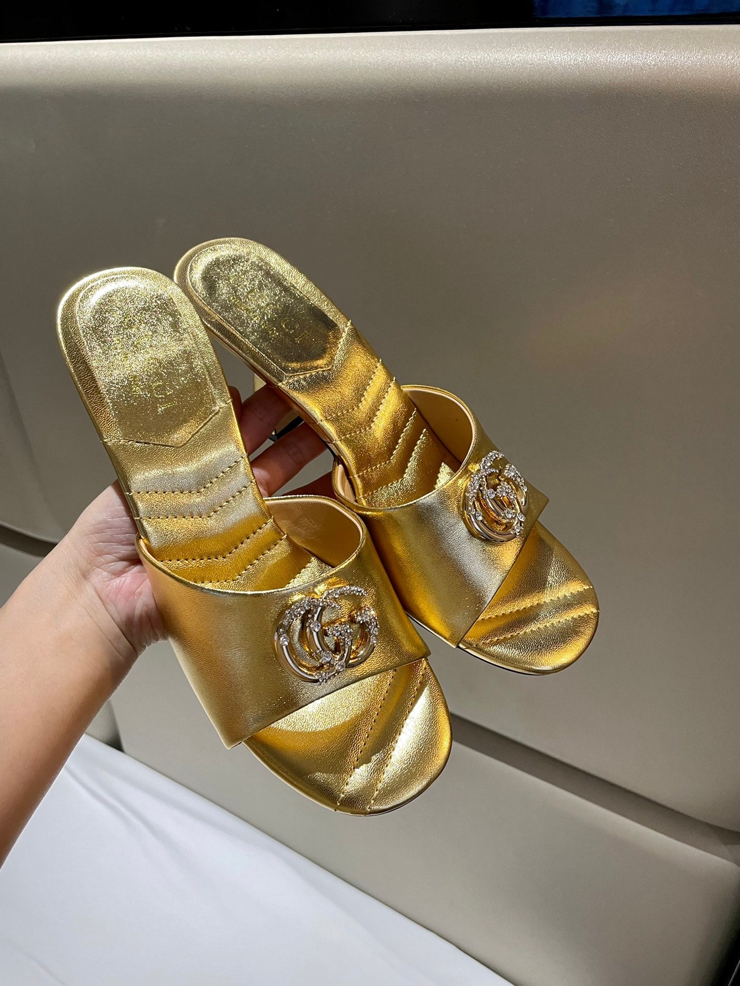 GG HIGH HEELS 70 IN SHINY GOLD LAMBSKIN GOLD HARDWARE WITH CRYSTALS