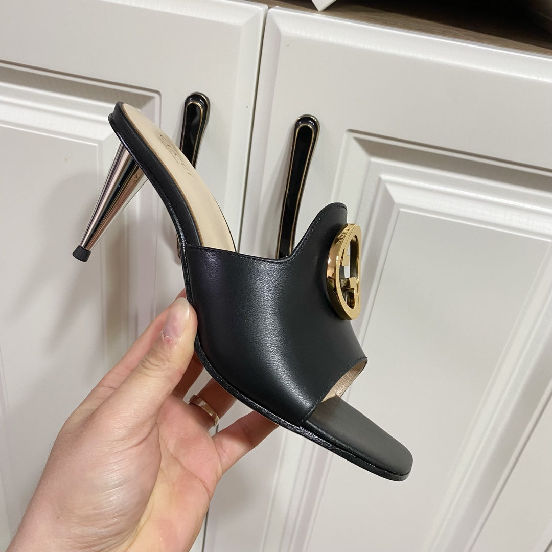 GG HIGH HEELS BLONDIE 75 IN BLACK LAMBSKIN WITH GOLD HARDWARE