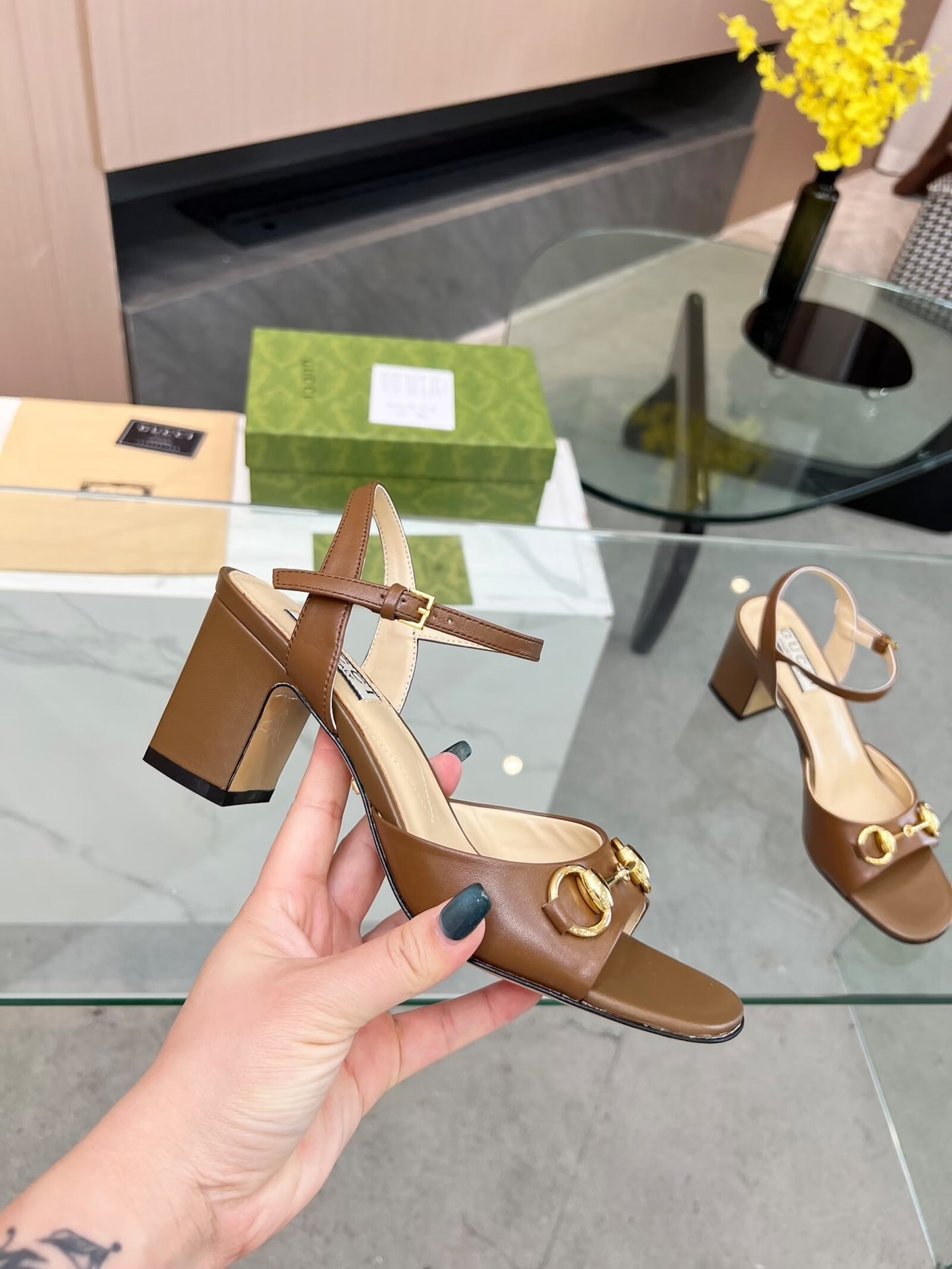 GG HIGH HEELS SANDALS 60 IN BROWN LAMBSKIN