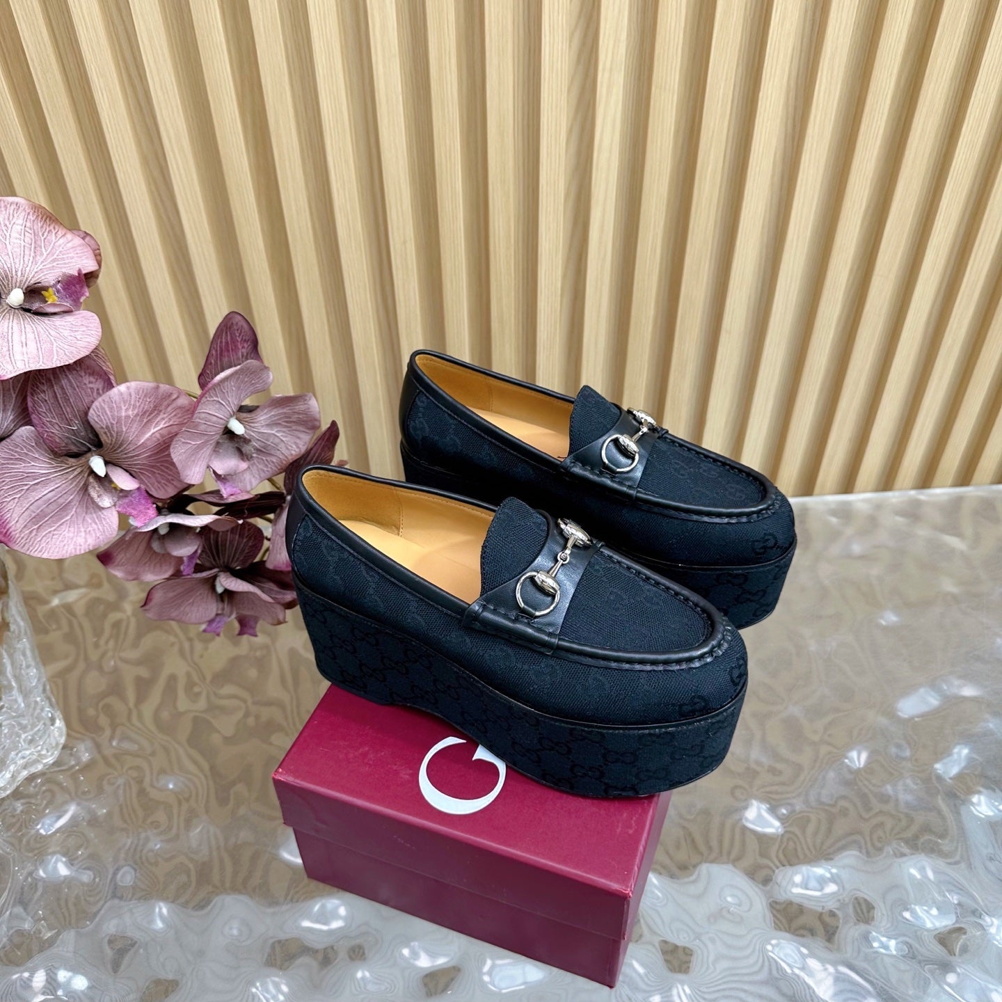 GG HIGH LOAFER IN BLACK FABRIC WITH EMBOSSED LOGO