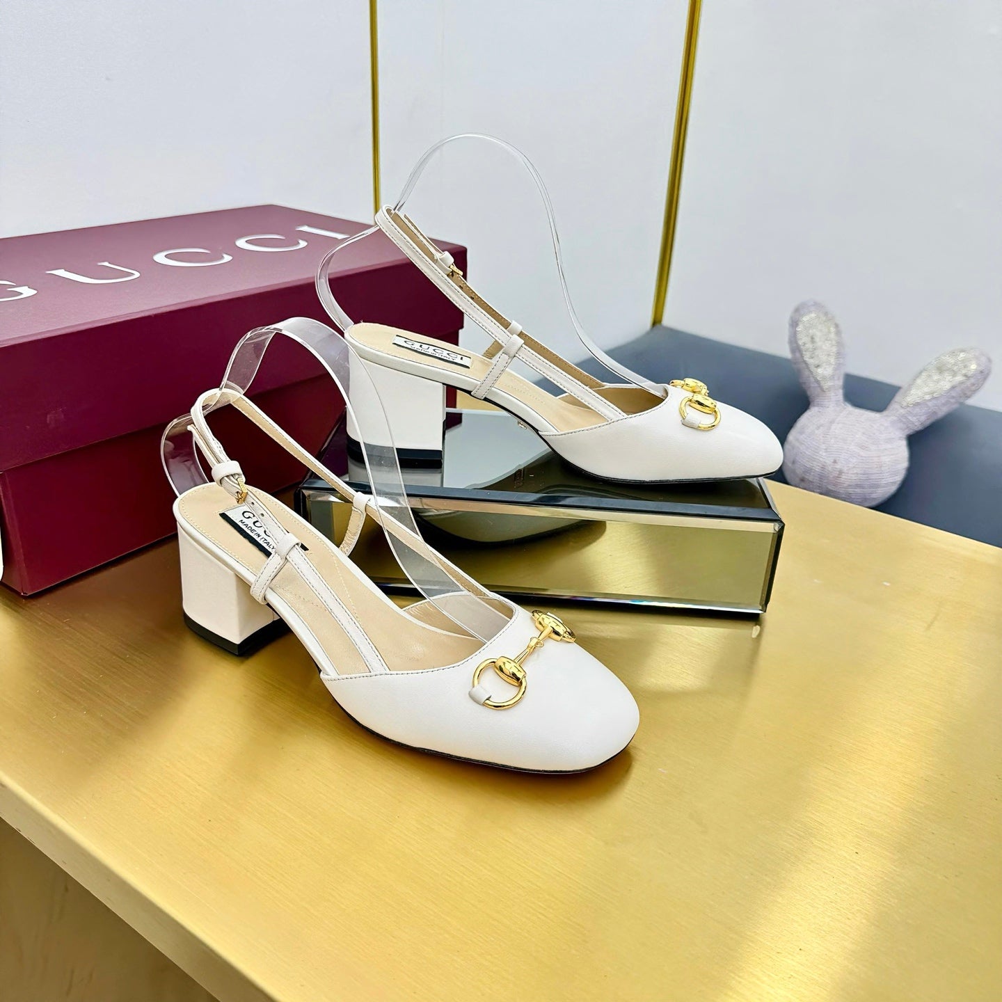 GG HIGH SLINGBACK 65 IN WHITE LAMBSKIN WITH GOLD HARDWARE